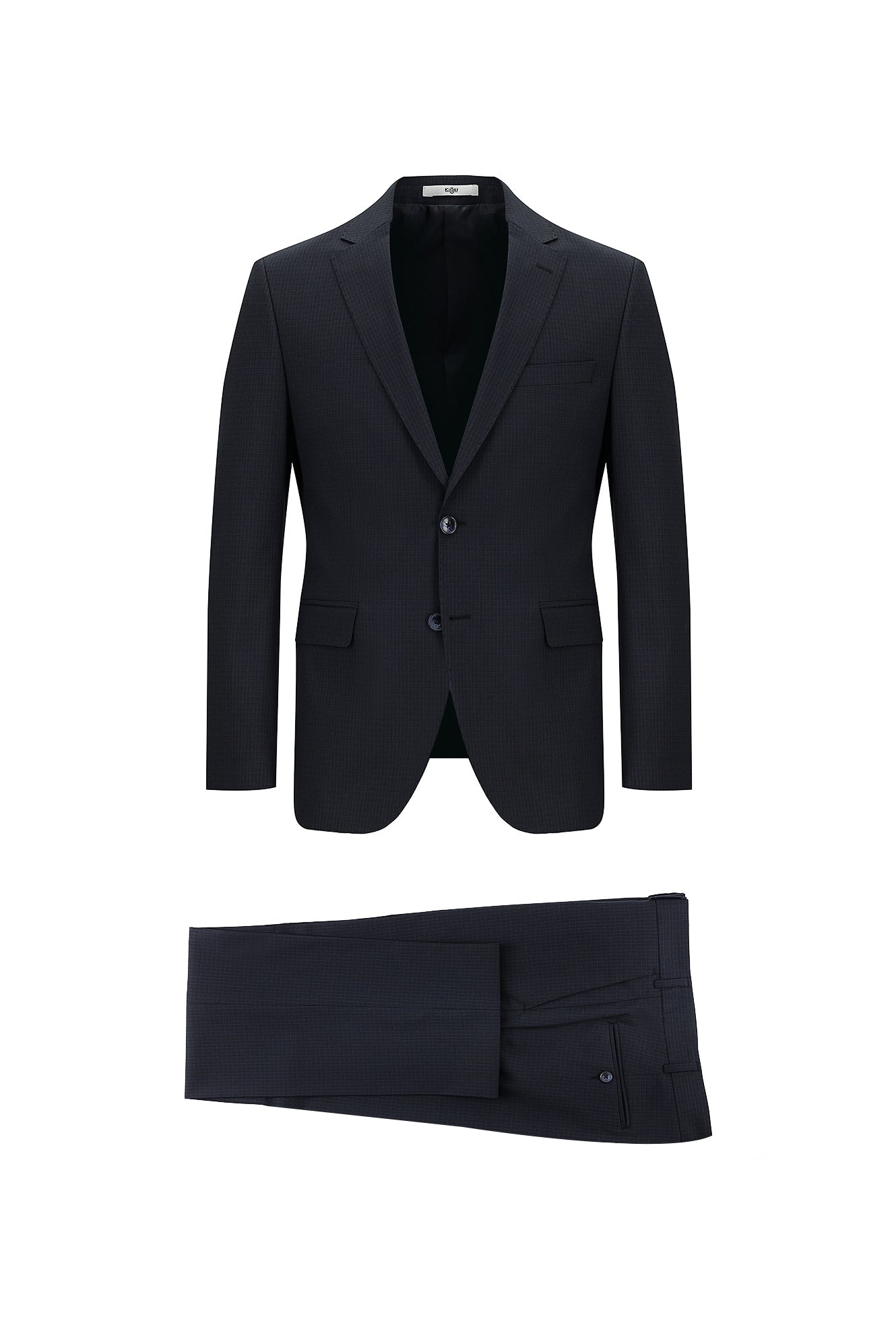 Koyu Lacivert Slim Fit Dar Kesim Klasik Ekose Takım Elbise