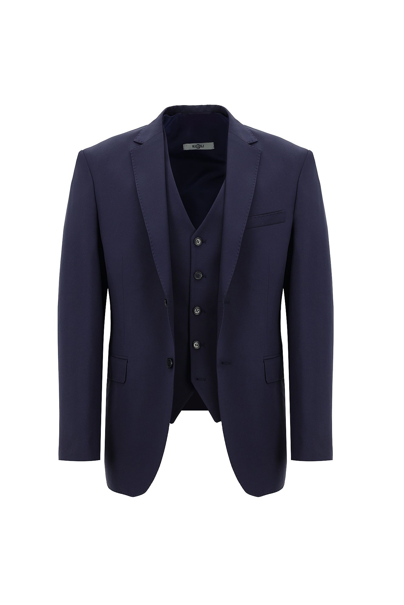 Koyu Lacivert Slim Fit Dar Kesim Klasik Yelekli Takım Elbise