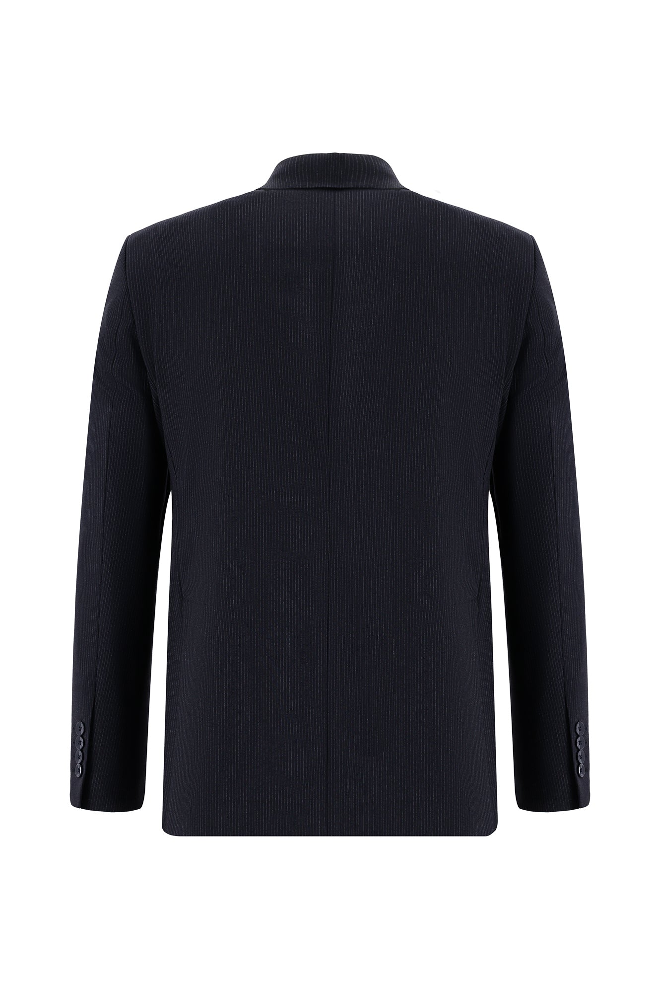 Koyu Lacivert 7 Drop Slim Fit Dar Kesim Kruvaze Çizgili Takım Elbise