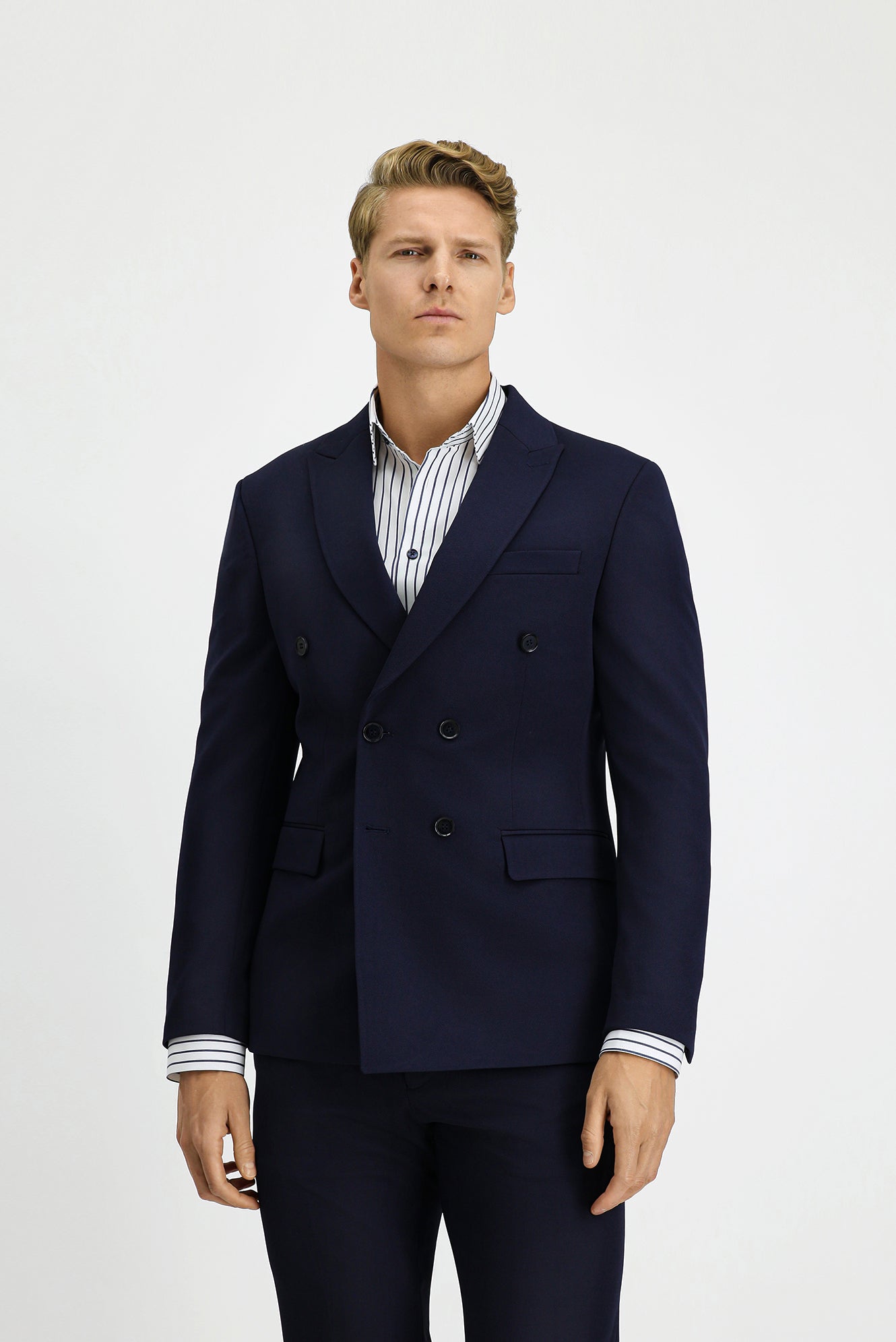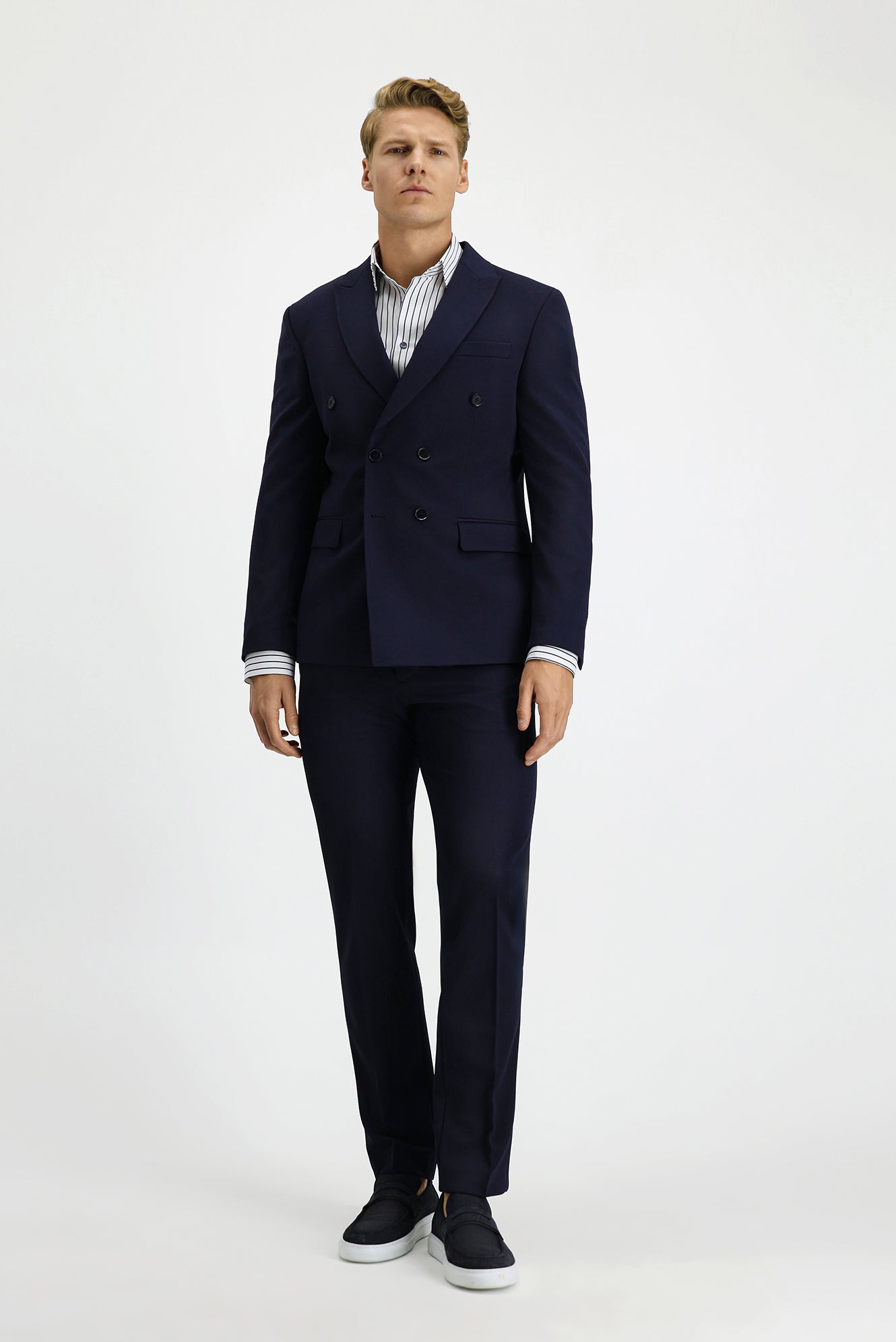 Koyu Lacivert Slim Fit Dar Kesim Kruvaze Takım Elbise