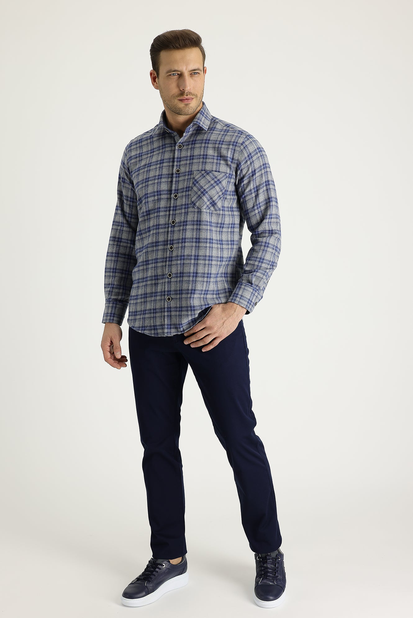 Koyu Lacivert Slim Fit Dar Kesim Likralı Kanvas / Chino Pantolon