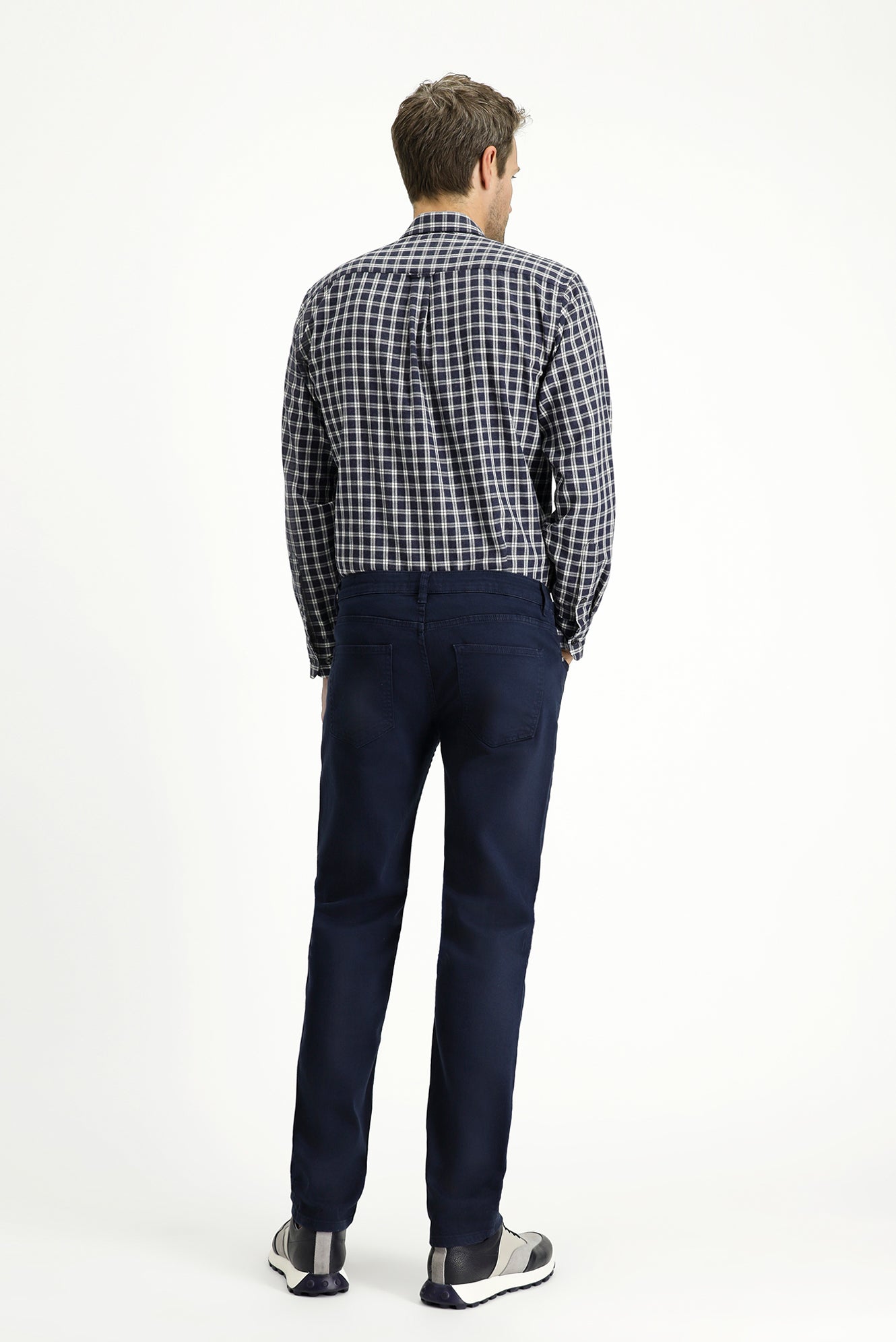 Koyu Lacivert Slim Fit Dar Kesim Likralı Kanvas / Chino Pantolon