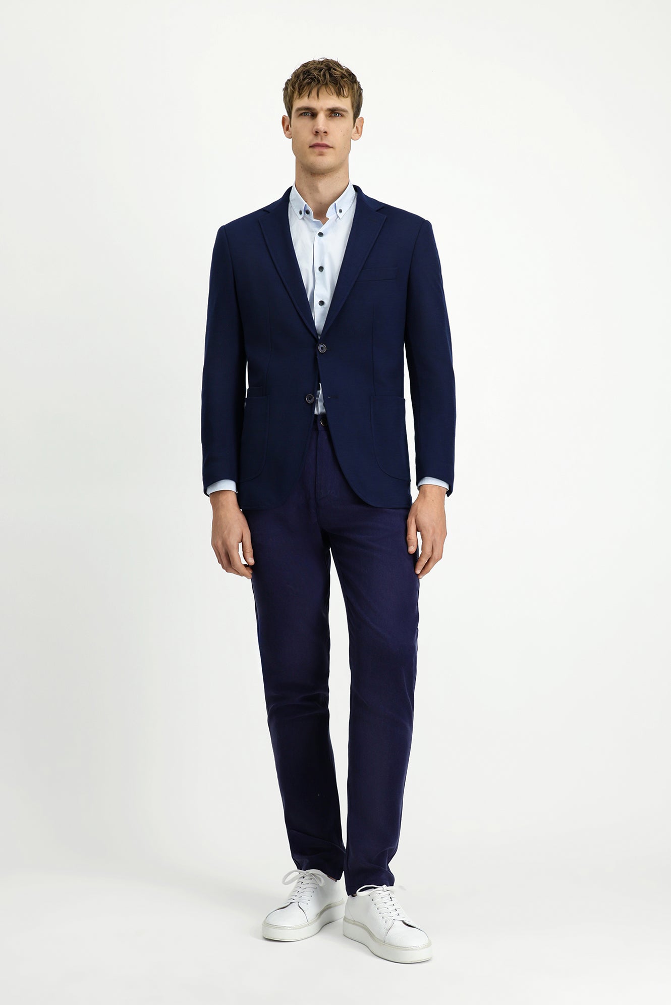 Koyu Lacivert 7 Drop Slim Fit Dar Kesim Likralı Spor Ceket