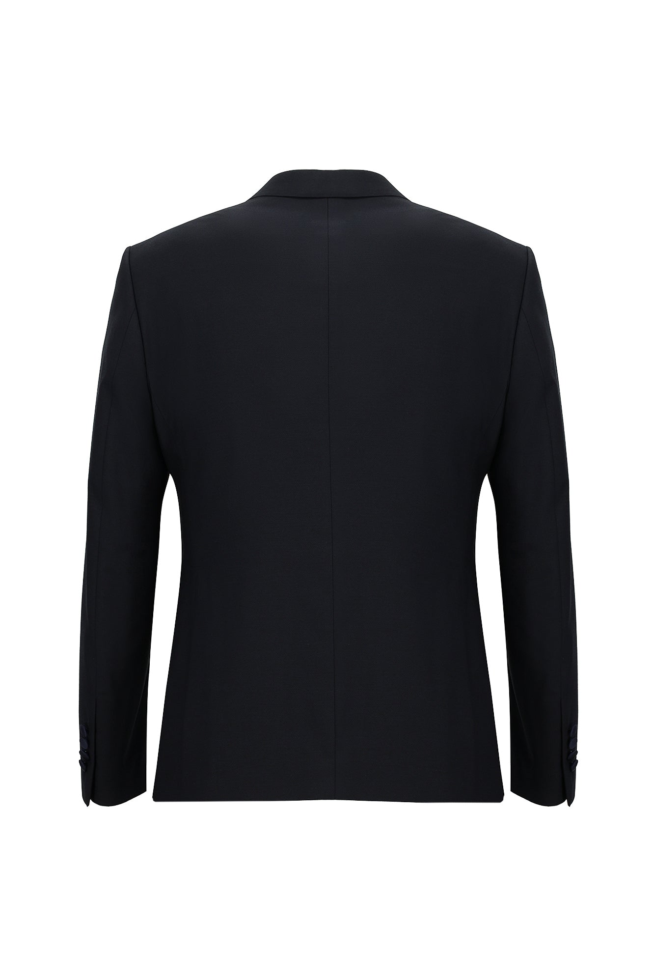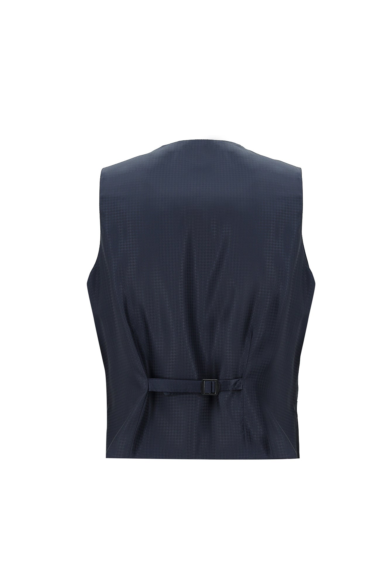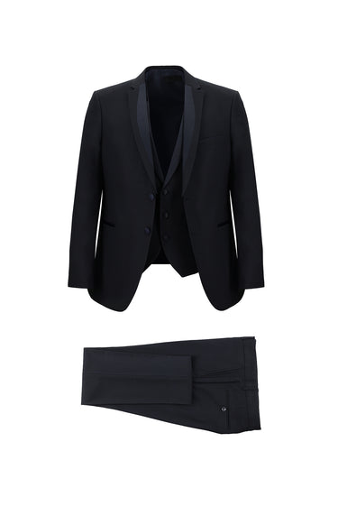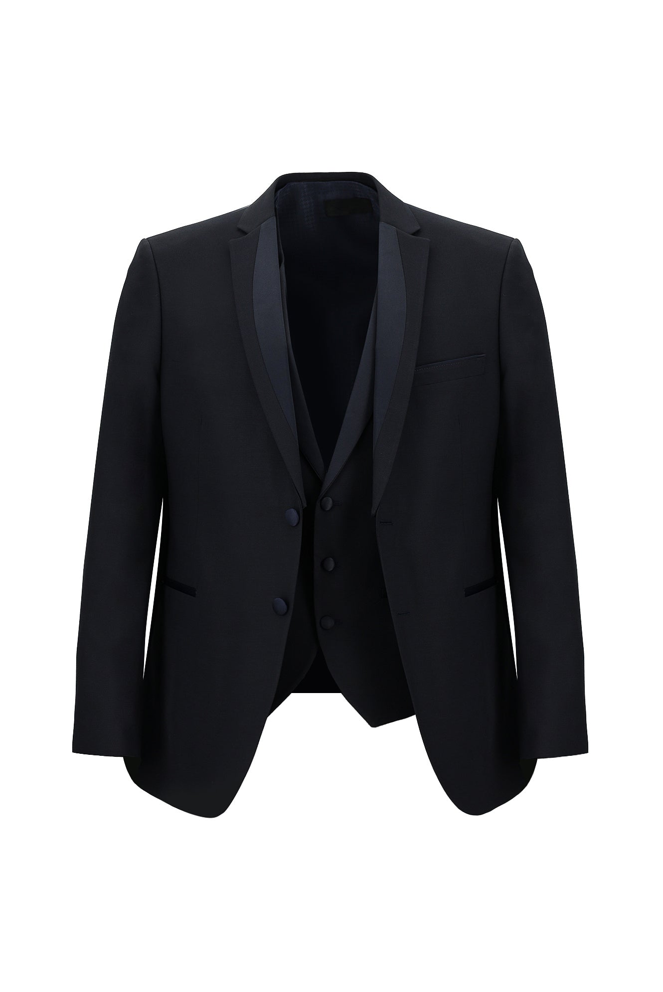 Koyu Lacivert 7 Drop Slim Fit Dar Kesim Mono Yaka Yelekli Smokin & Damatlık