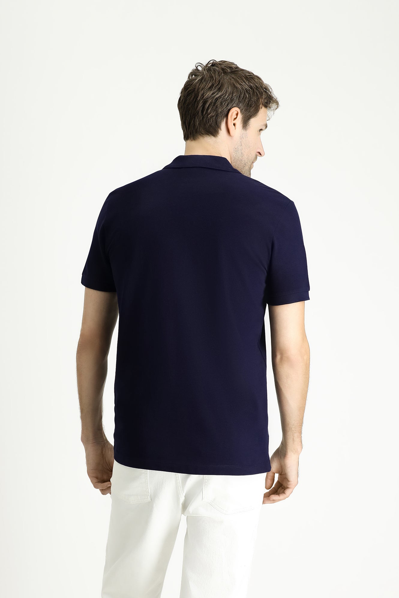 Koyu Lacivert Slim Fit Dar Kesim Nakışlı Pamuk Polo Yaka Tişört