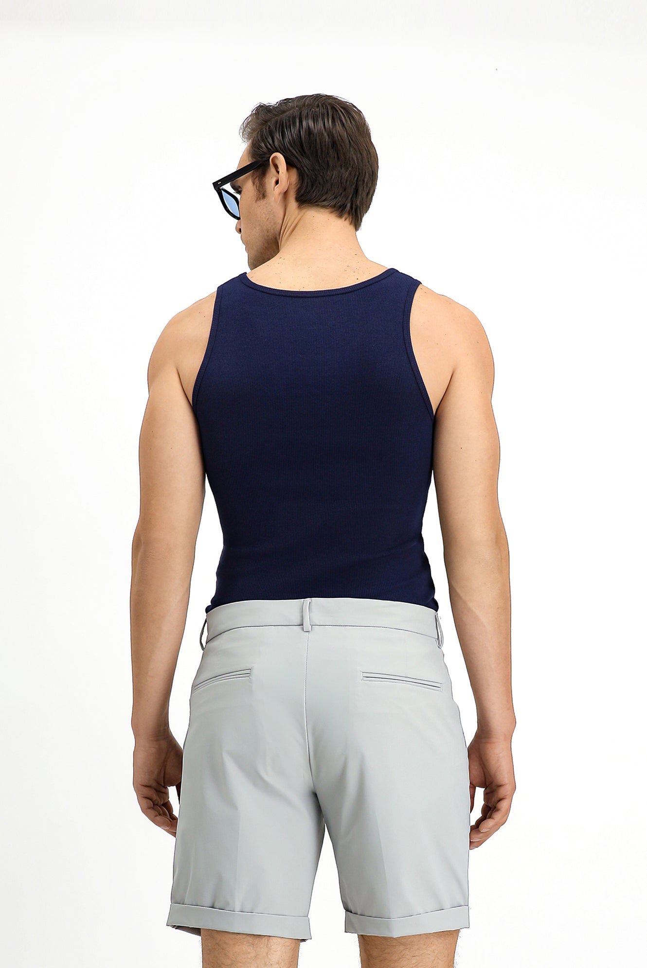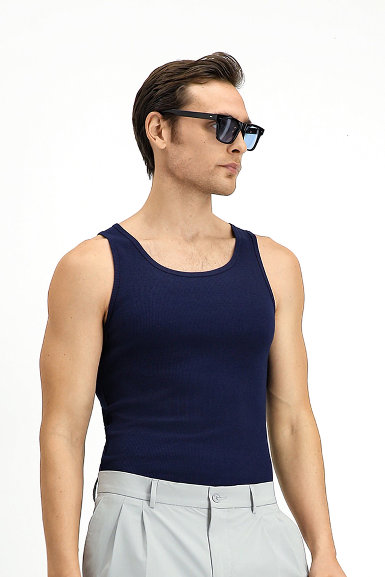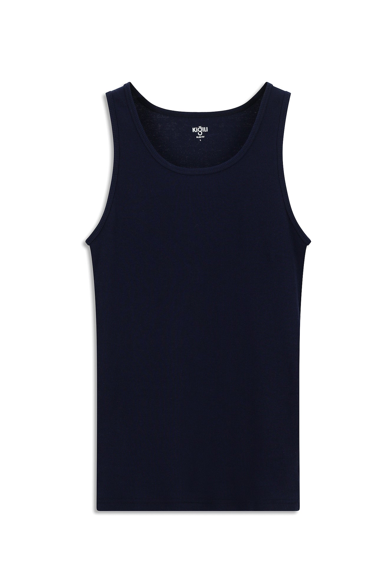 Koyu Lacivert Slim Fit Dar Kesim Pamuk Fitilli Atlet