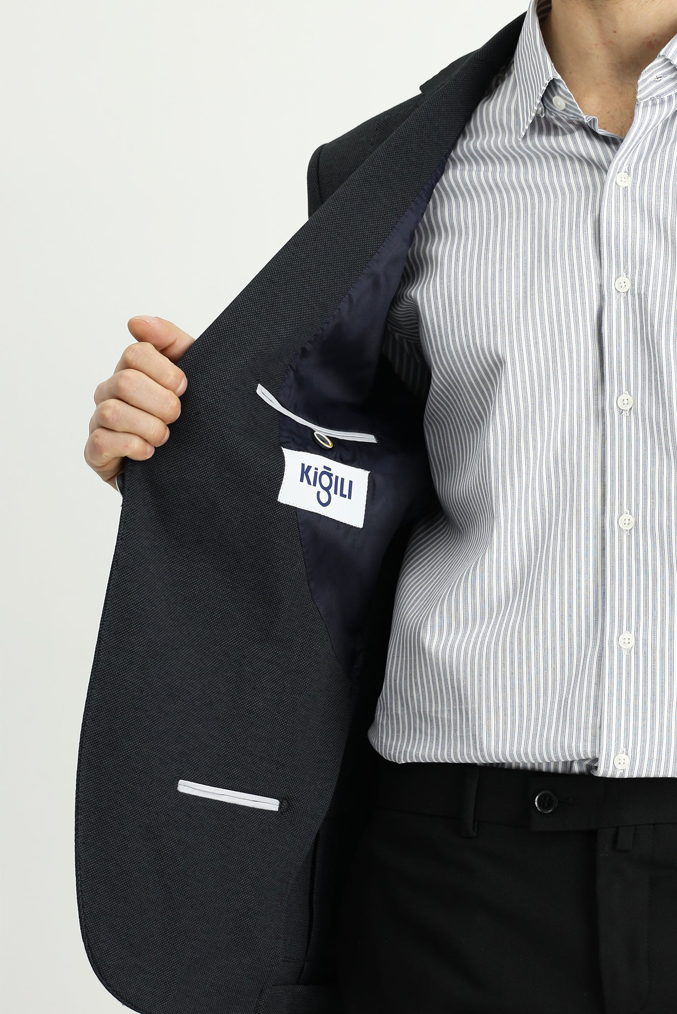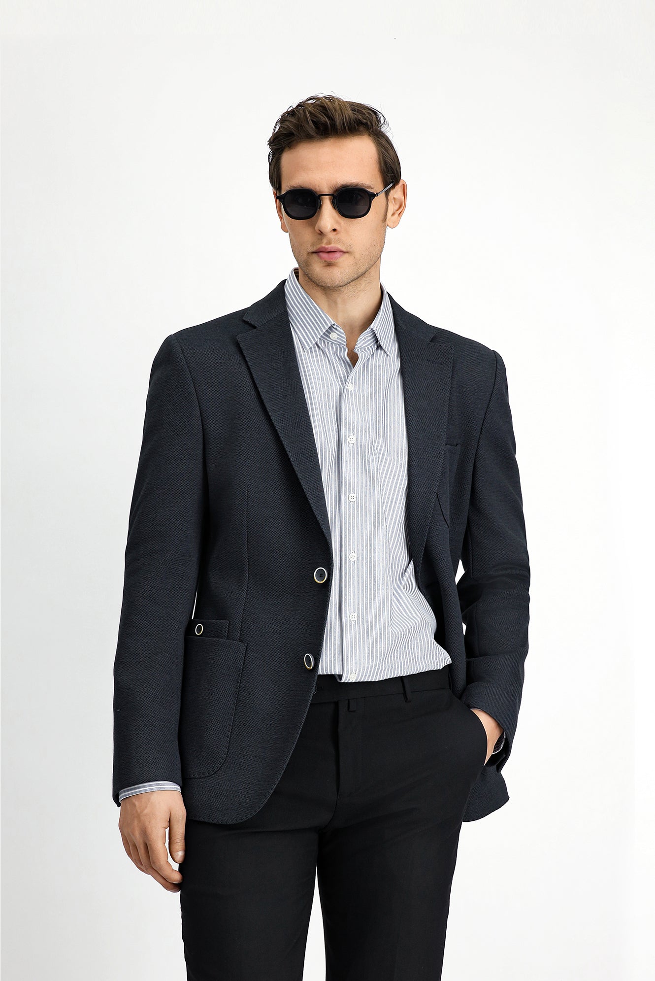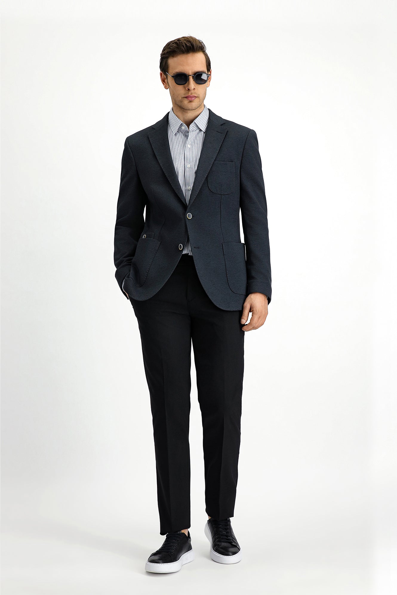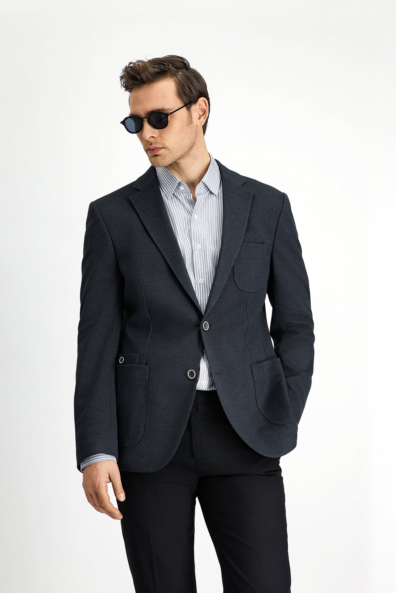 Koyu Lacivert Slim Fit Dar Kesim Pamuklu Spor Ceket