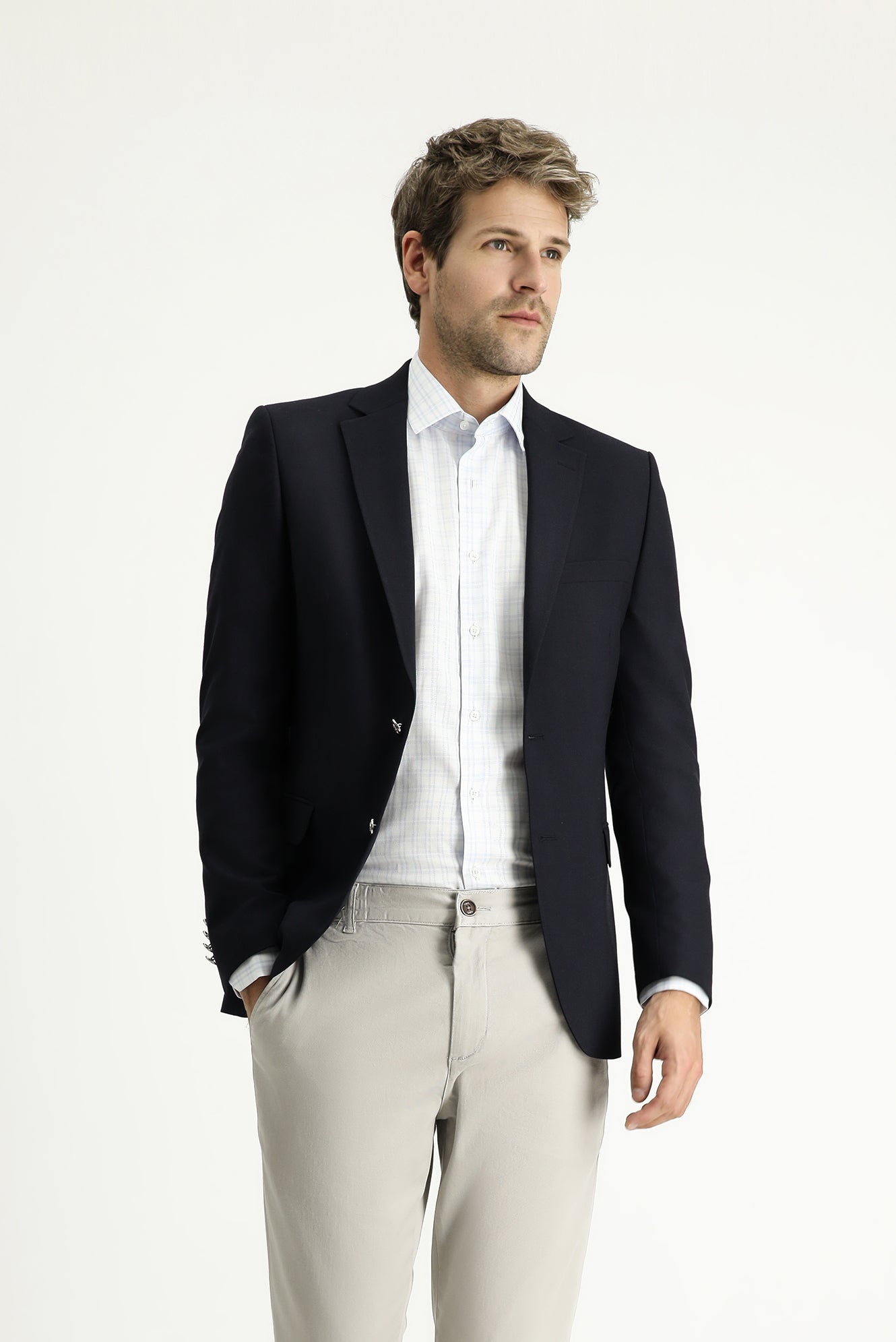 Koyu Lacivert Slim Fit Dar Kesim Yünlü Blazer Ceket