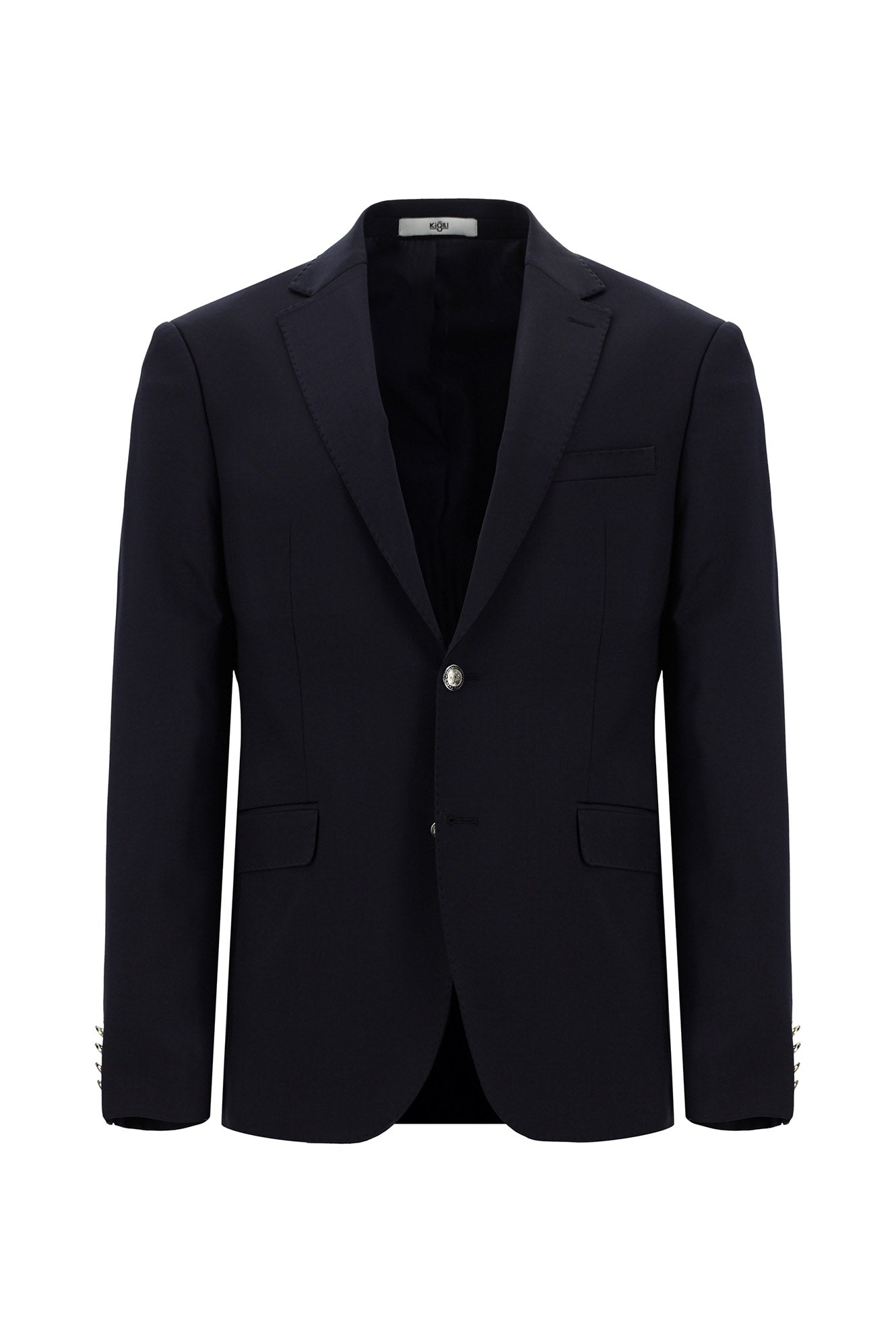Koyu Lacivert Slim Fit Dar Kesim Yünlü Blazer Ceket