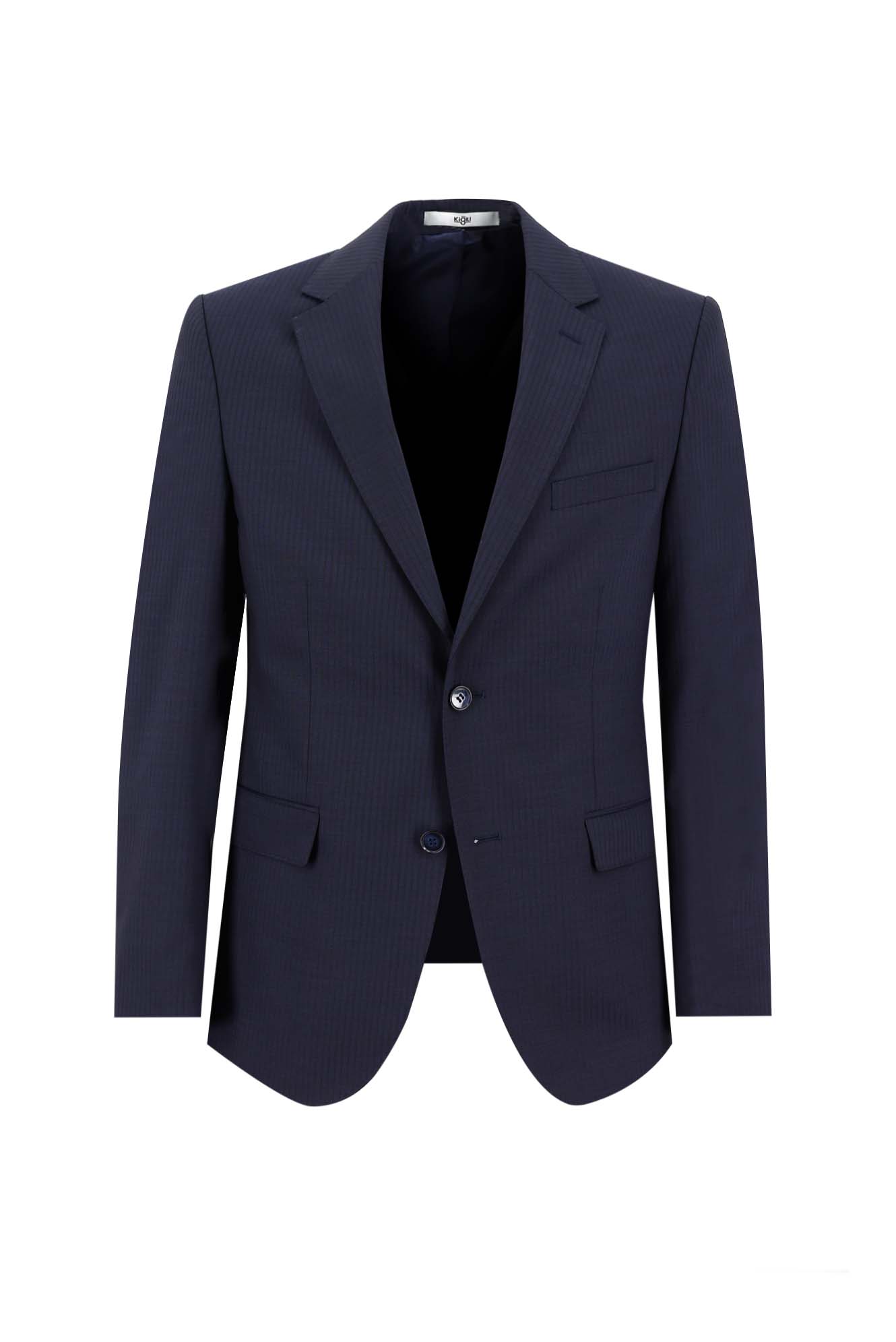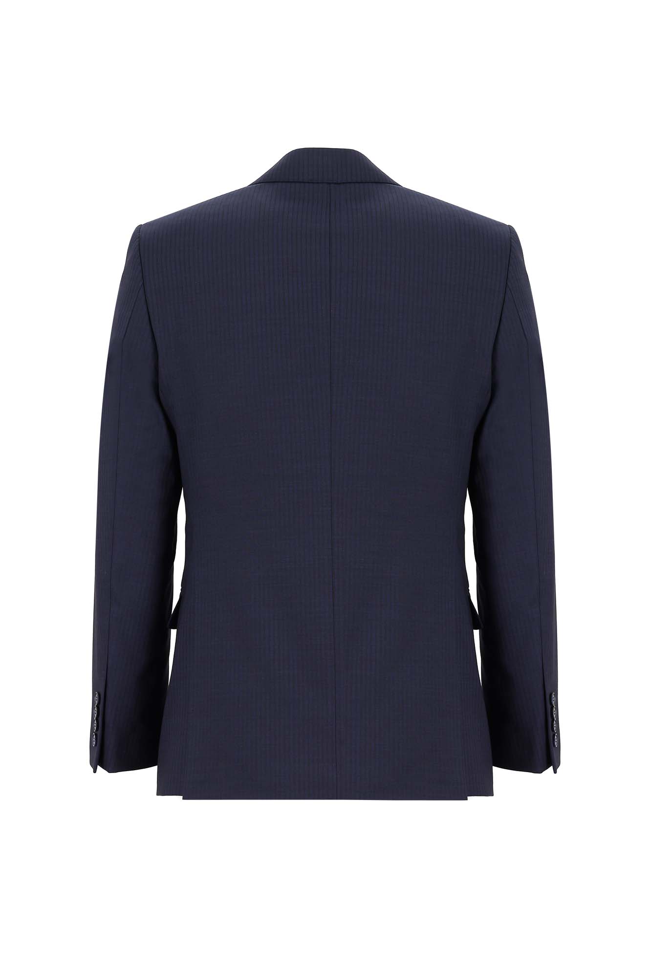 Koyu Lacivert Slim Fit Dar Kesim Yünlü Klasik Çizgili Takım Elbise