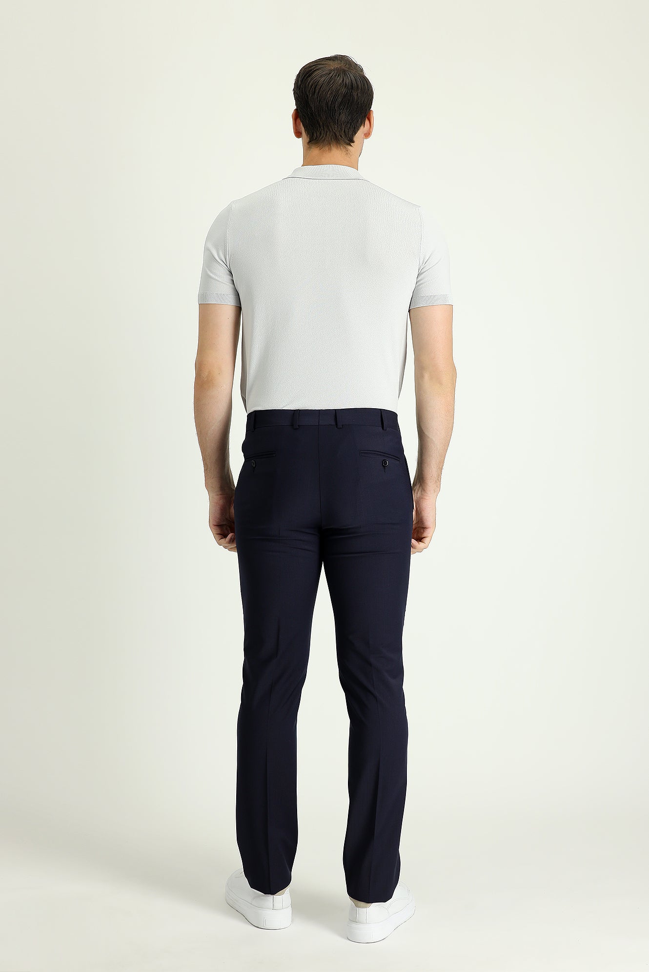 Koyu Lacivert Slim Fit Dar Kesim Yünlü Klasik Kumaş Pantolon