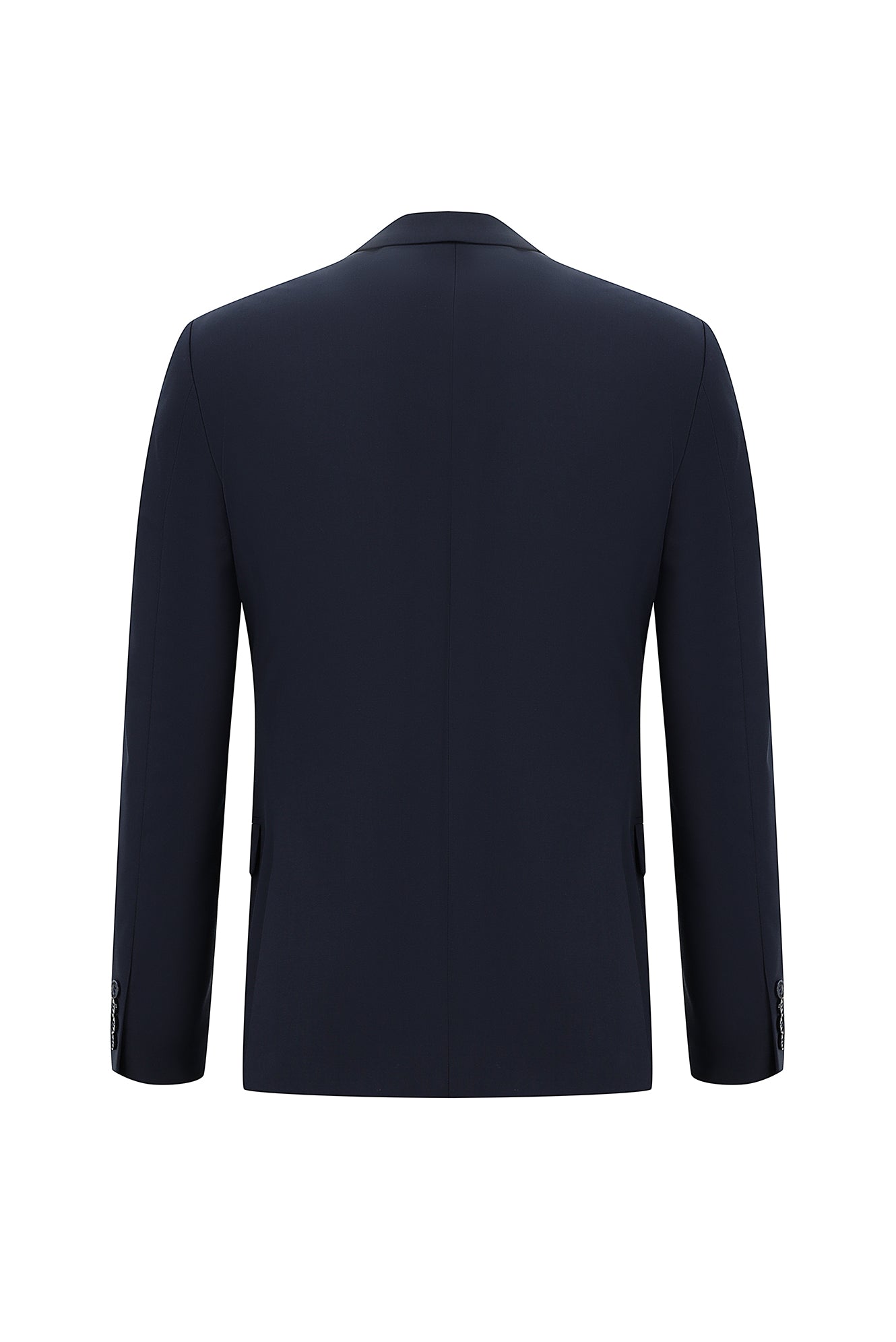 Koyu Lacivert 7 Drop Slim Fit Dar Kesim Yünlü Klasik Takım Elbise