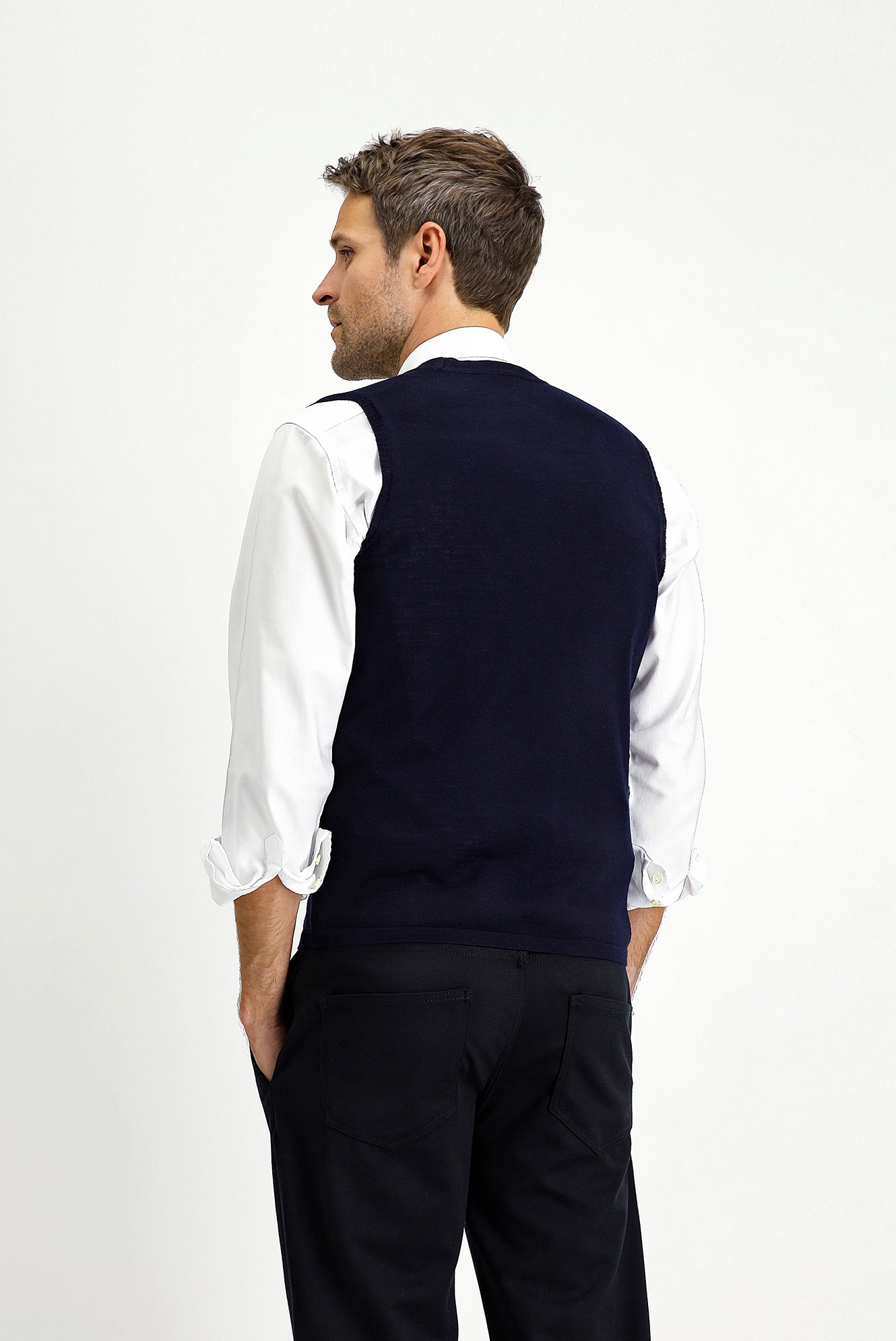 Koyu Lacivert Slim Fit Dar Kesim Yünlü Triko Yelek