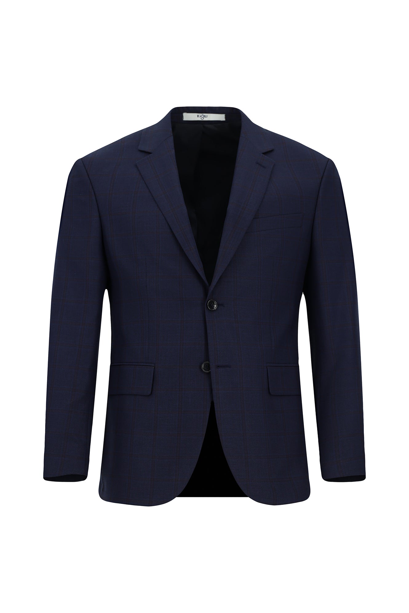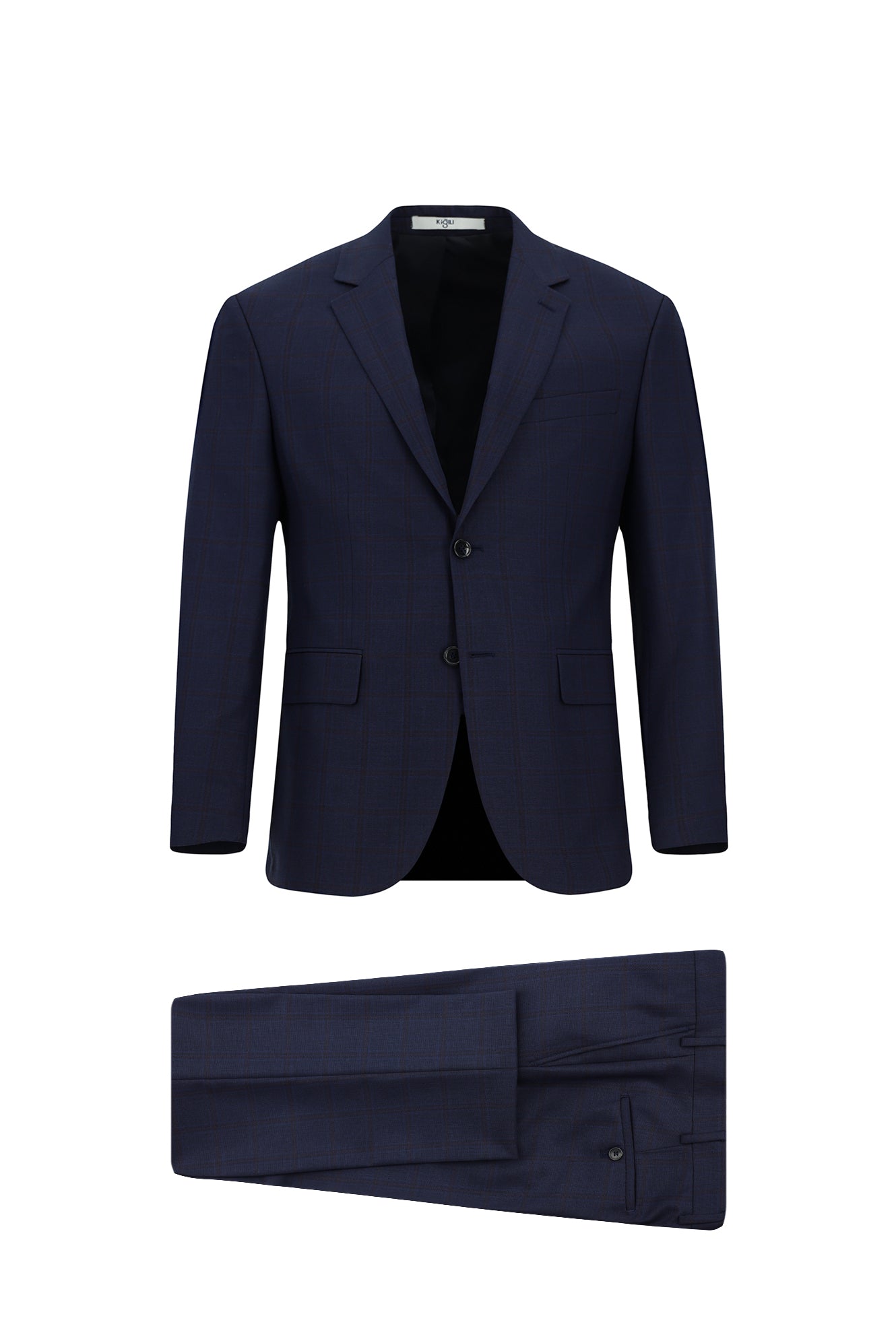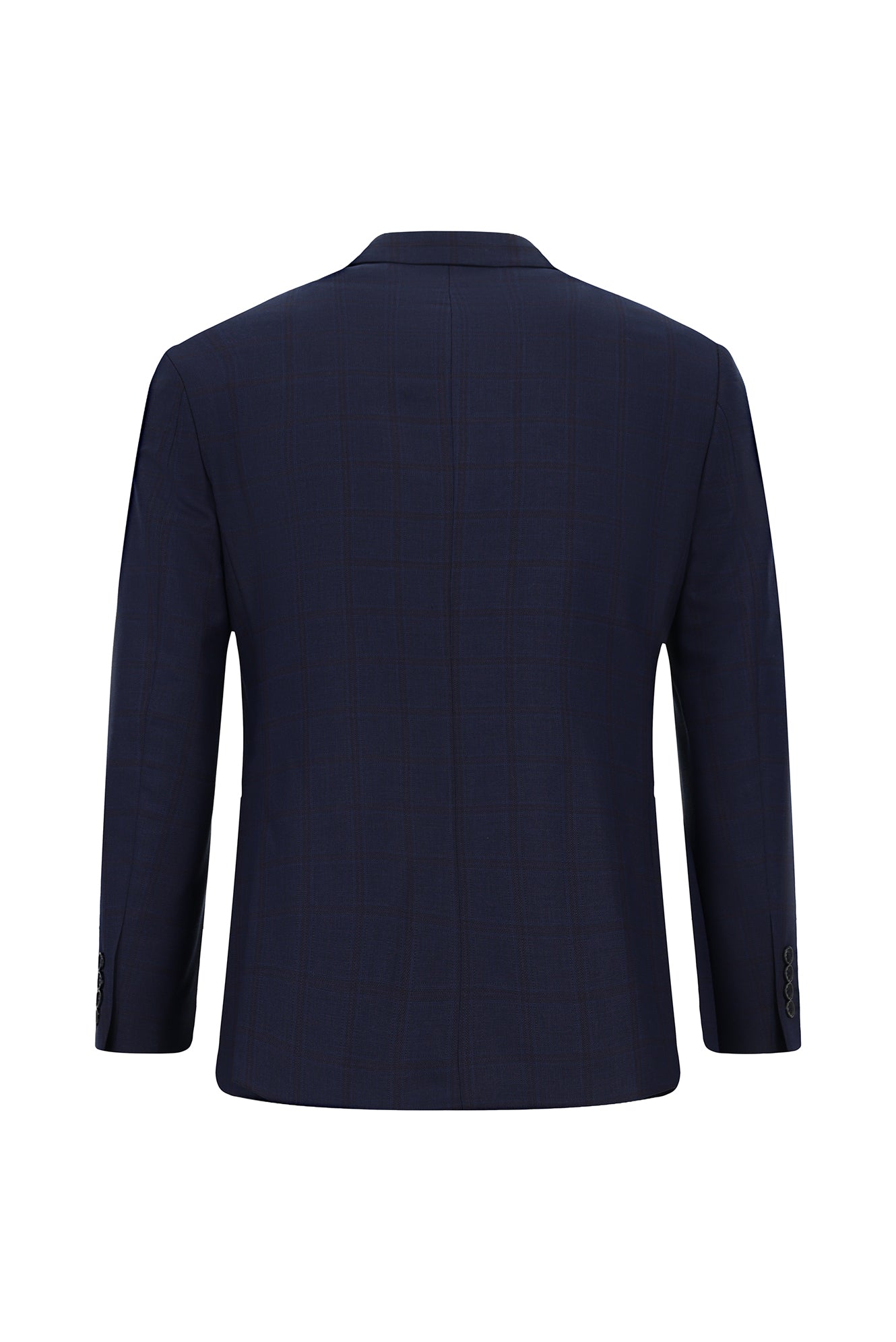 Koyu Lacivert Slim Fit Dar Kesim Kareli Takım Elbise