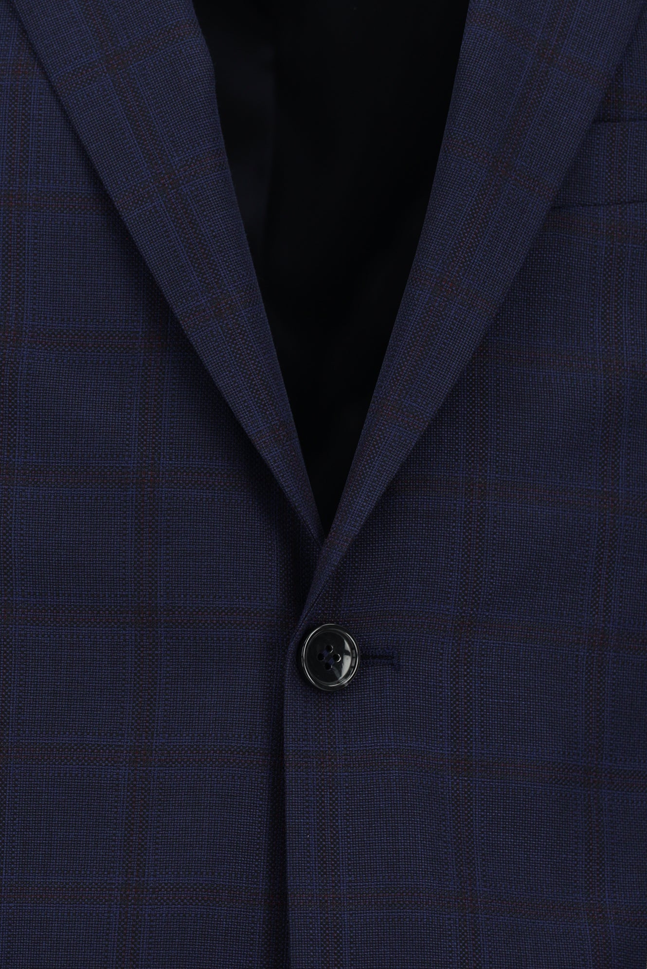 Koyu Lacivert 7 Drop Slim Fit Dar Kesim Kareli Takım Elbise