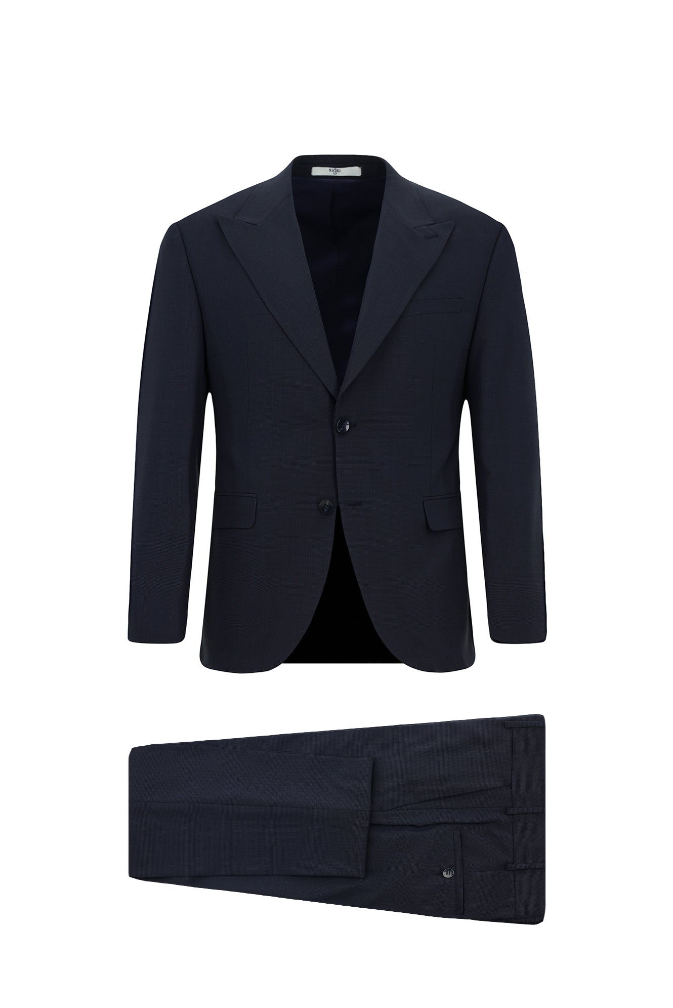 Koyu Lacivert Slim Fit Dar Kesim Yünlü Klasik Desenli Takım Elbise