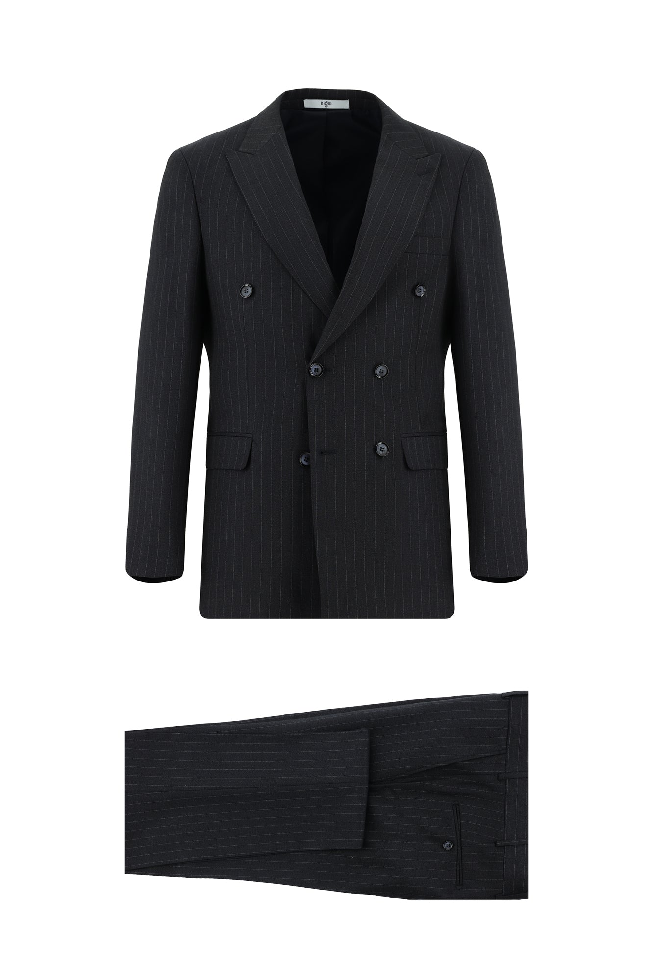 Koyu Lacivert Super Slim Fit Ekstra Dar Kesim Çizgili Kruvaze Takım Elbise