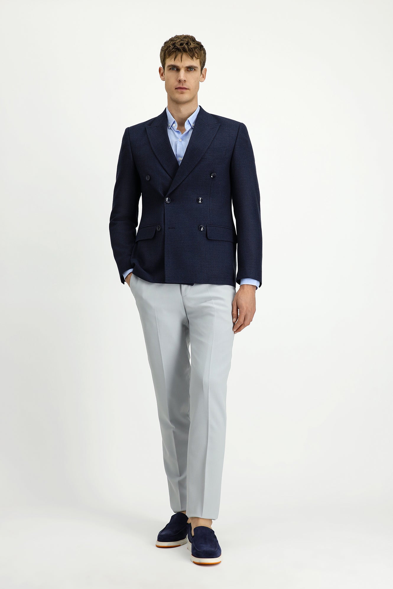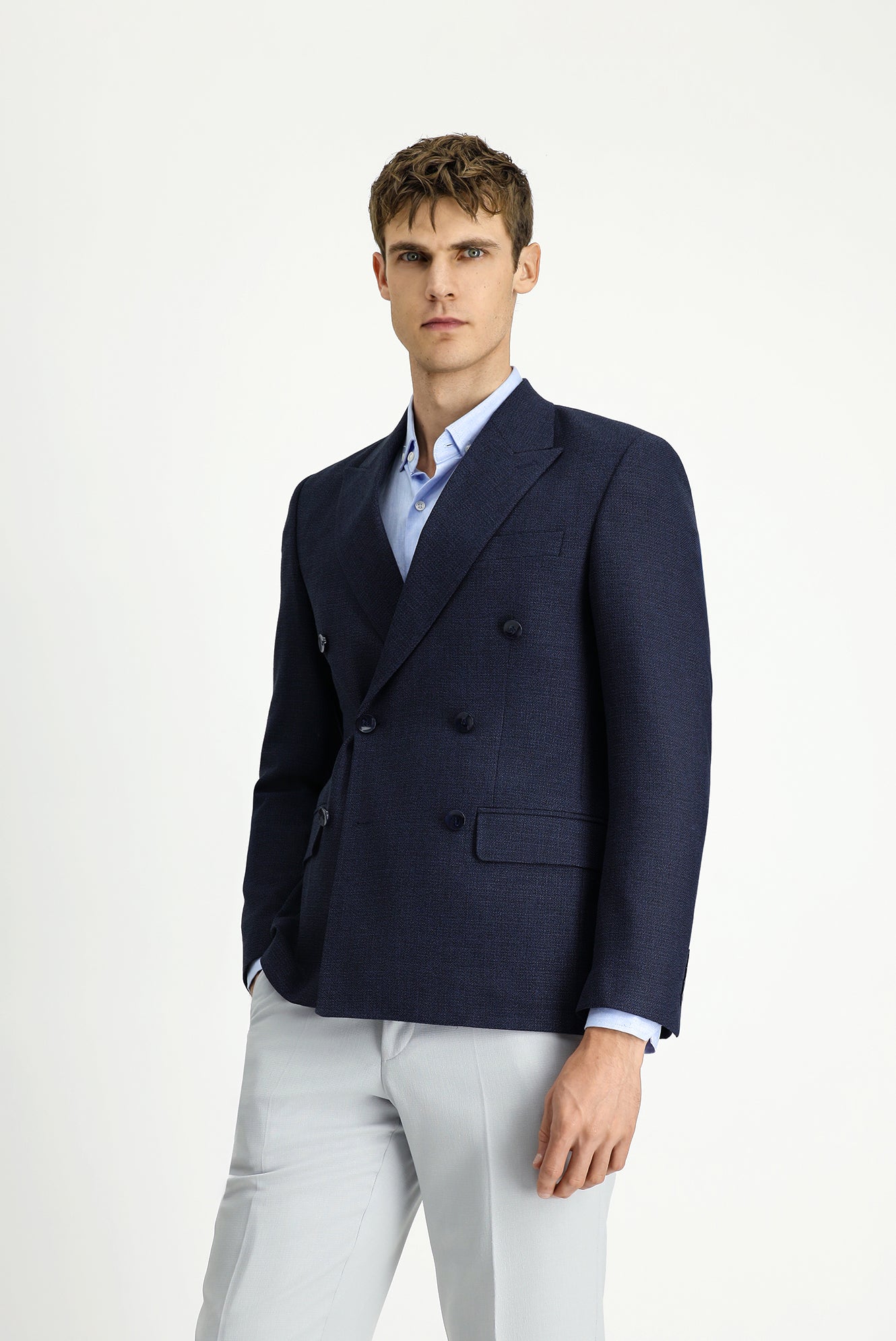 Koyu Lacivert Super Slim Fit Ekstra Dar Kesim Desenli Kruvaze Ceket