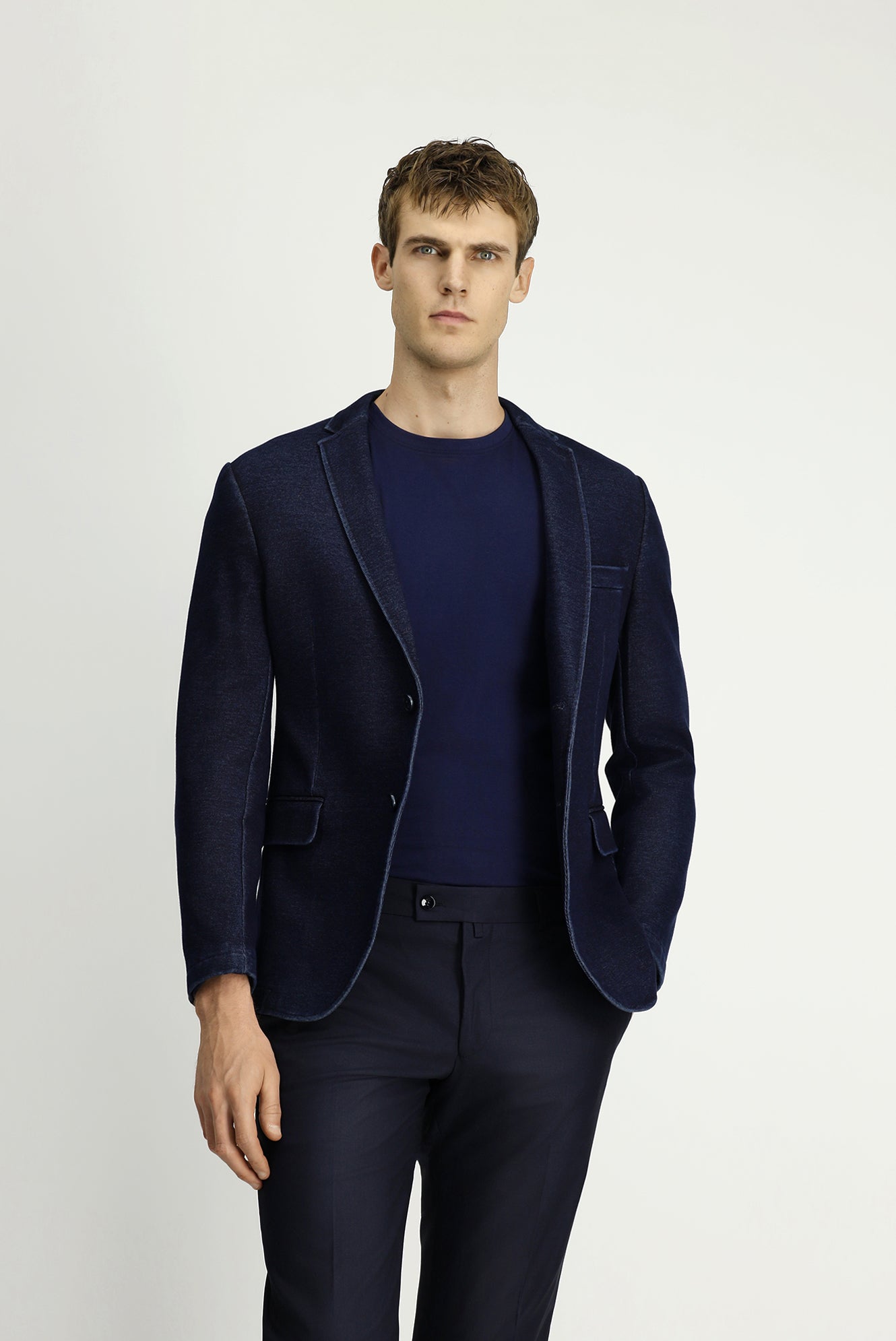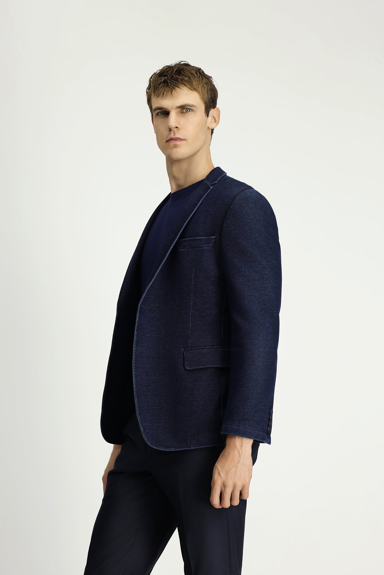 Koyu Lacivert Super Slim Fit Ekstra Dar Kesim Spor Pamuklu Örme Ceket