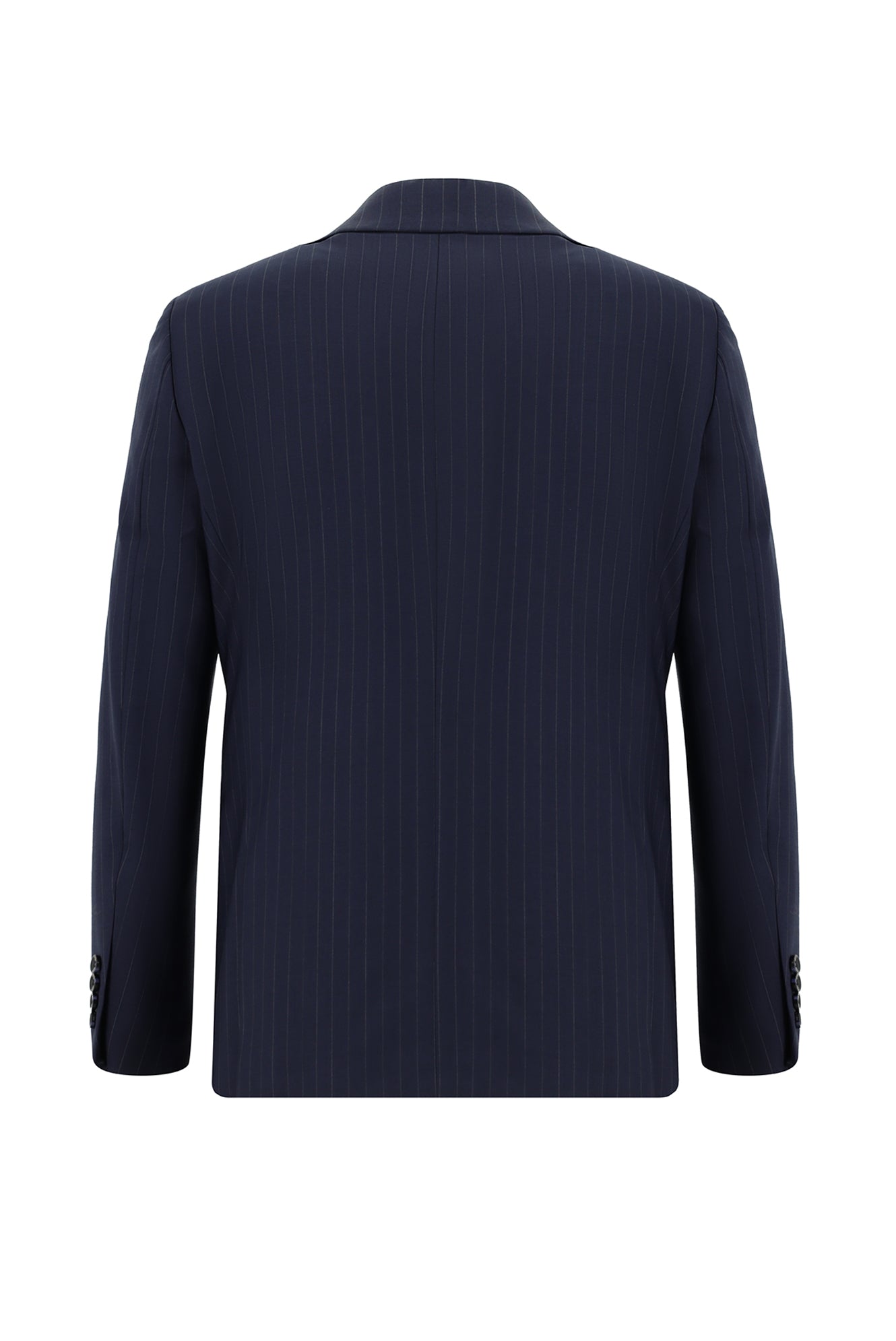 Koyu Lacivert 7 Drop Super Slim Fit Eksra Dar Kesim Yünlü Çizgili Takım Elbise