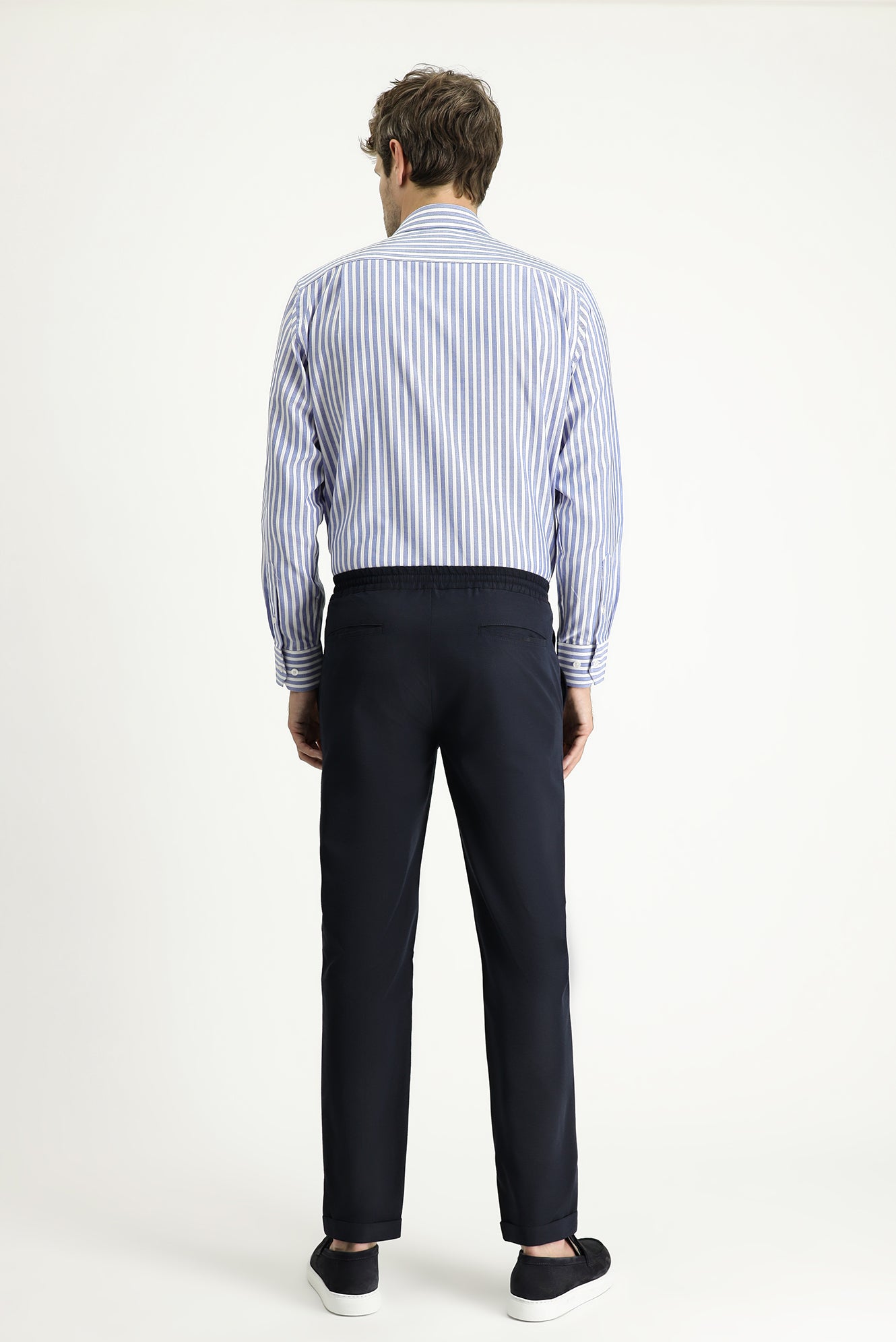 Koyu Lacivert Techno-Line Slim Fit Dar Kesim Beli Lastikli İpli Klasik Kumaş Pantolon