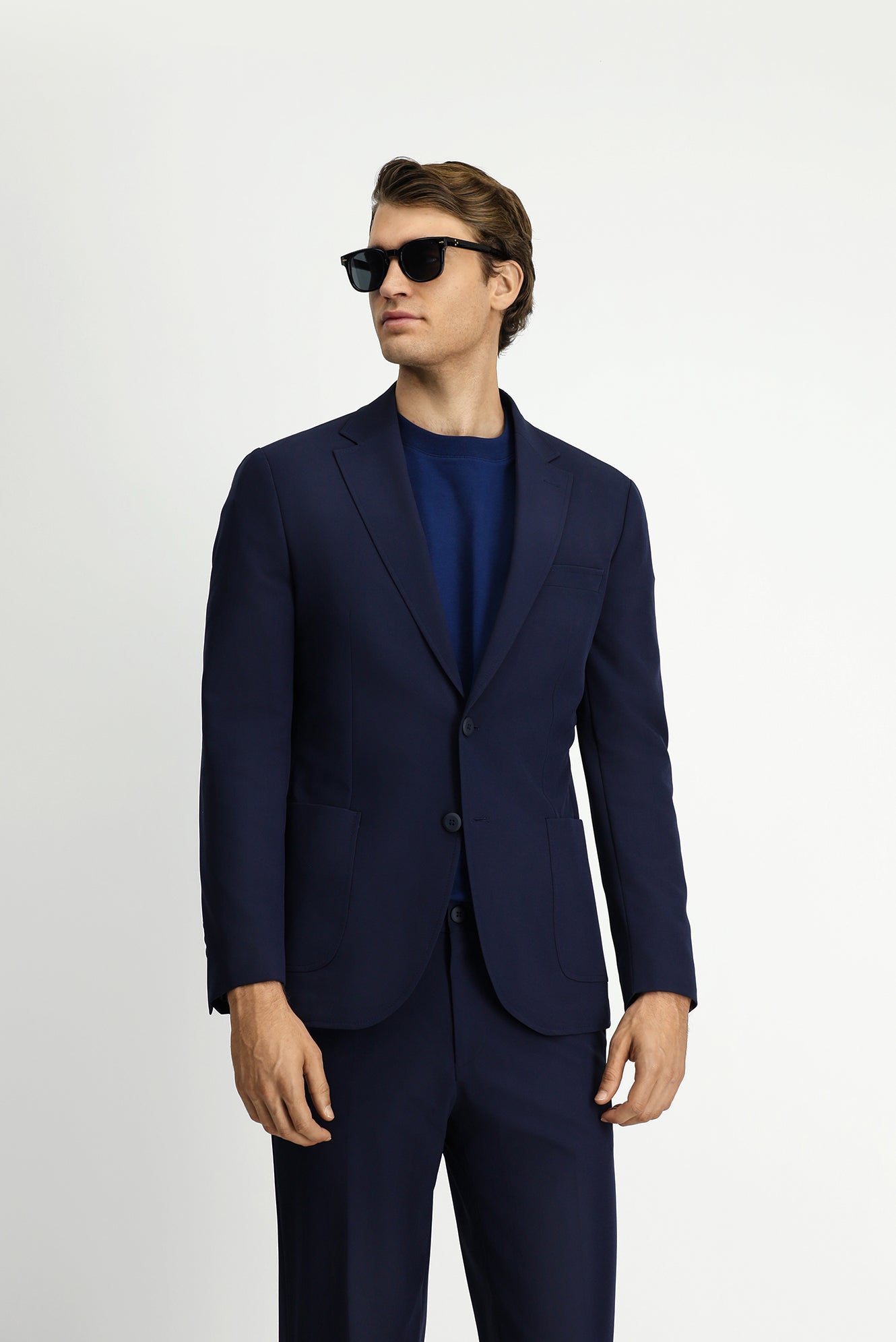 Koyu Lacivert Techno-Line Slim Fit Dar Kesim Likralı Takım Elbise