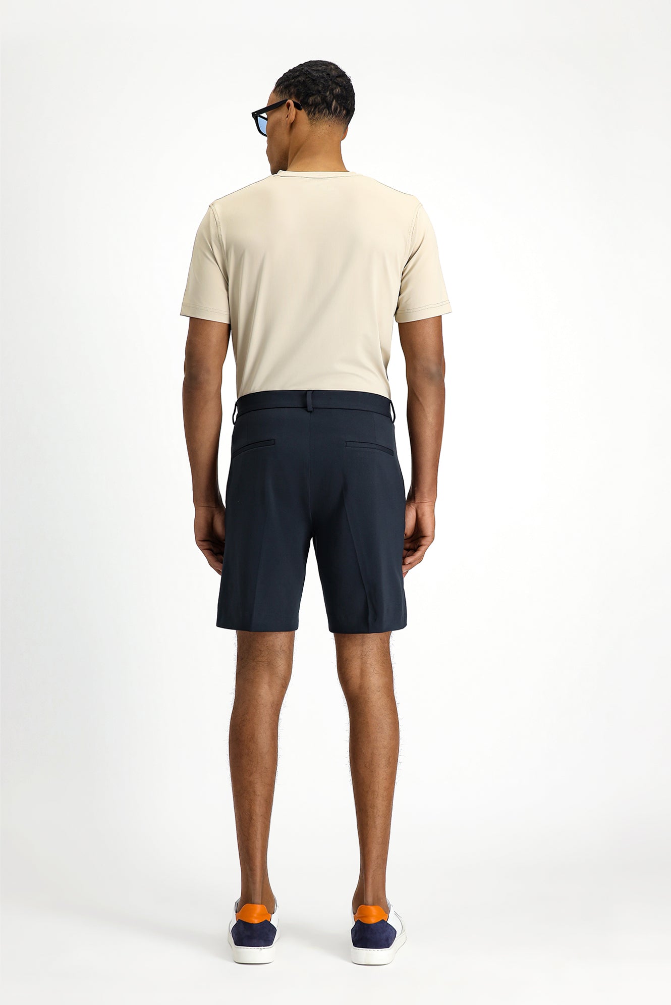 Koyu Lacivert 7 Drop Super Slim Fit Eksra Dar Kesim Techno-Line Likralı Pileli Şort