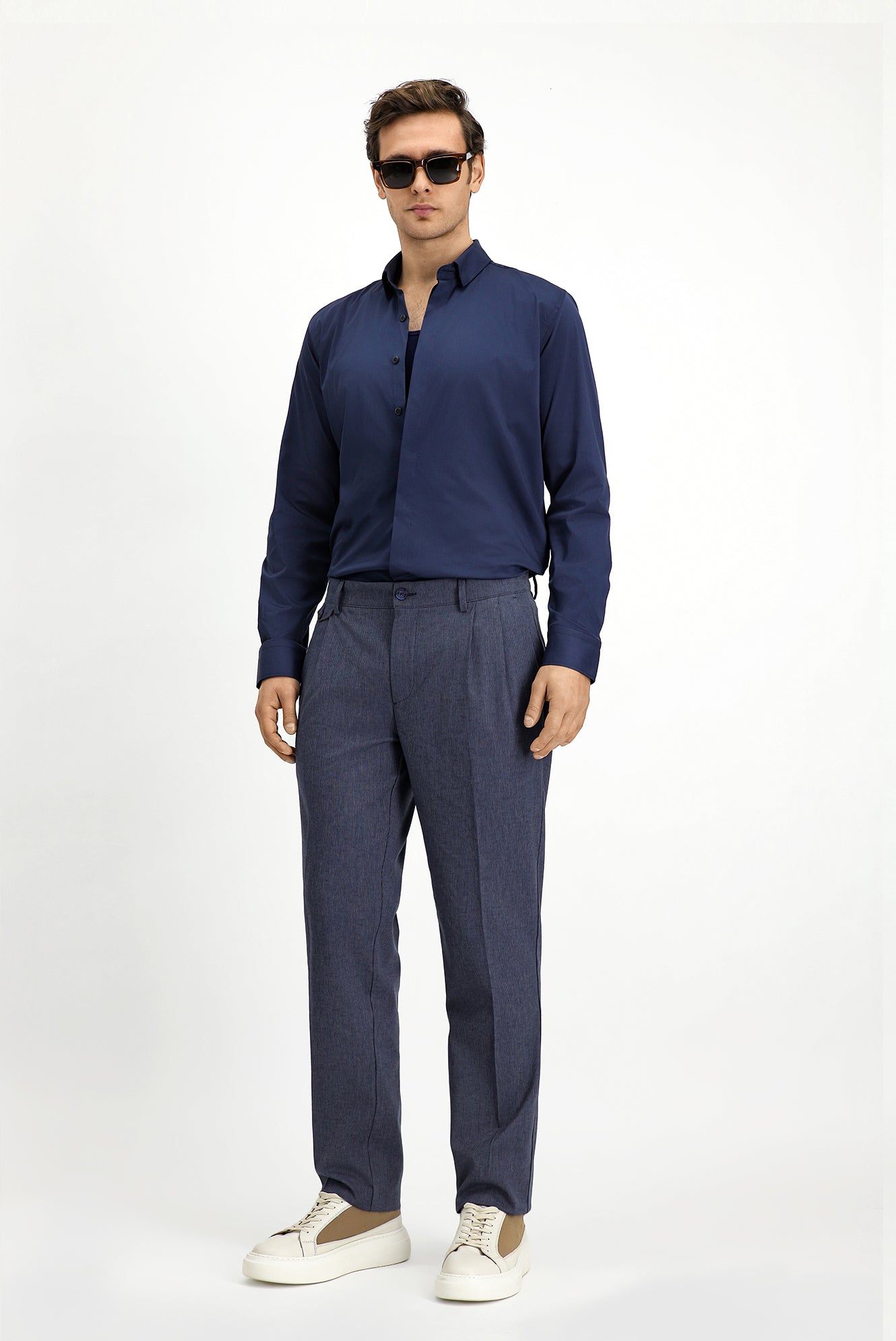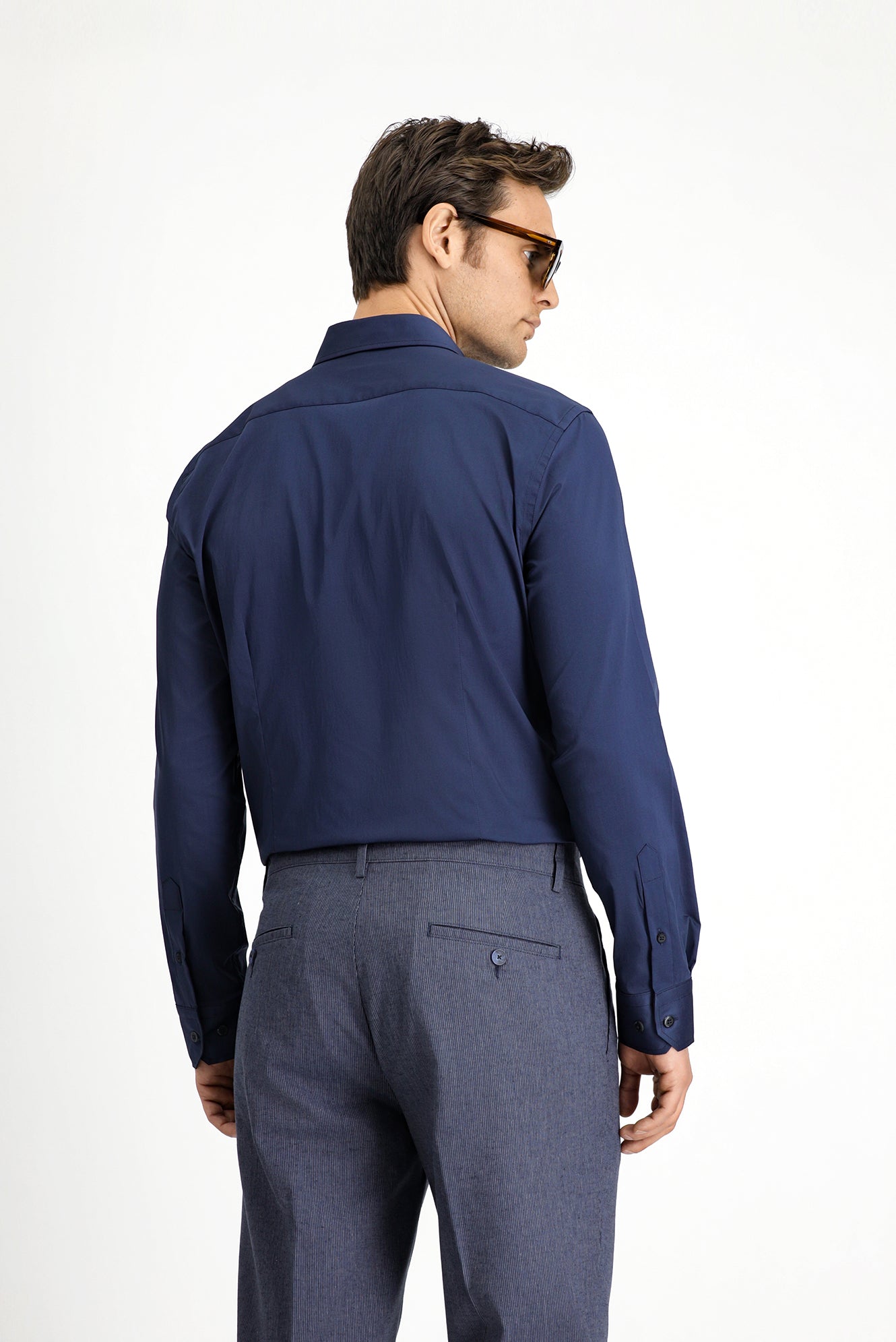 Koyu Lacivert Techno-Line Uzun Kol Slim Fit Dar Kesim Likralı Gömlek