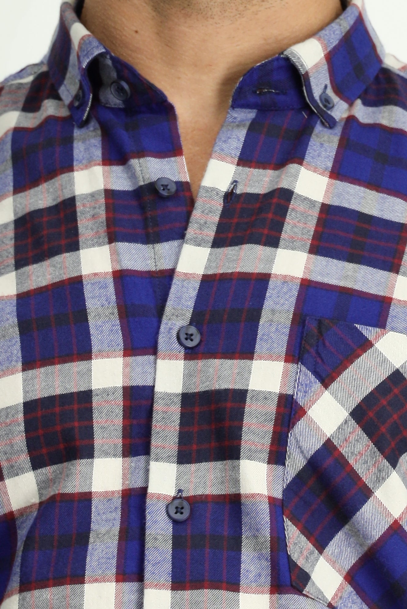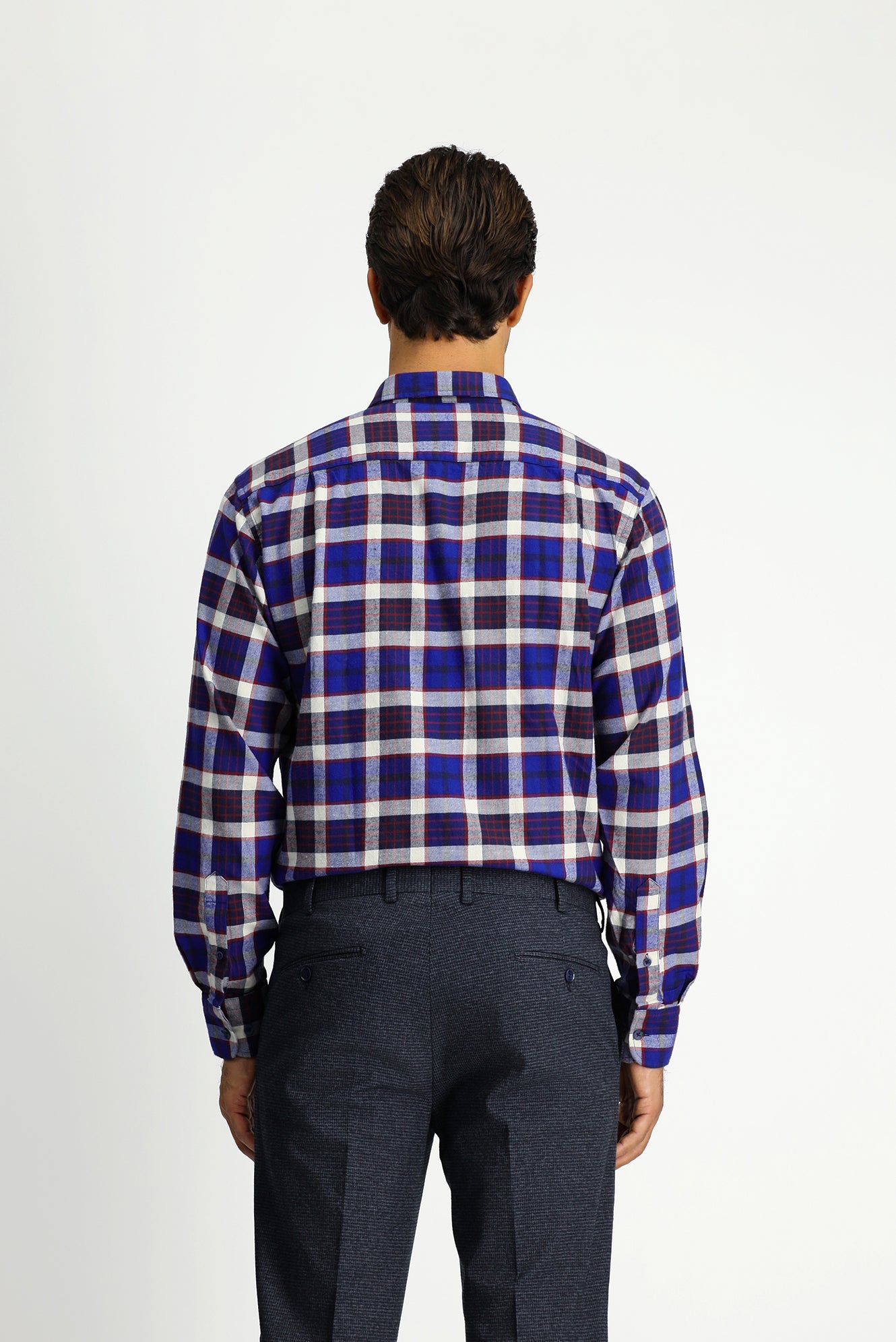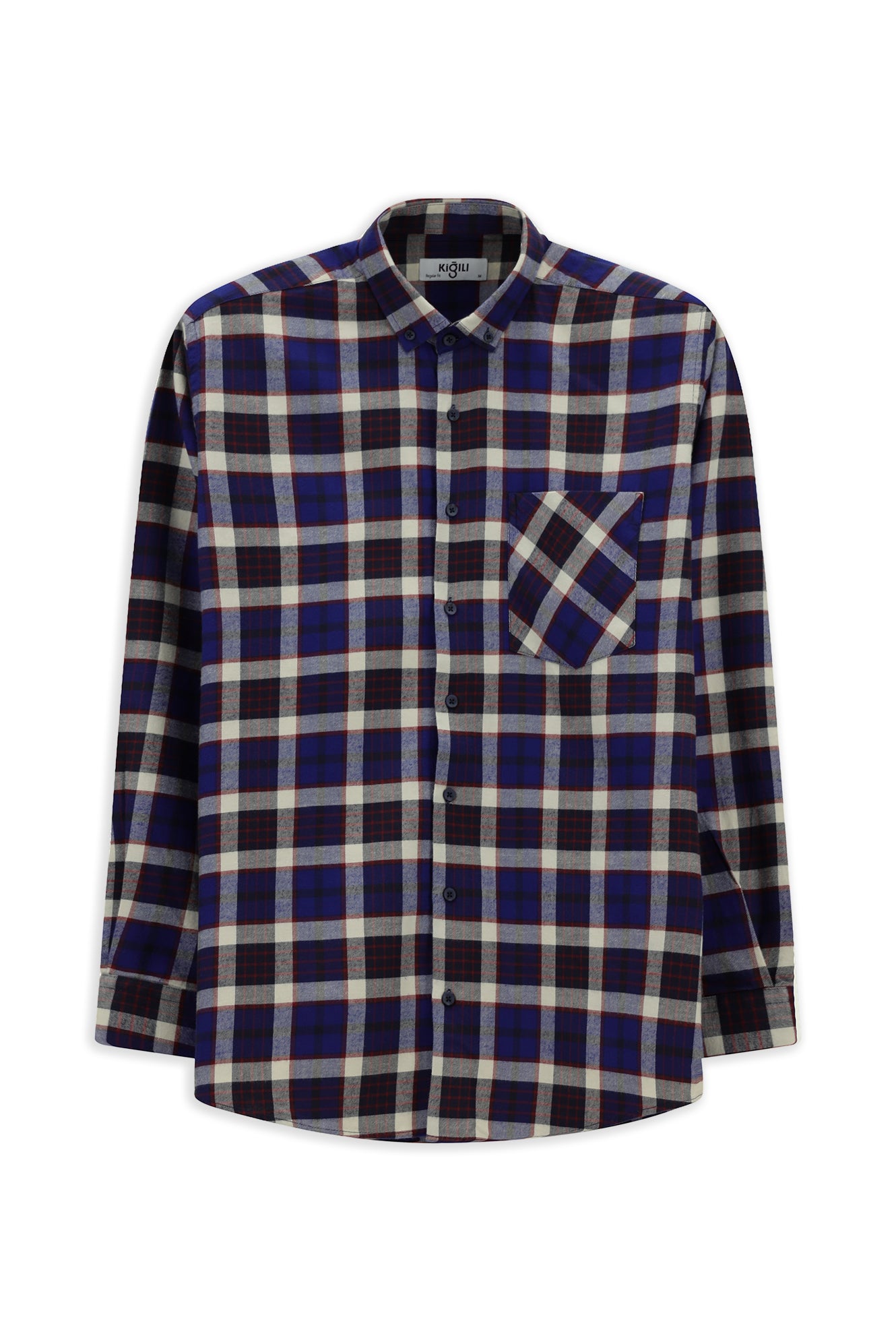 Koyu Lacivert Uzun Kol Regular Fit Ekose Cepli Düğmeli Yaka Pamuk Gömlek