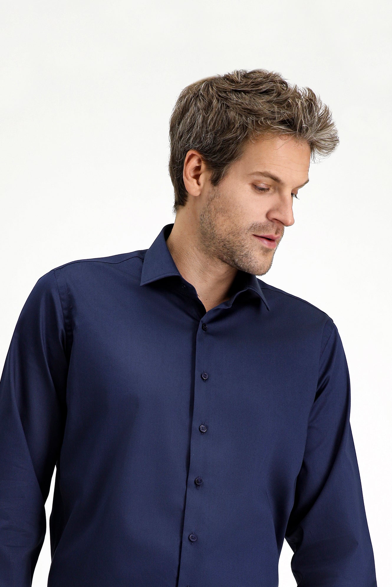 Koyu Lacivert Uzun Kol Klasik Pamuk Gömlek
