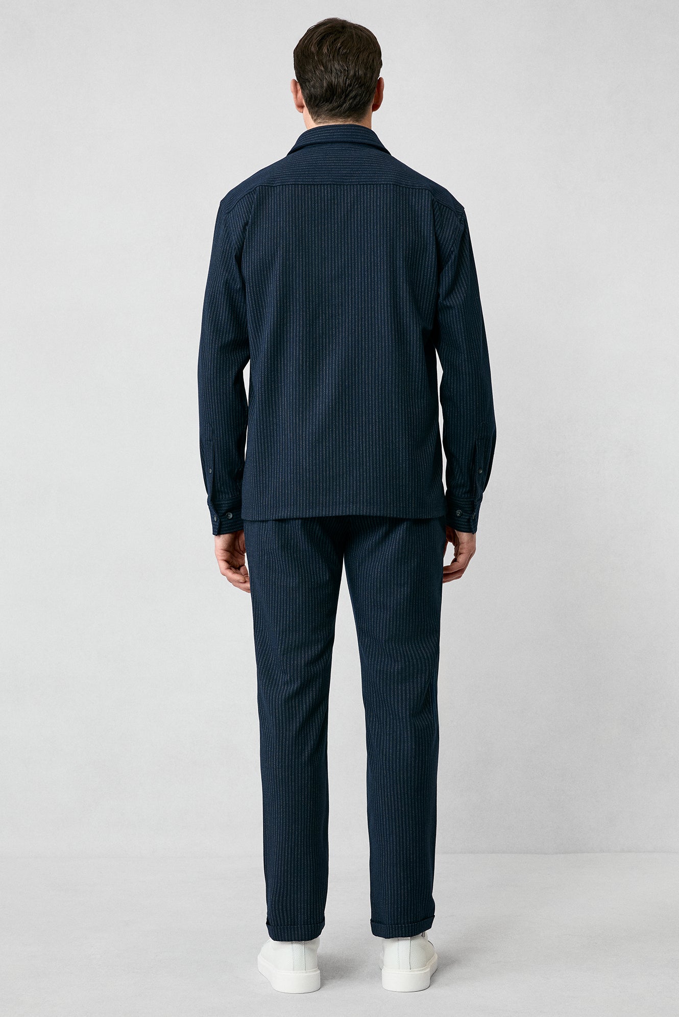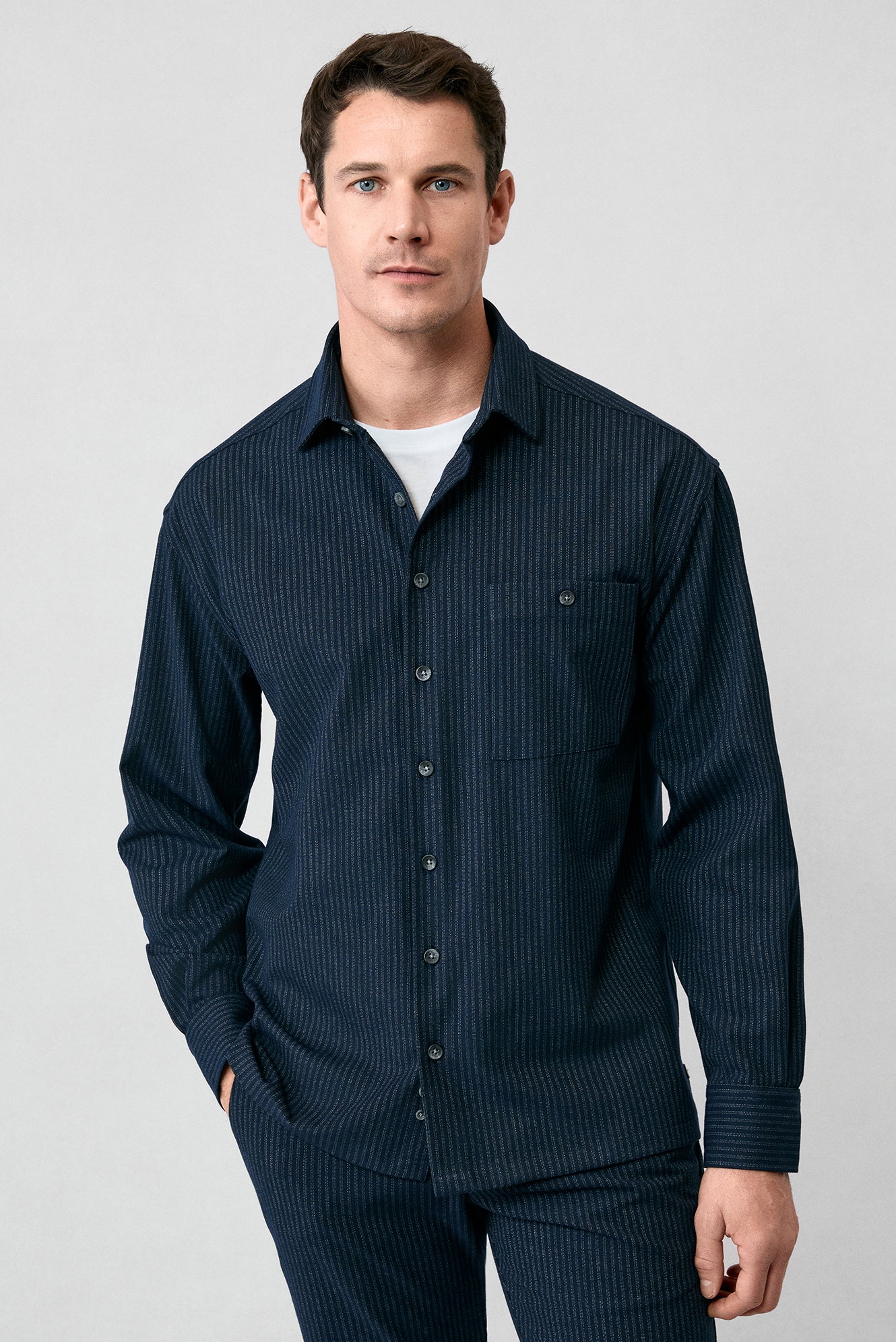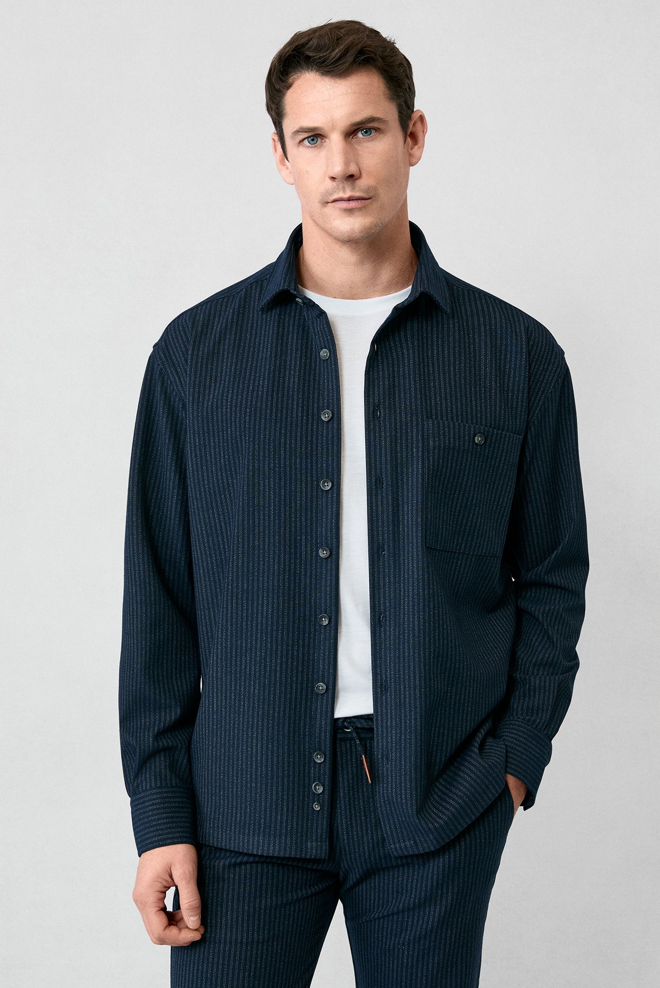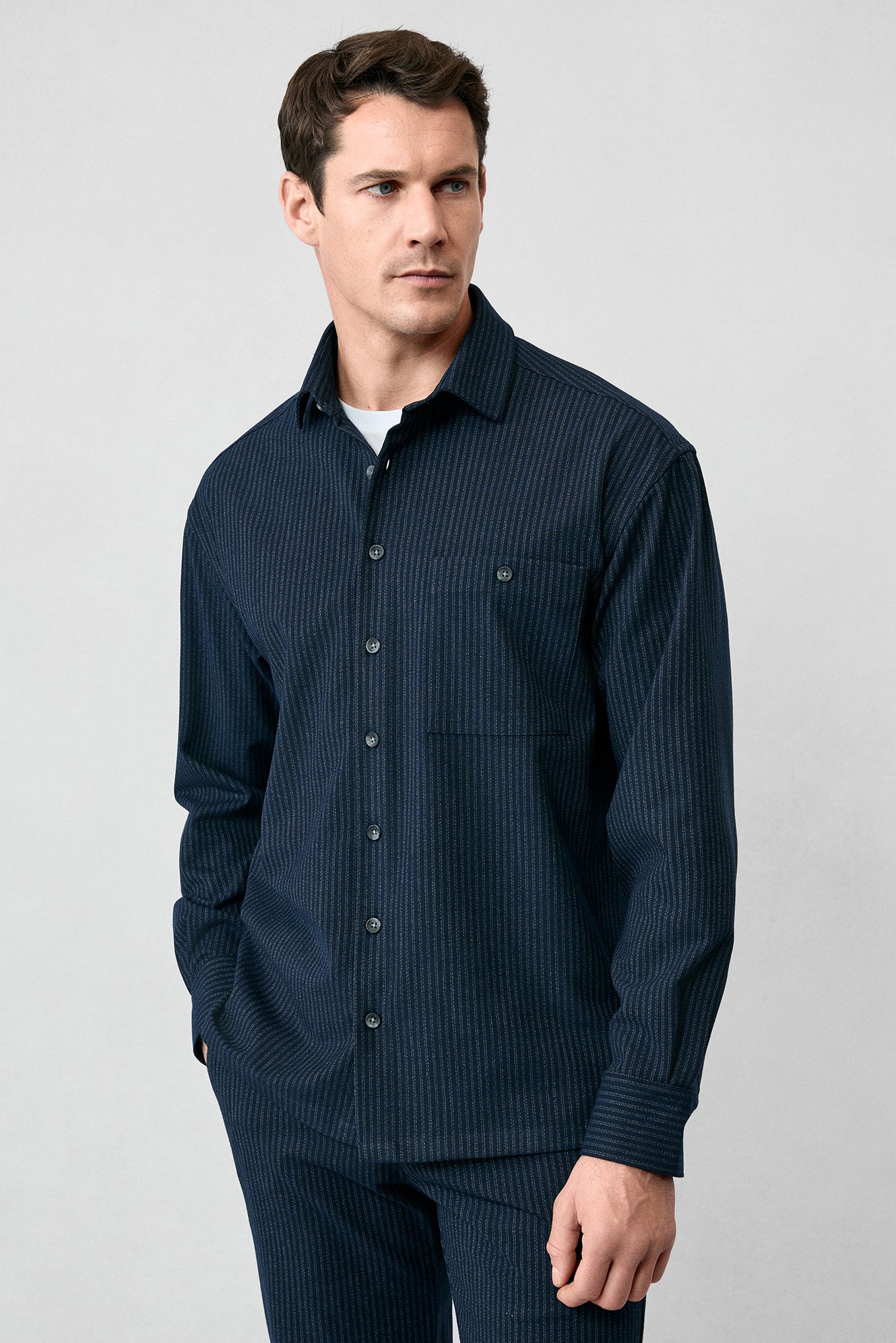 Koyu Lacivert Uzun Kol Oversize Ekstra Rahat Kesim Fit Çizgili Spor Gömlek