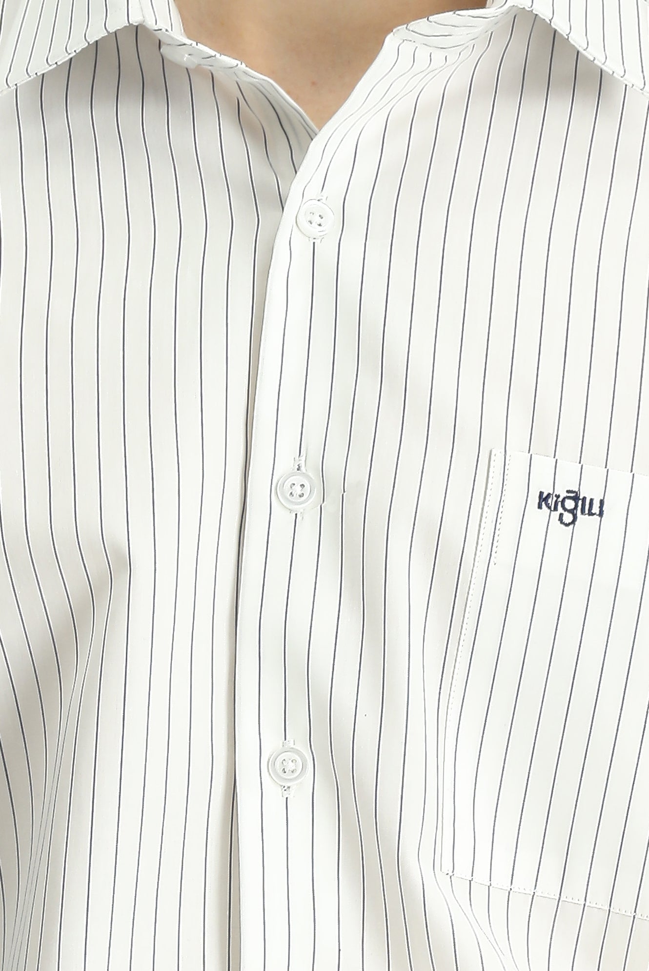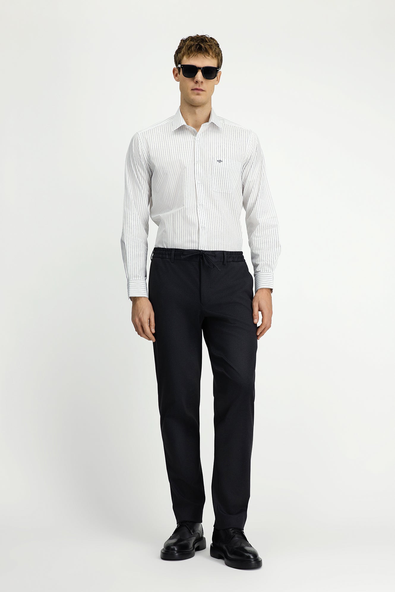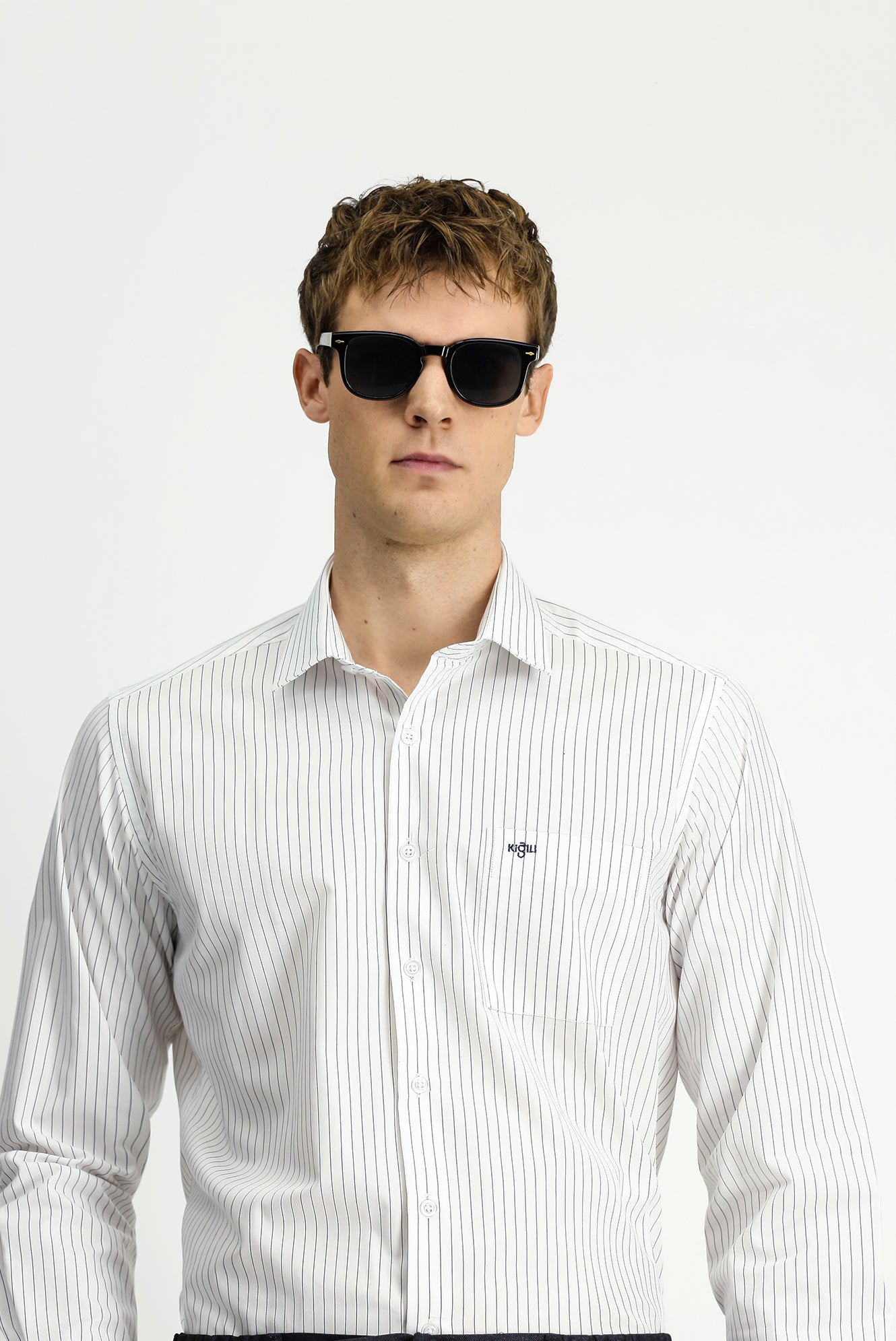 Koyu Lacivert Uzun Kol Klasik Cepli Çizgili Pamuklu Kolay Ütülenebilir Gömlek