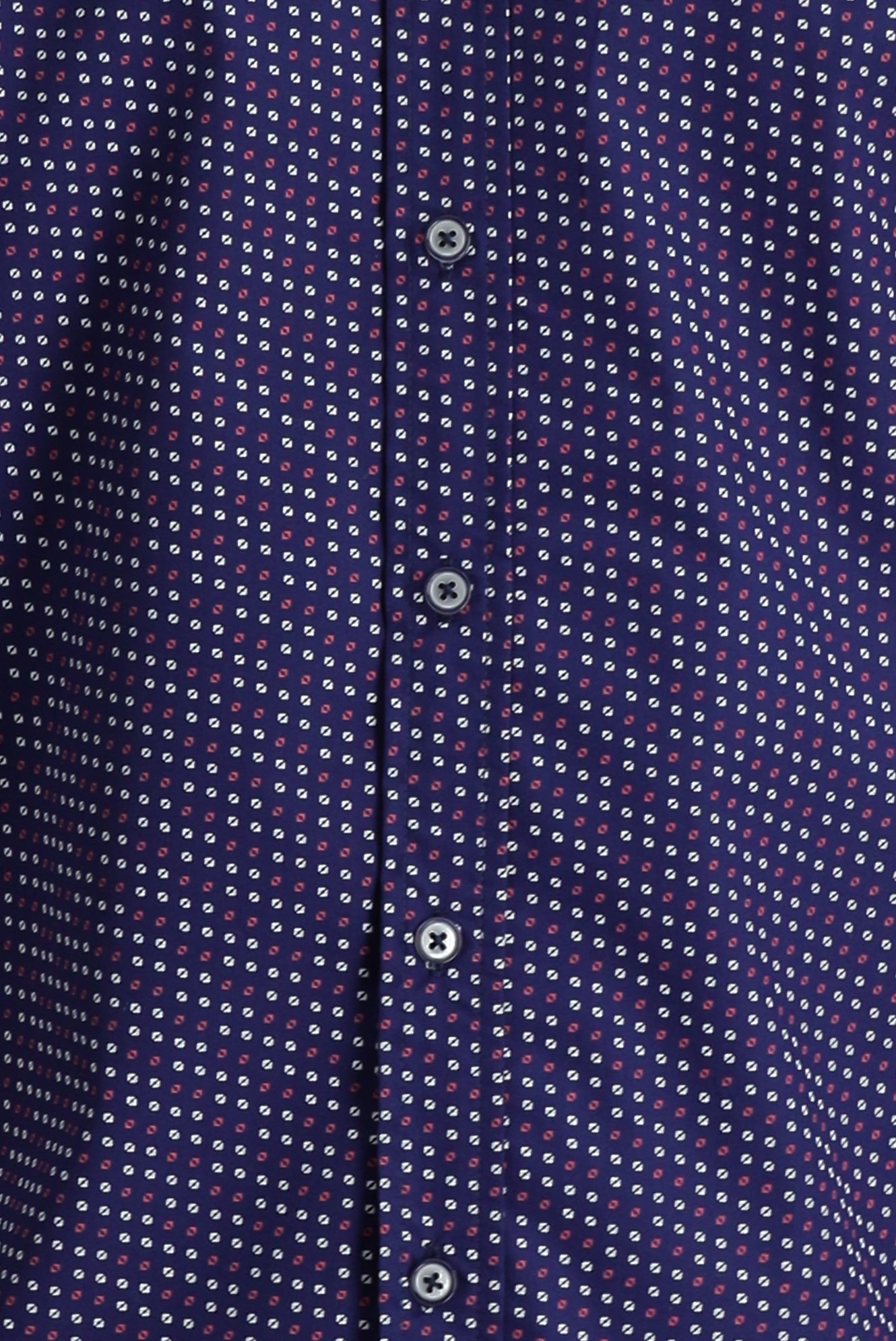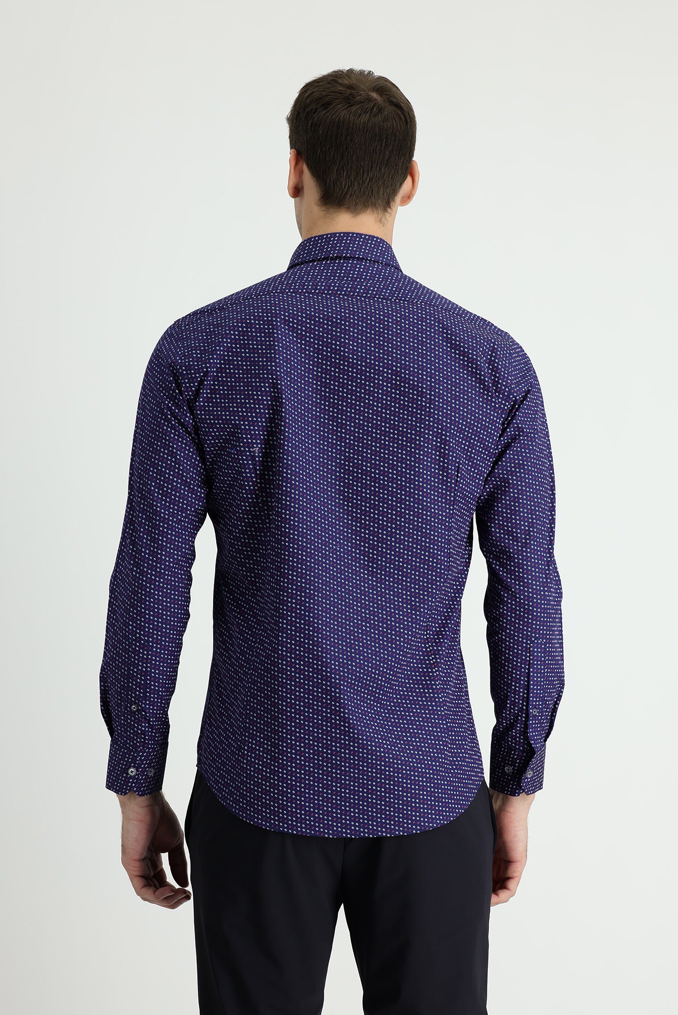 Koyu Lacivert Uzun Kol Slim Fit Dar Kesim Baskılı Pamuk Gömlek