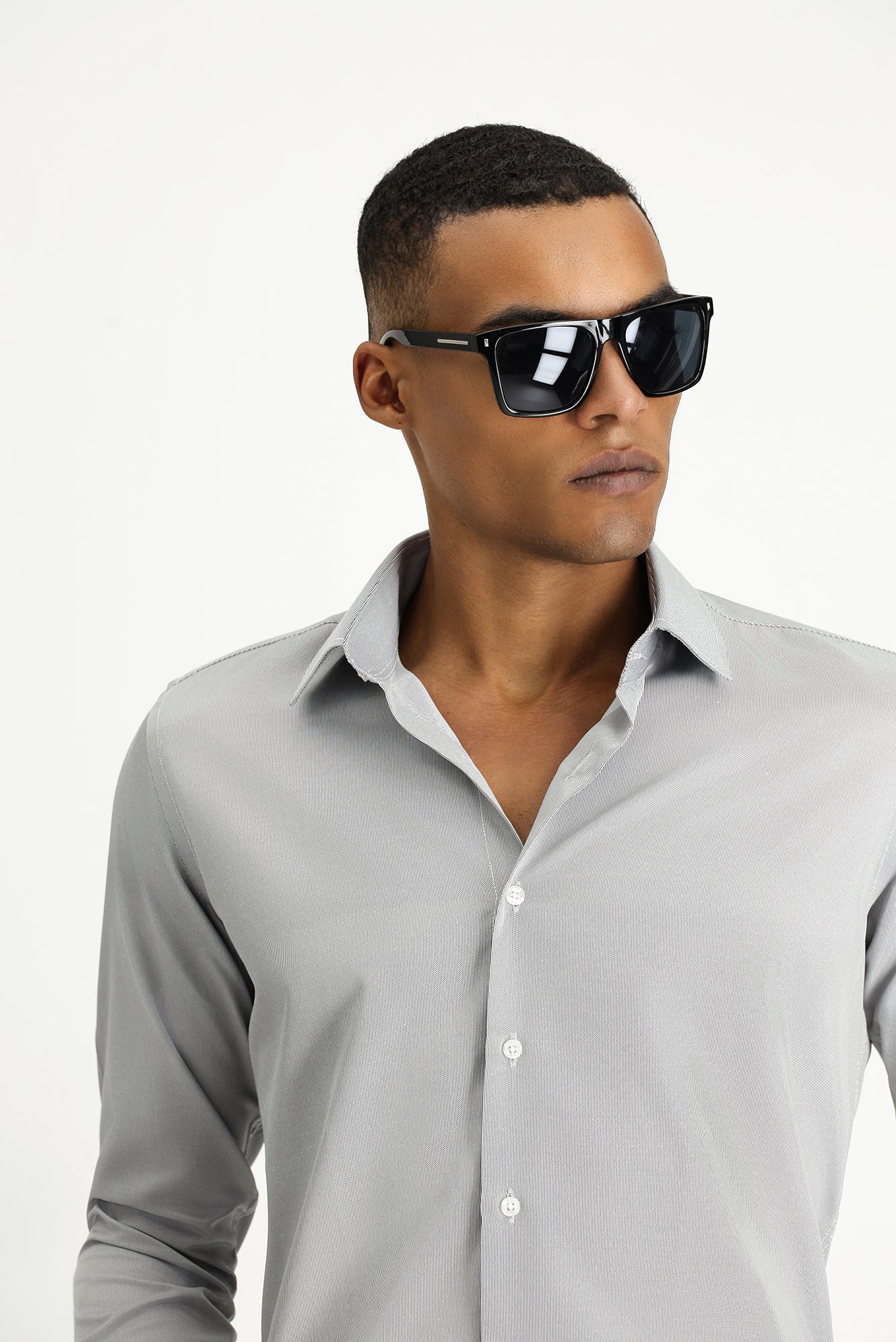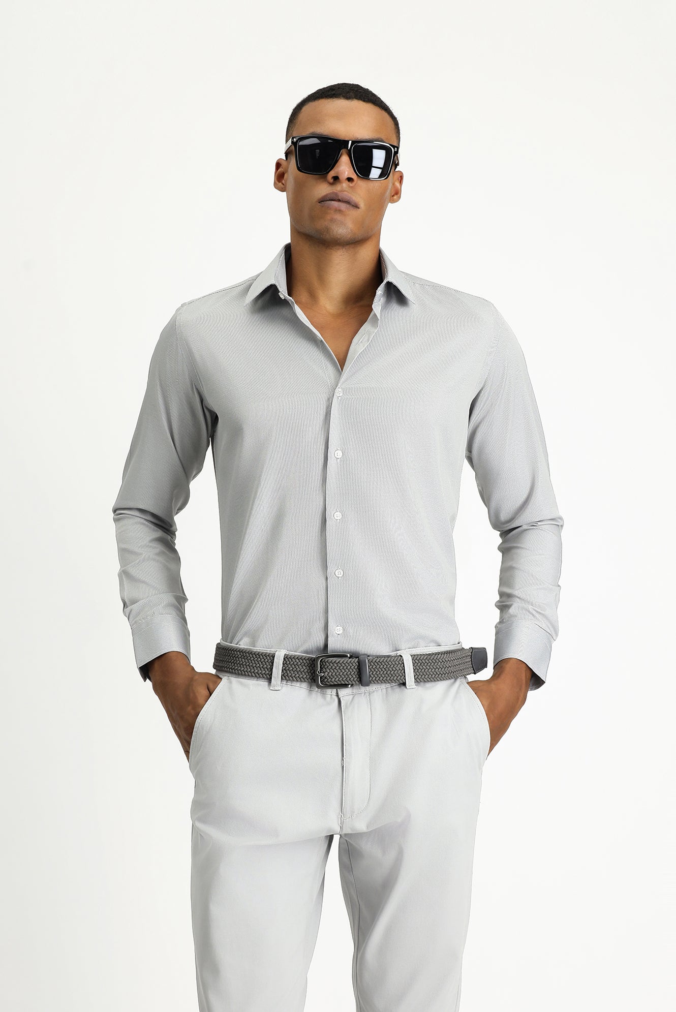 Koyu Lacivert Uzun Kol Slim Fit Dar Kesim Klasik Desenli Pamuklu Kolay Ütülenebilir Gömlek
