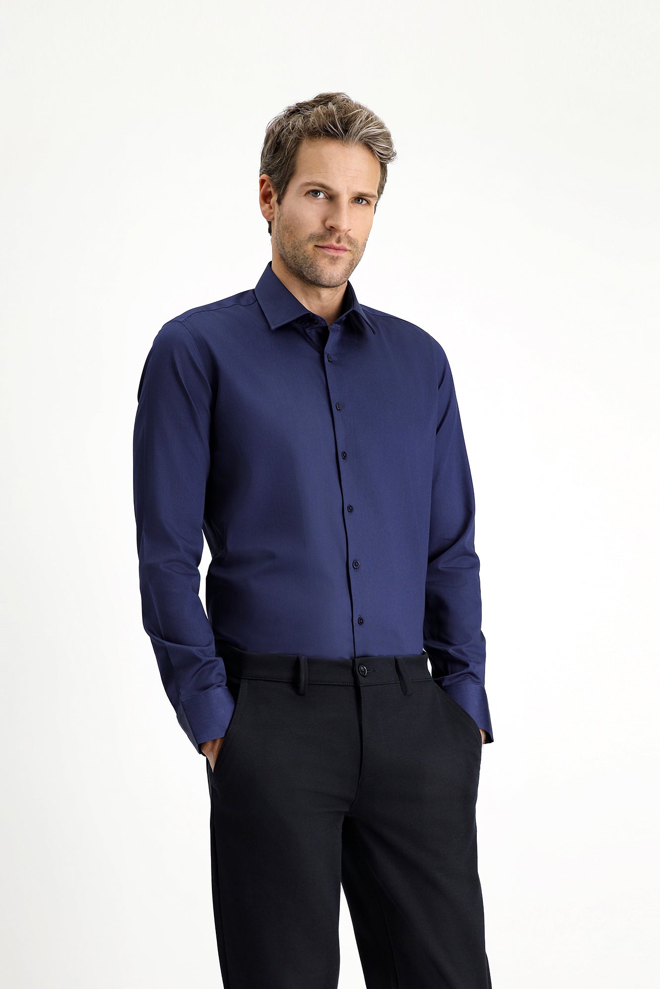 Koyu Lacivert Uzun Kol Slim Fit Dar Kesim Klasik Pamuk Gömlek