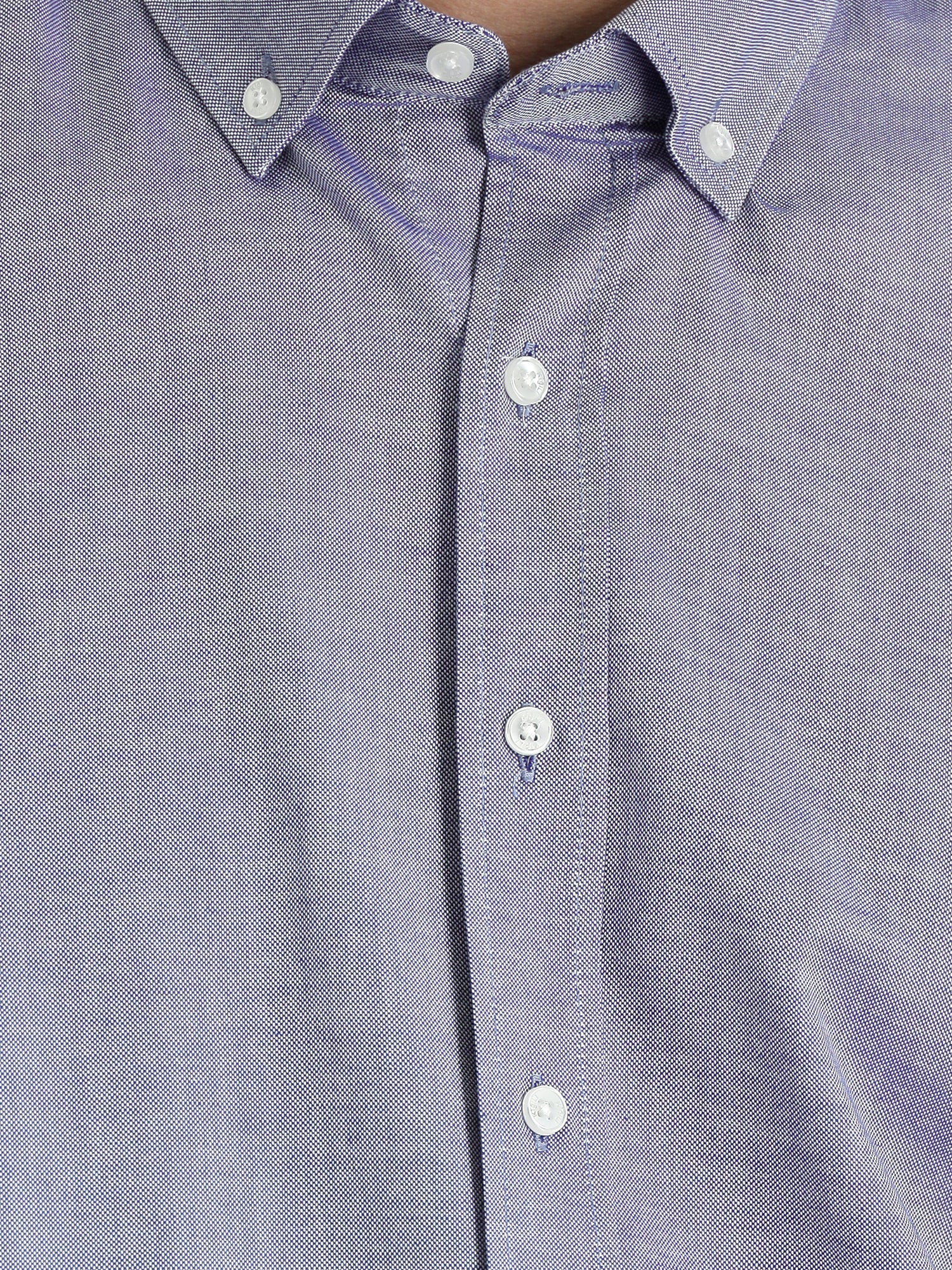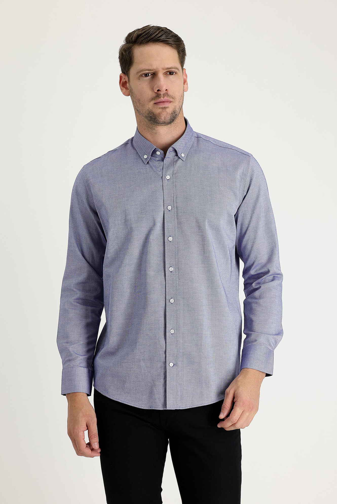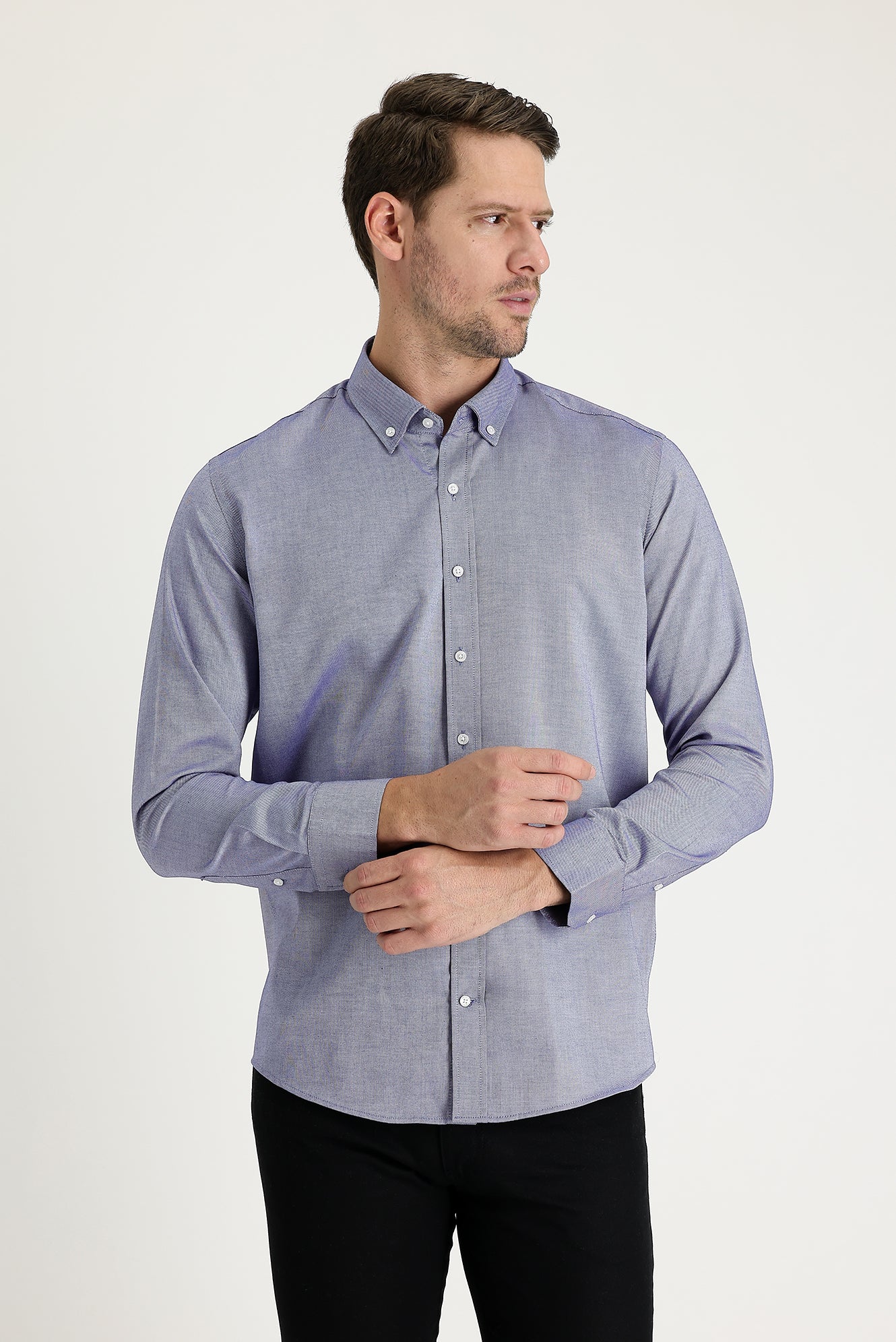 Koyu Lacivert Uzun Kol Slim Fit Dar Kesim Oxford Pamuk Düğmeli Yaka Gömlek