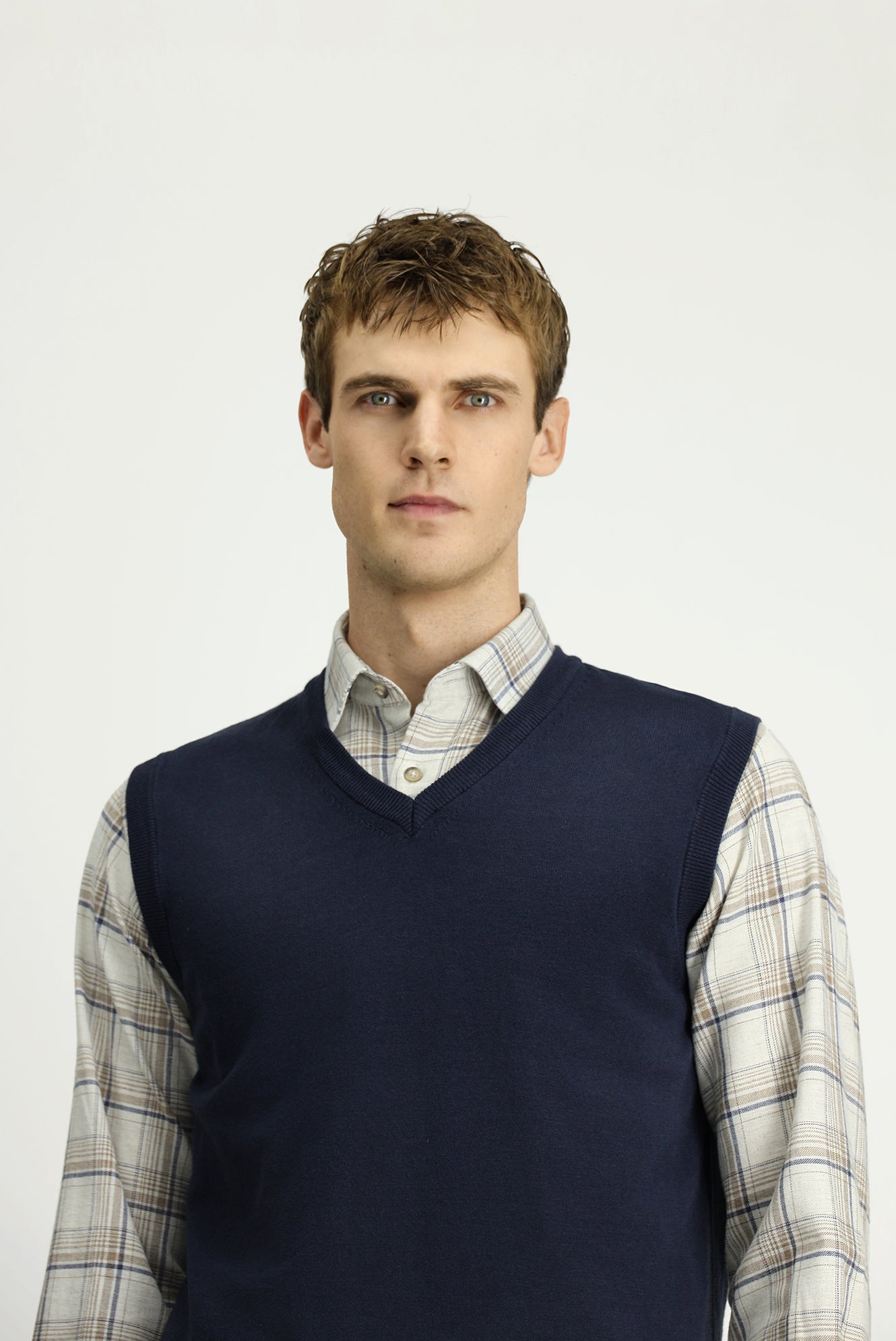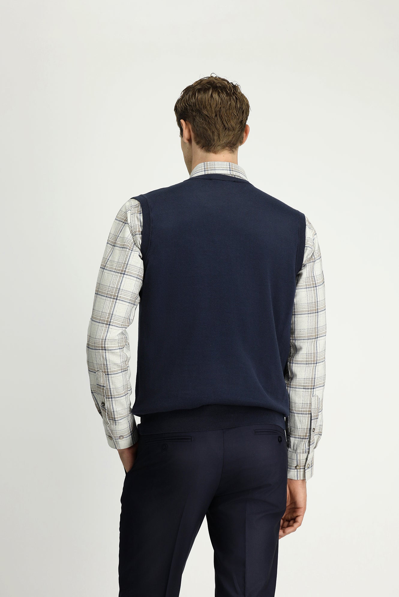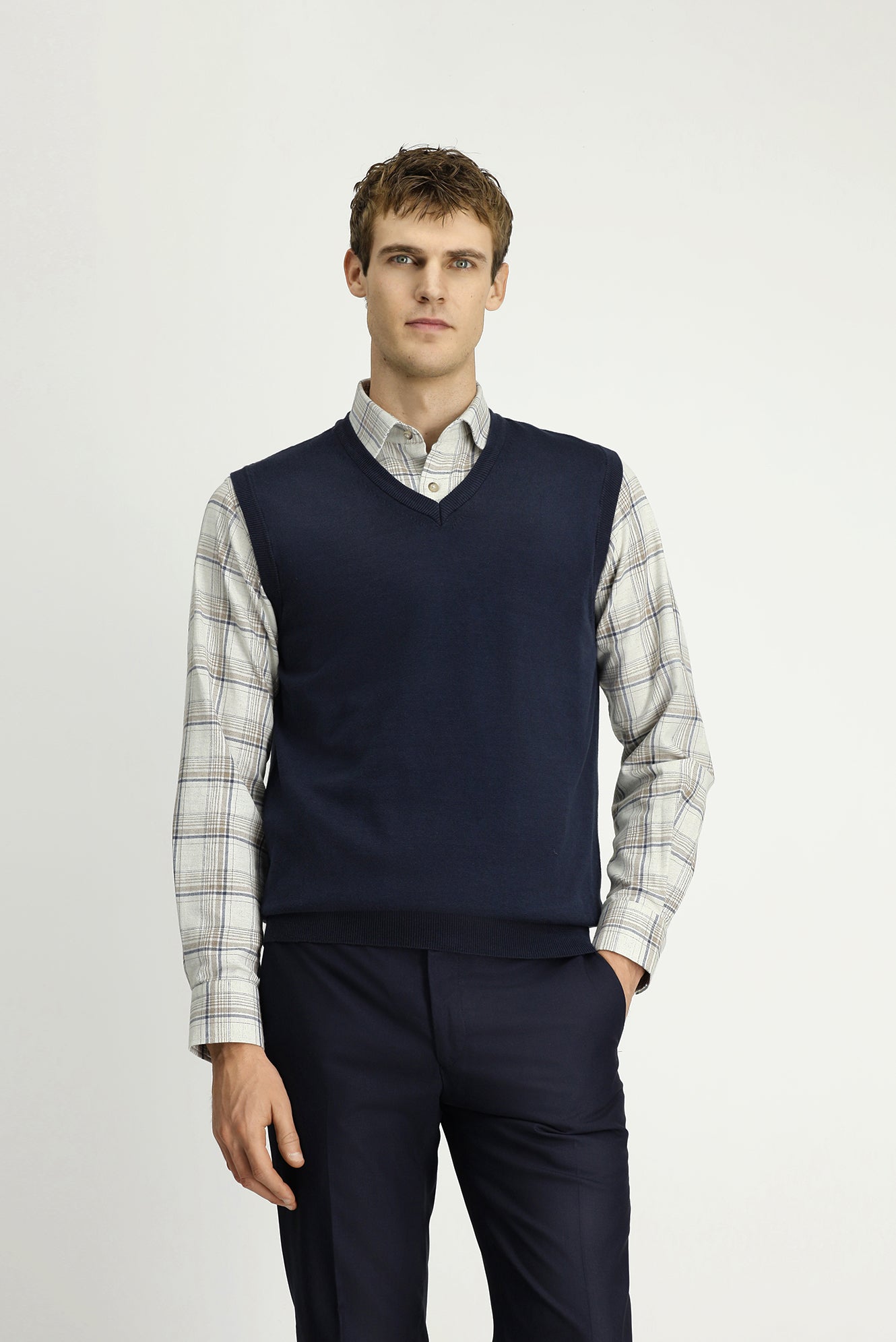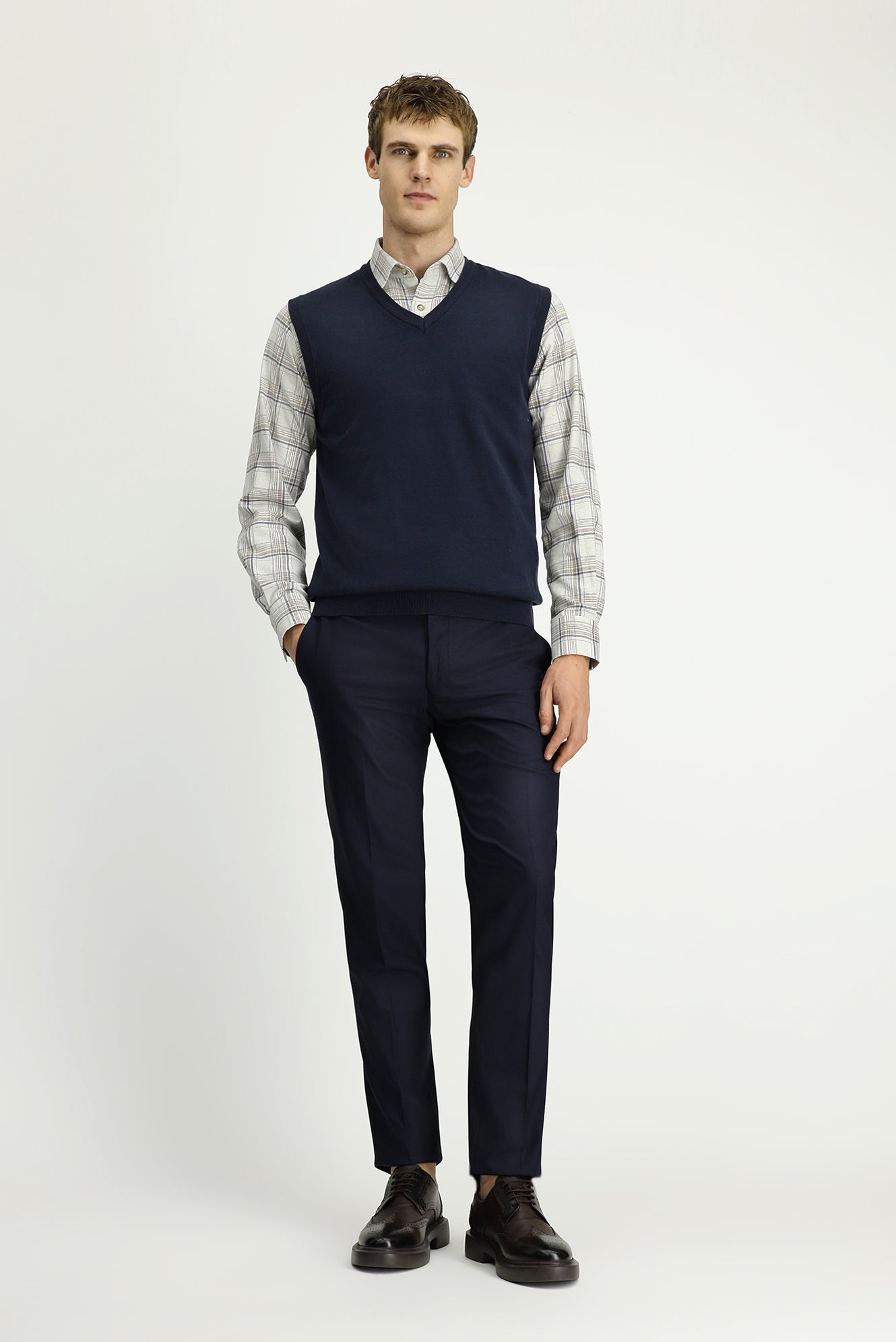 Koyu Lacivert V Yaka Pamuklu Kaşmir Triko Süveter