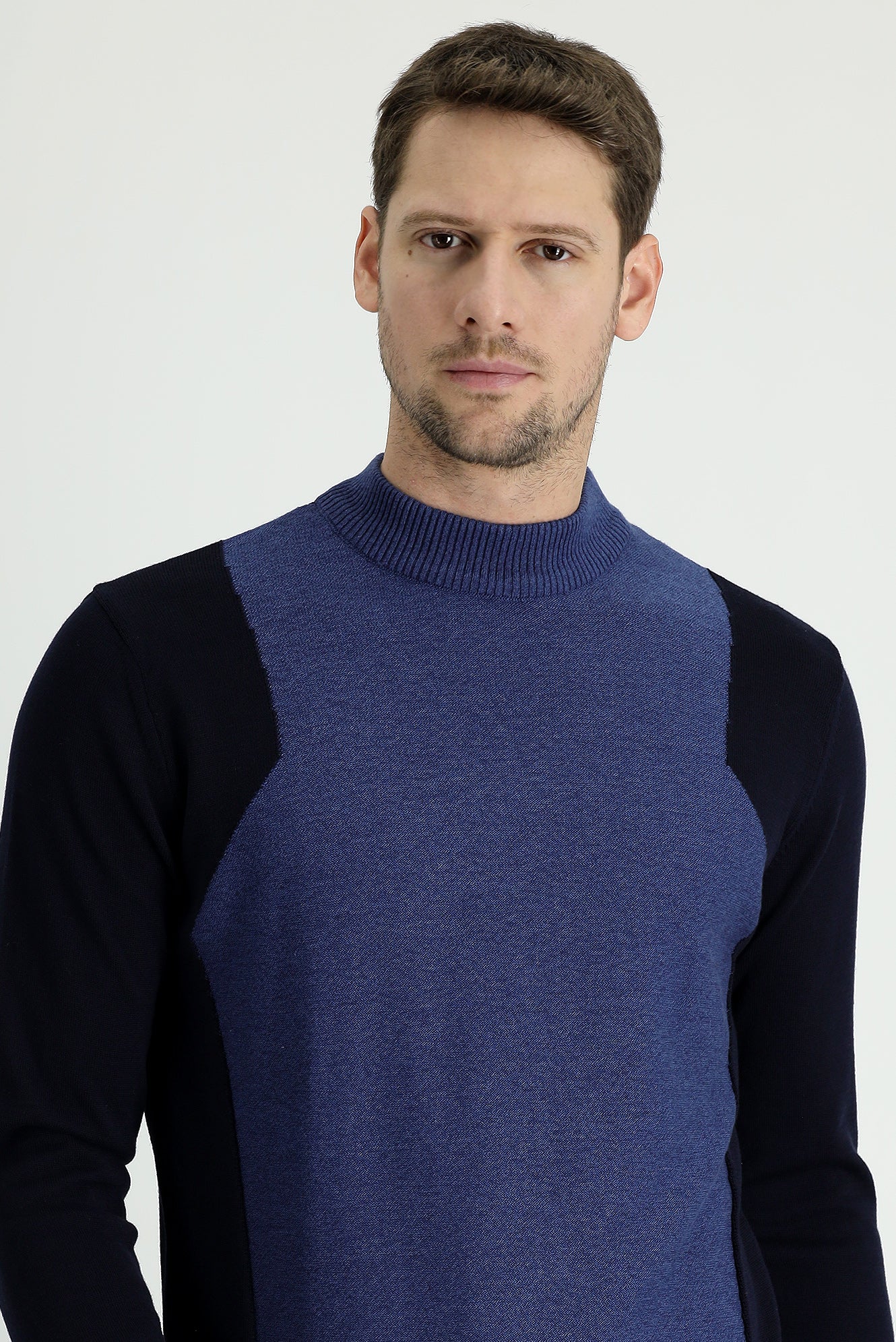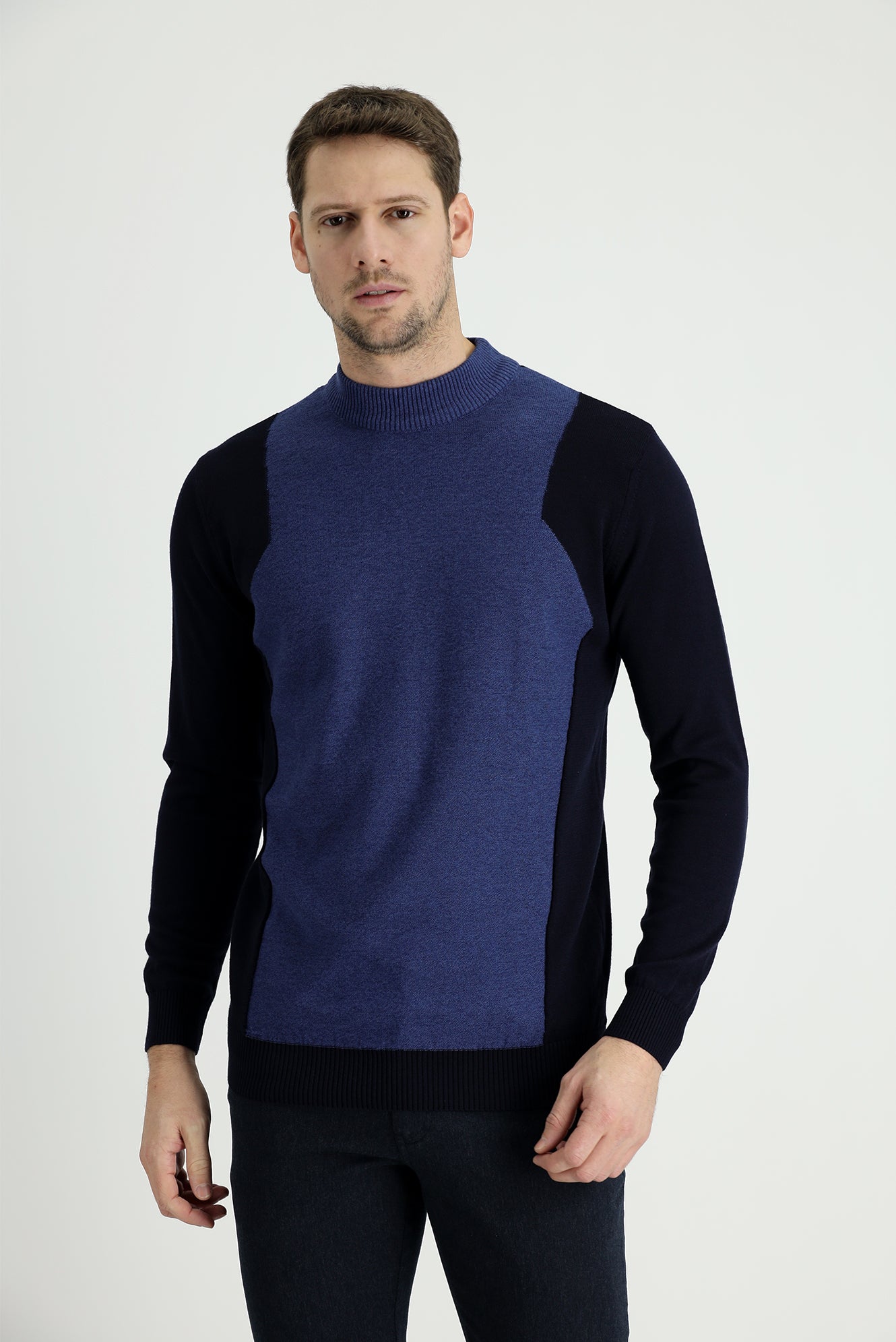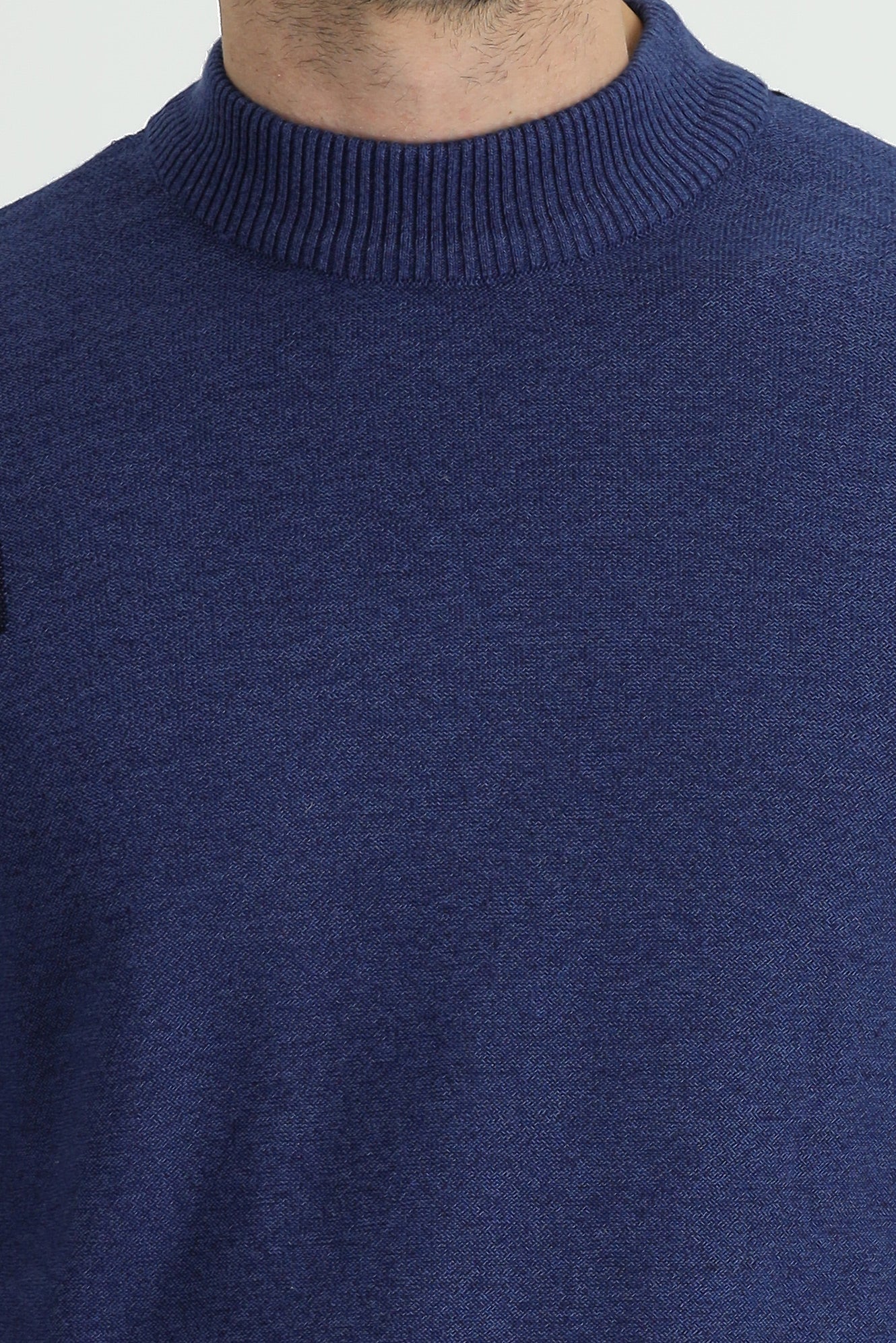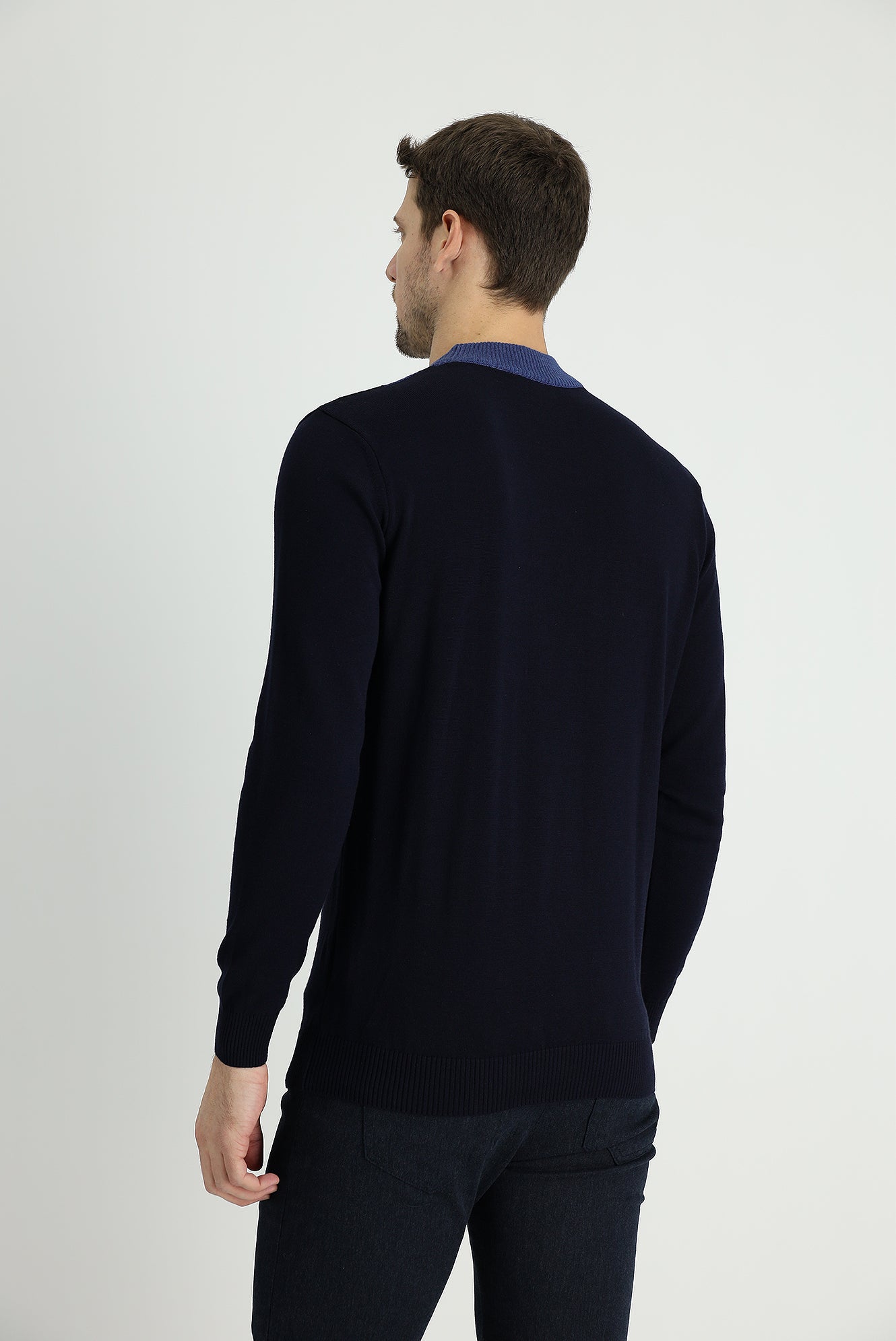 Koyu Lacivert Yarım Balıkçı Yaka Regular Fit Desenli Pamuklu Triko Kazak