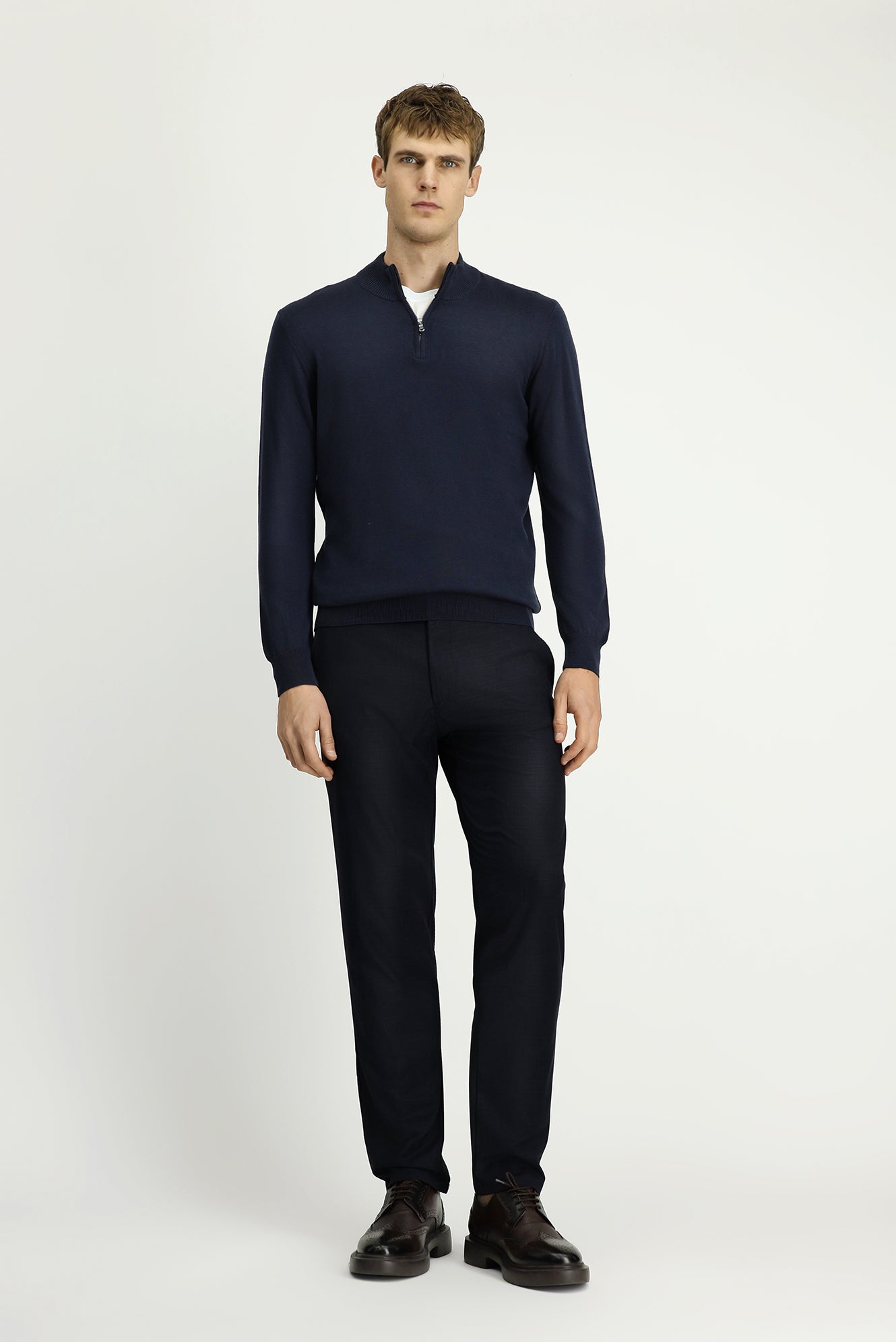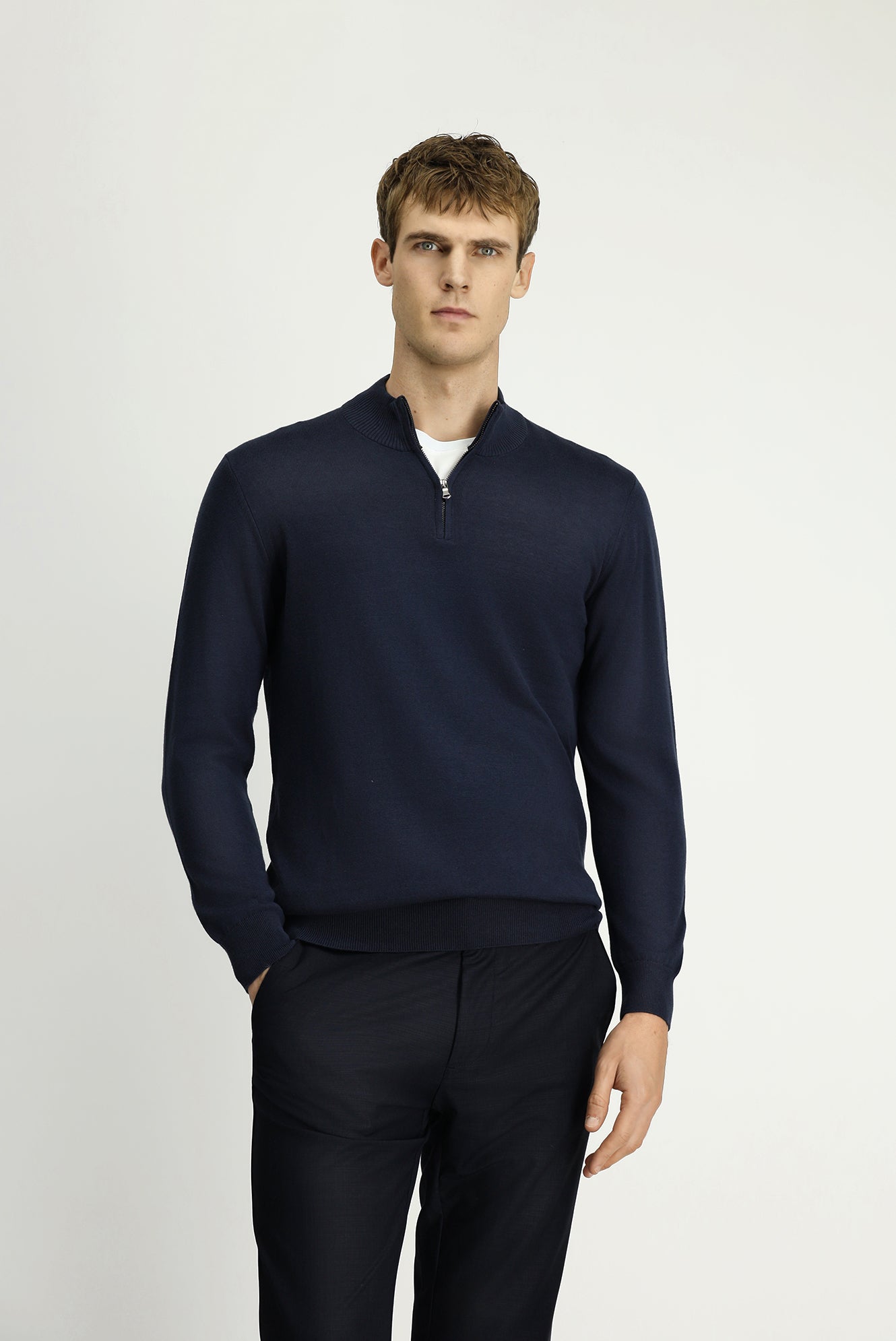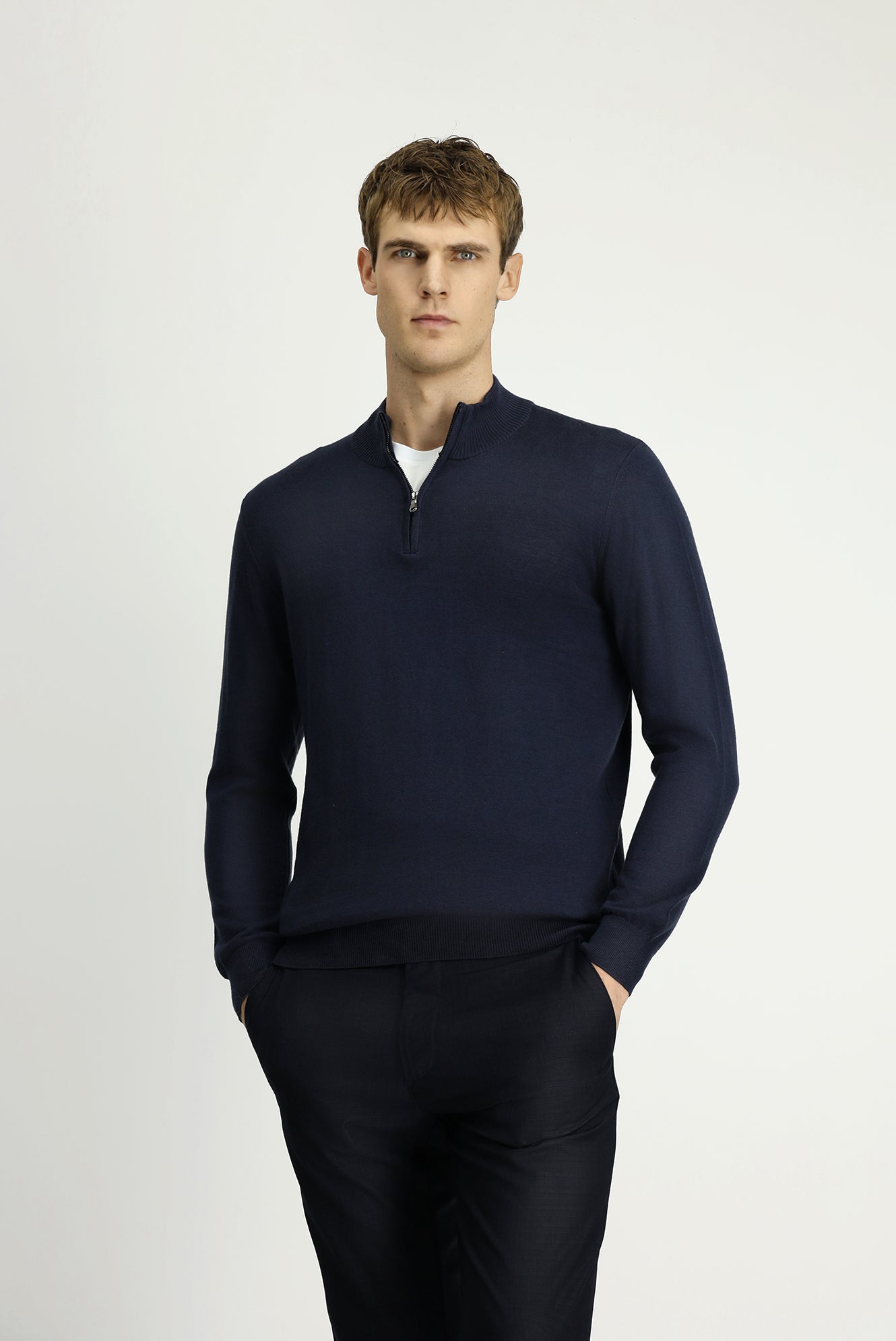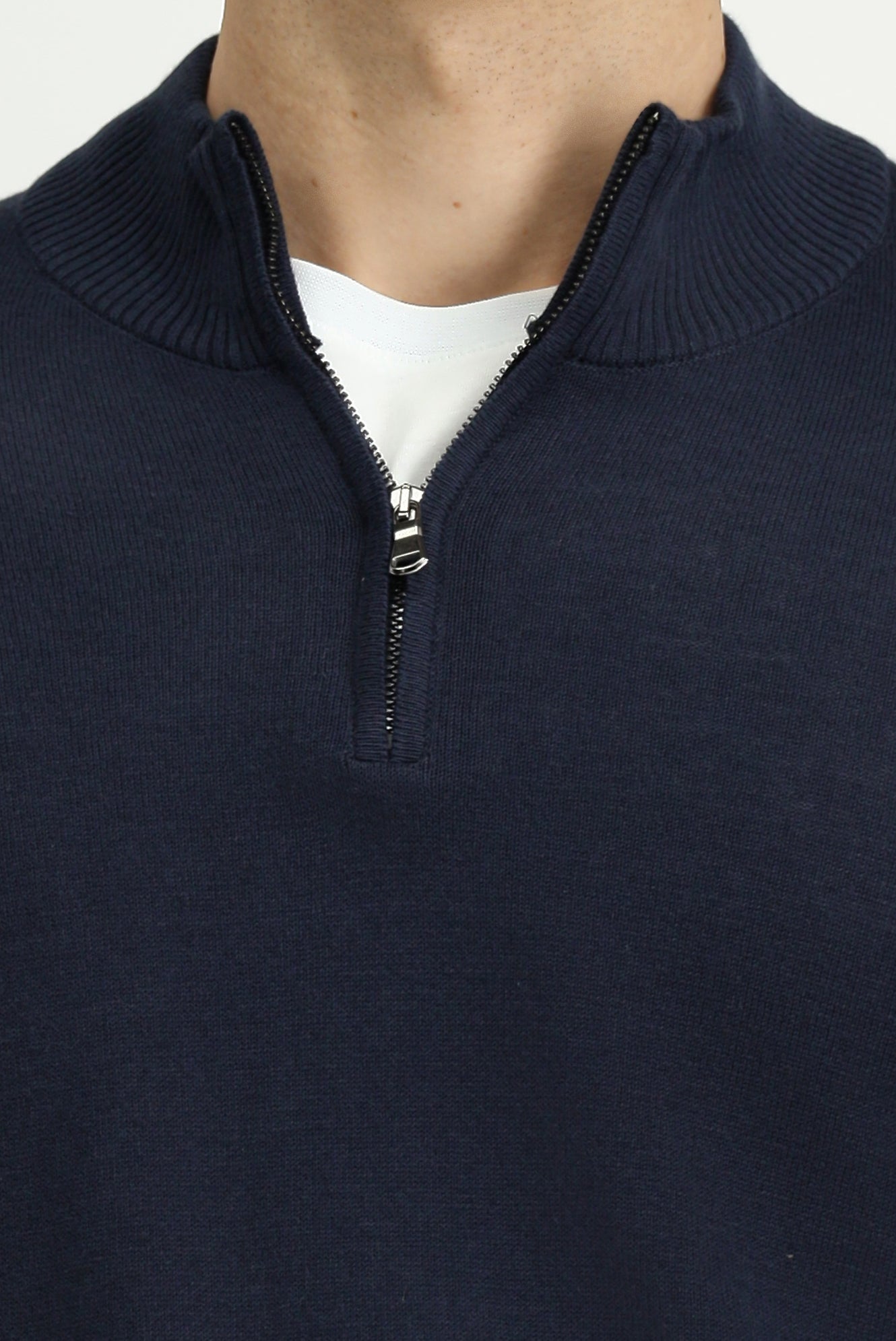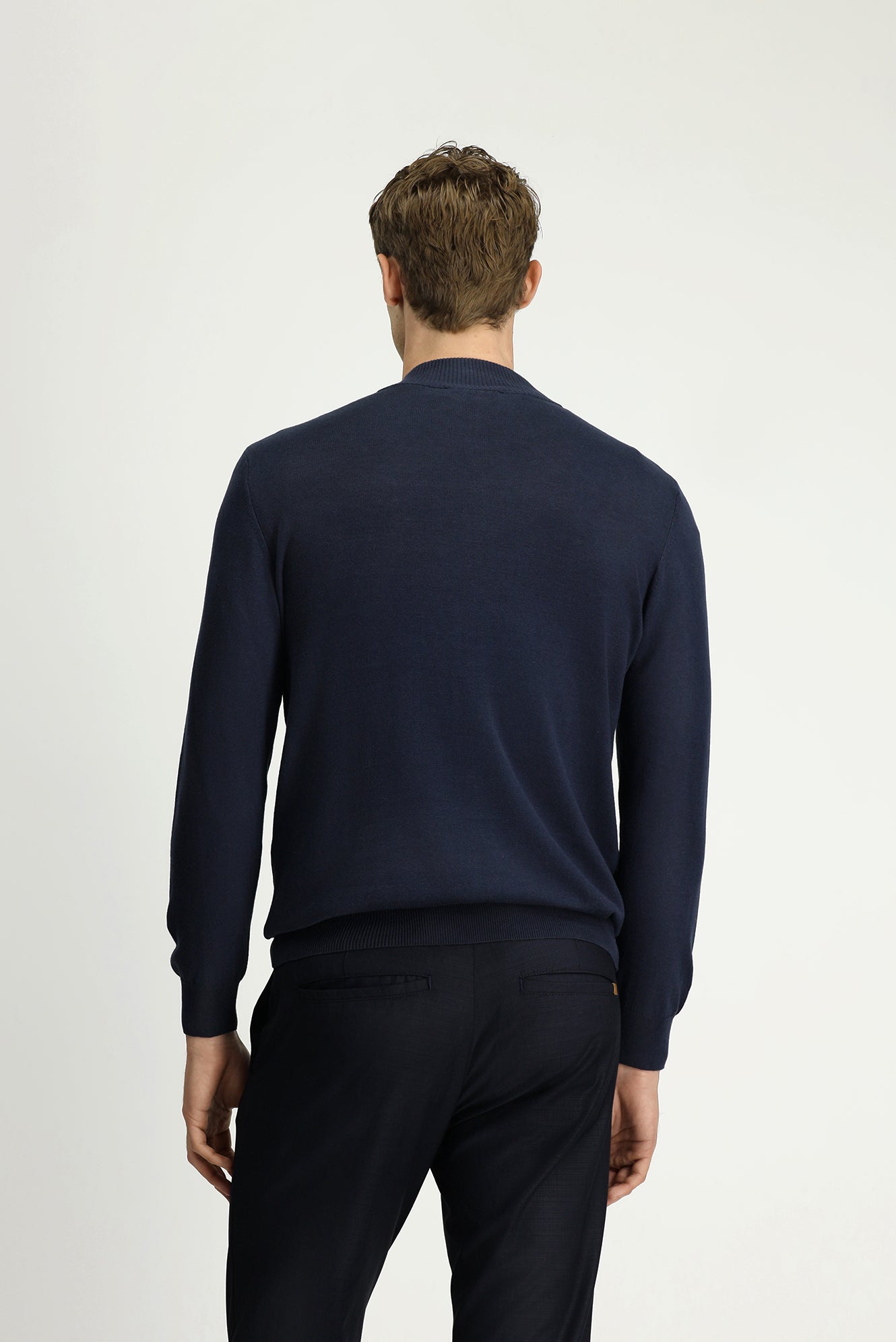 Koyu Lacivert Yarım Balıkçı Yaka Regular Fit Fermuarlı Kaşmirli Triko Kazak