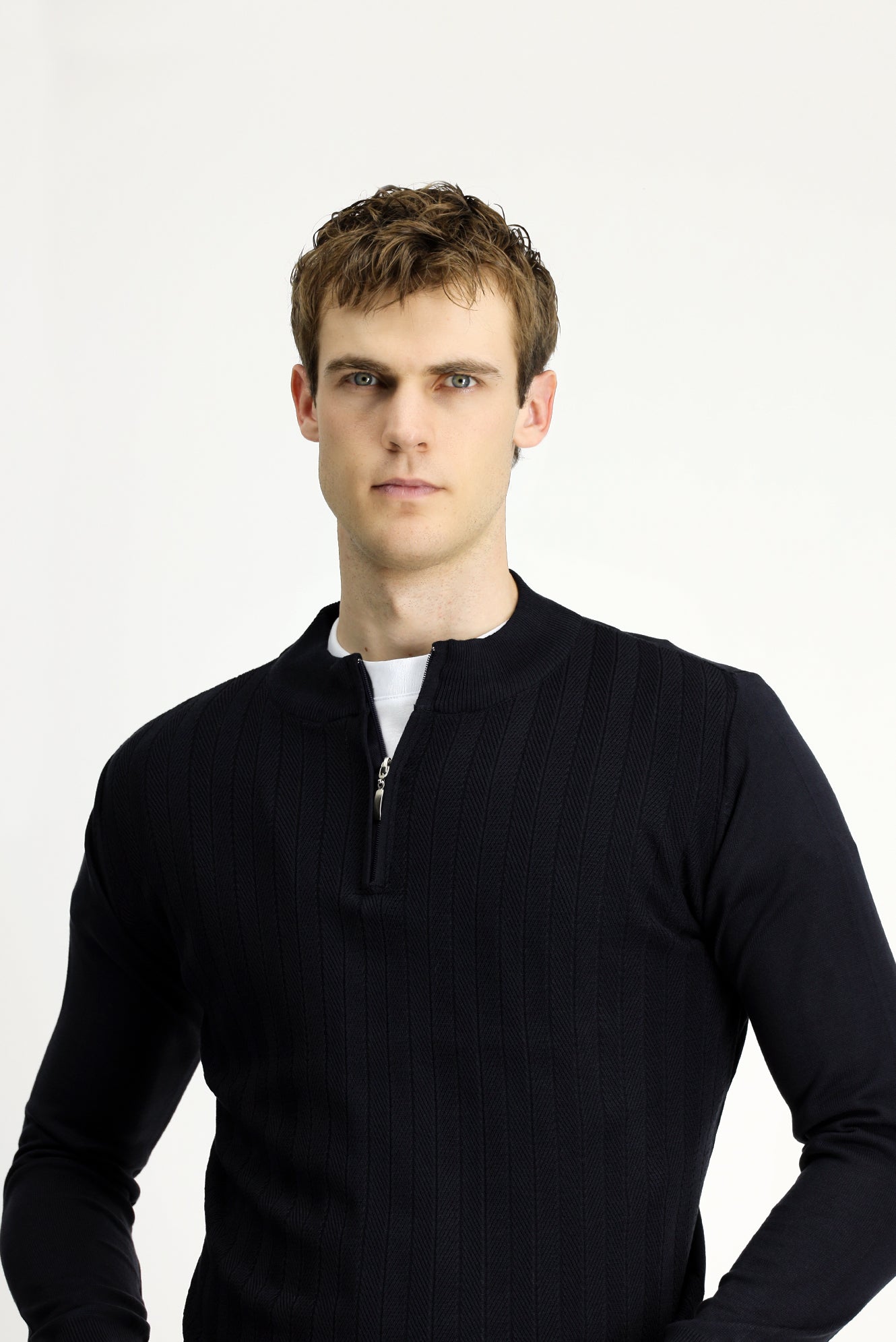 Koyu Lacivert Yarım Balıkçı Yaka Regular Fit Fermuarlı Triko Kazak