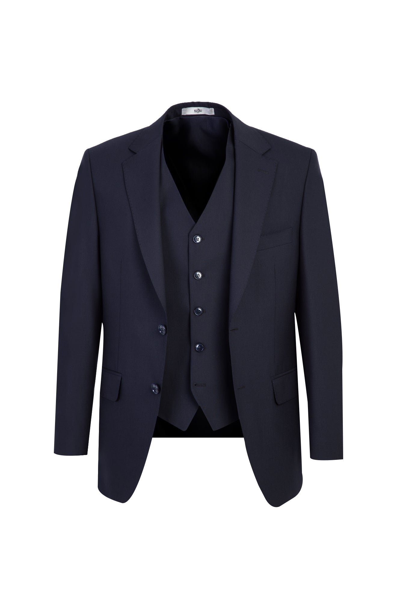 Koyu Lacivert 7 Drop Slim Fit Dar Kesim Yelekli Takım Elbise