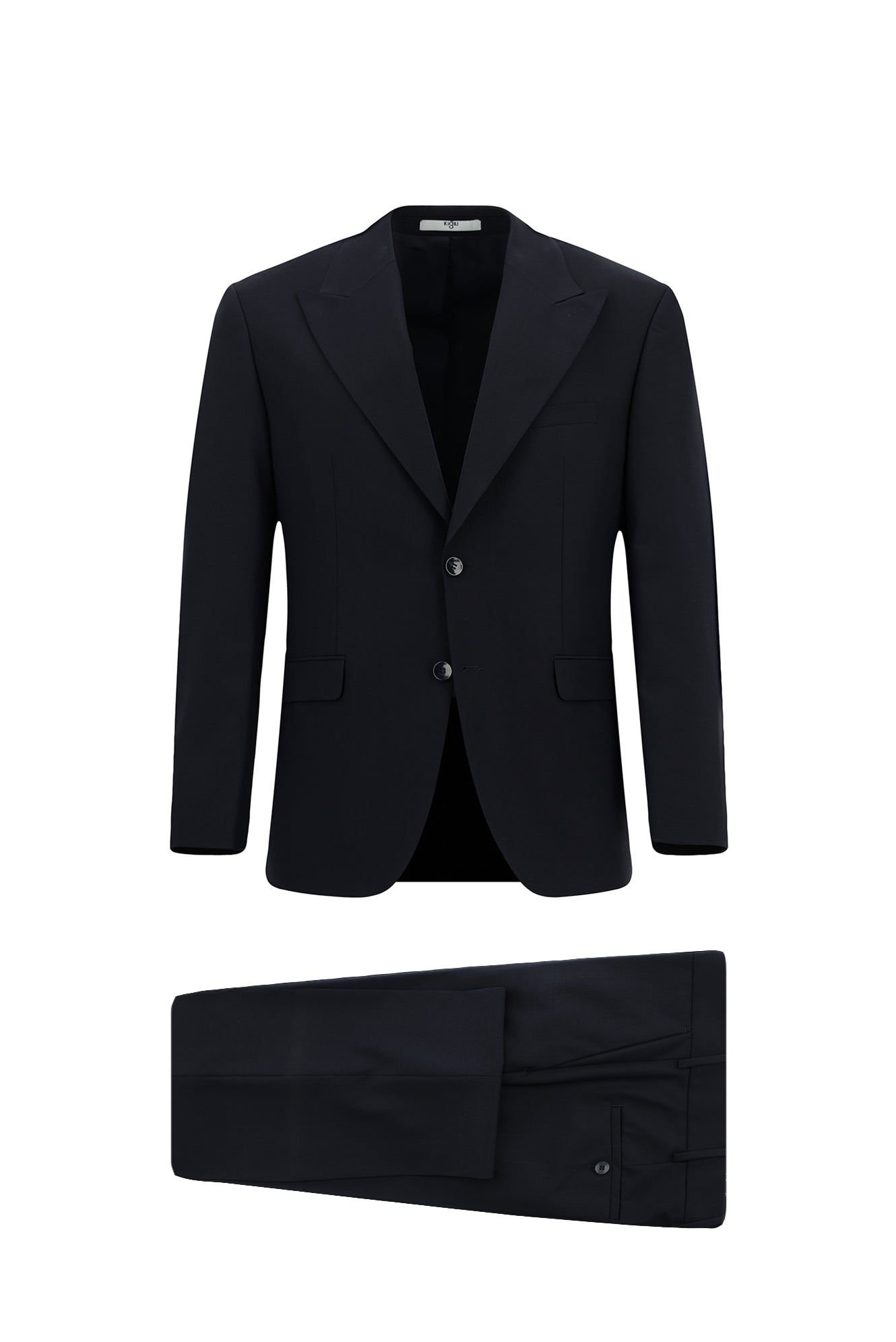 Koyu Lacivert Slim Fit Dar Kesim Yünlü Klasik Takım Elbise