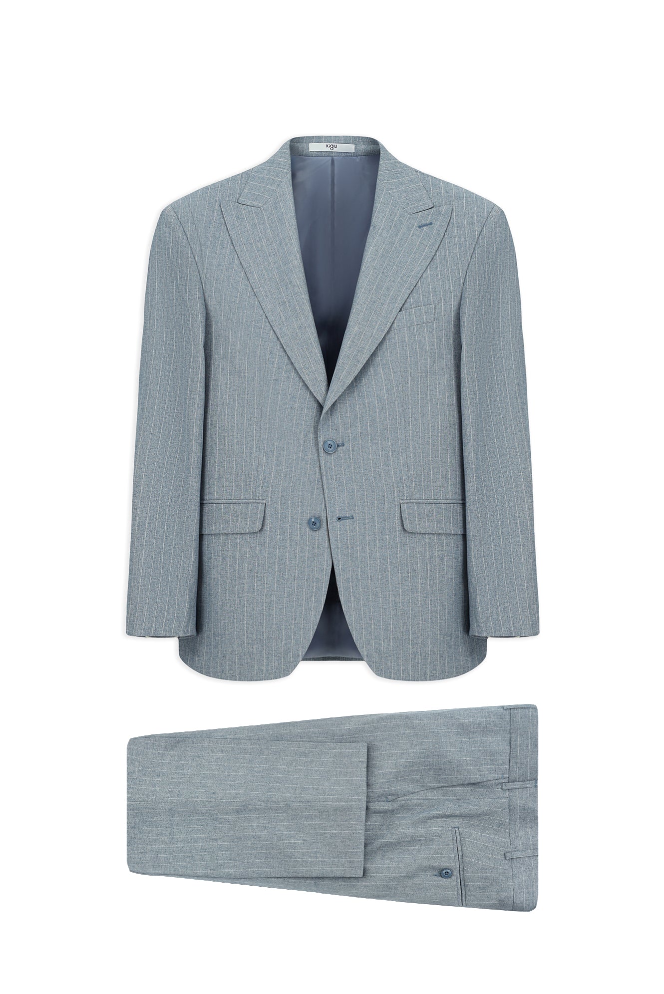 Koyu Mavi 6 Drop Regular Fit Standart Kesim Sivri Yaka Çizgili Takım Elbise