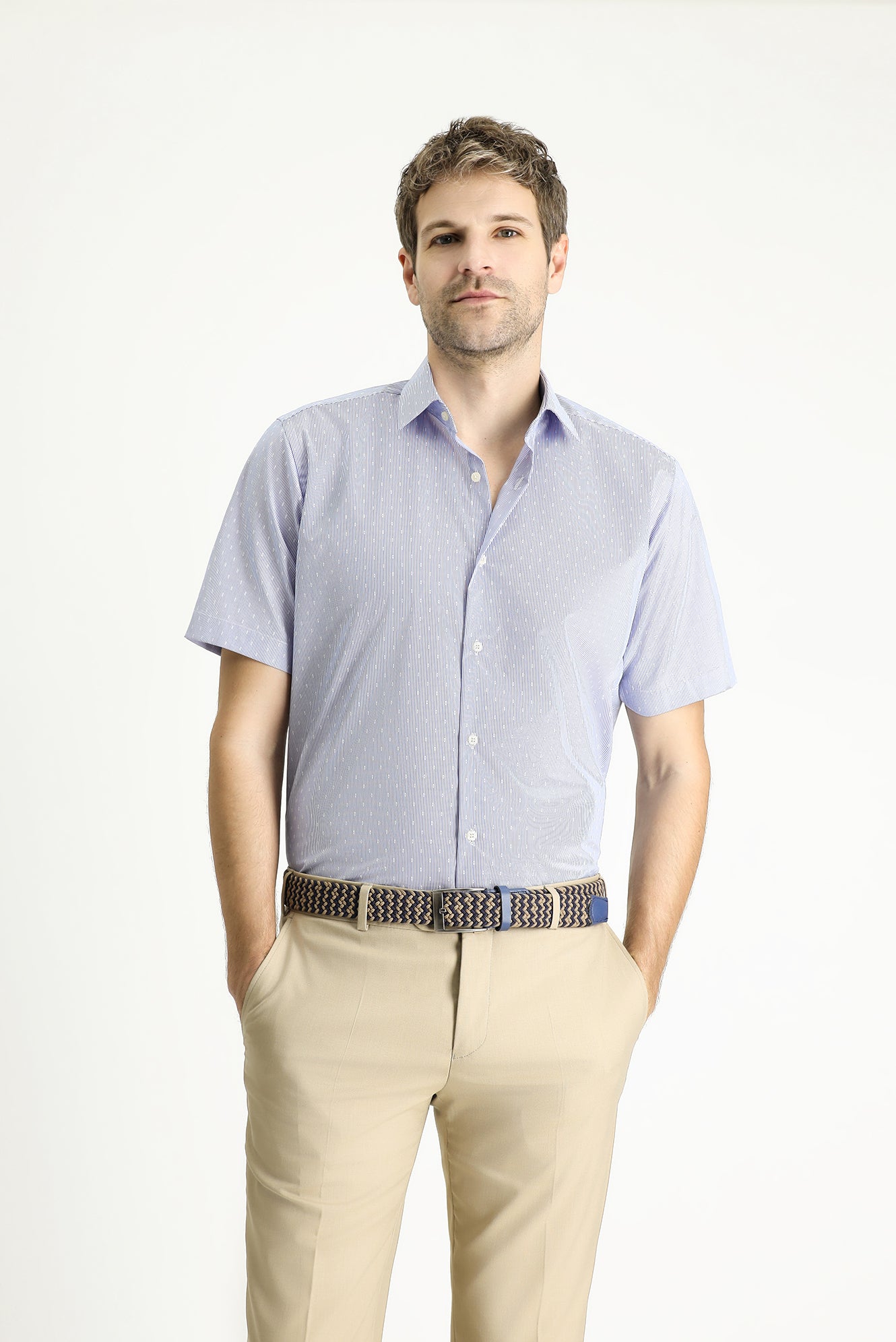 Koyu Mavi Kısa Kol Regular Fit Desenli Pamuklu Kolay Ütülenebilir Gömlek
