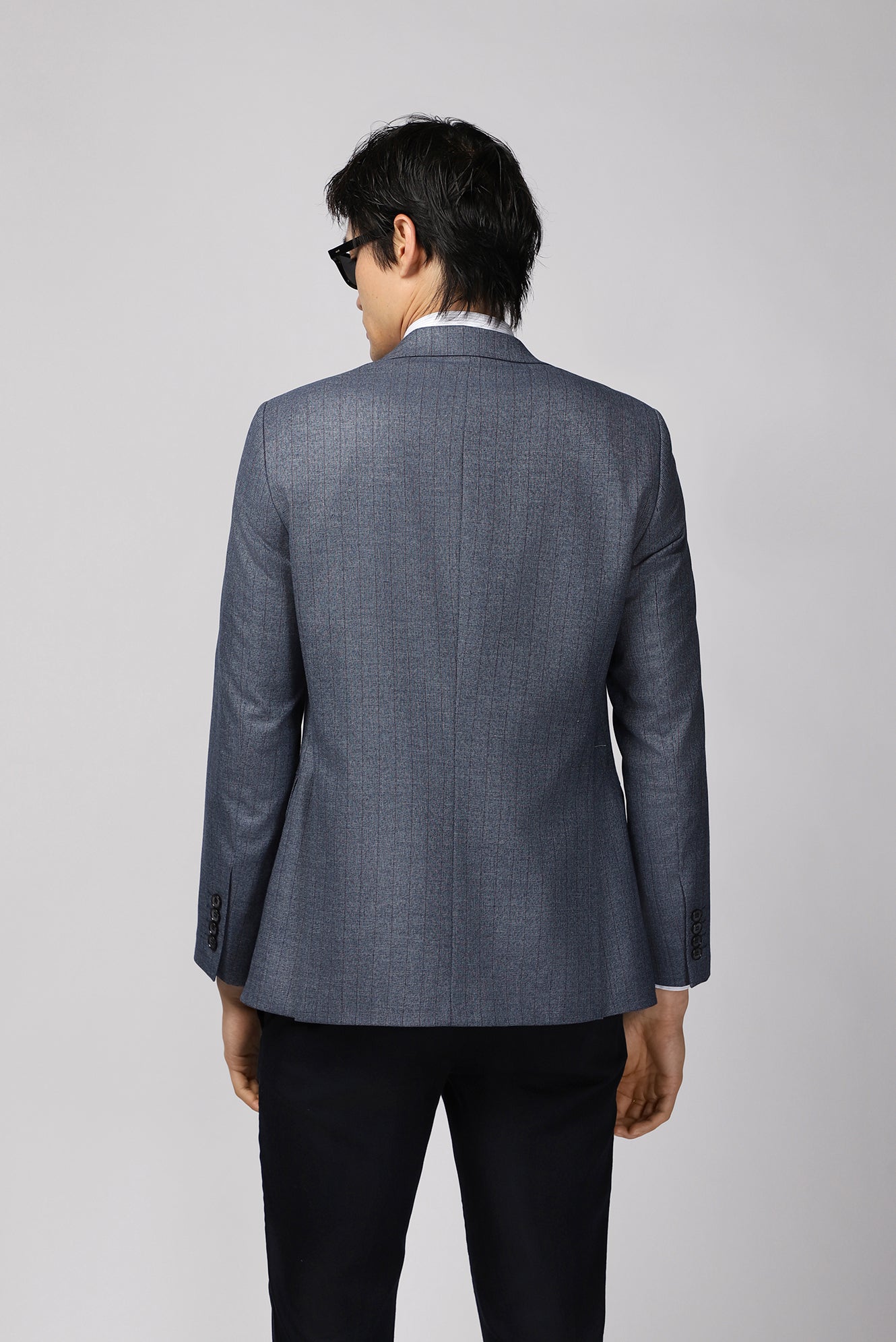 Koyu Mavi Regular Fit Çizgili Kruvaze Ceket