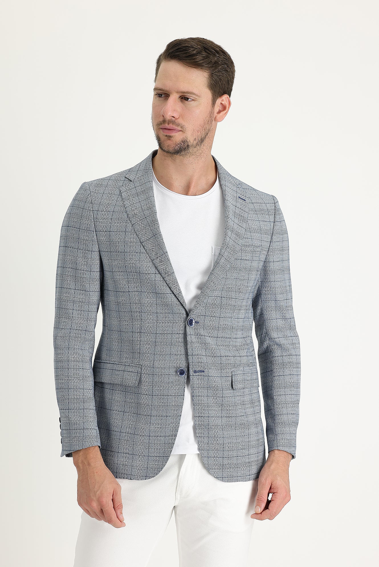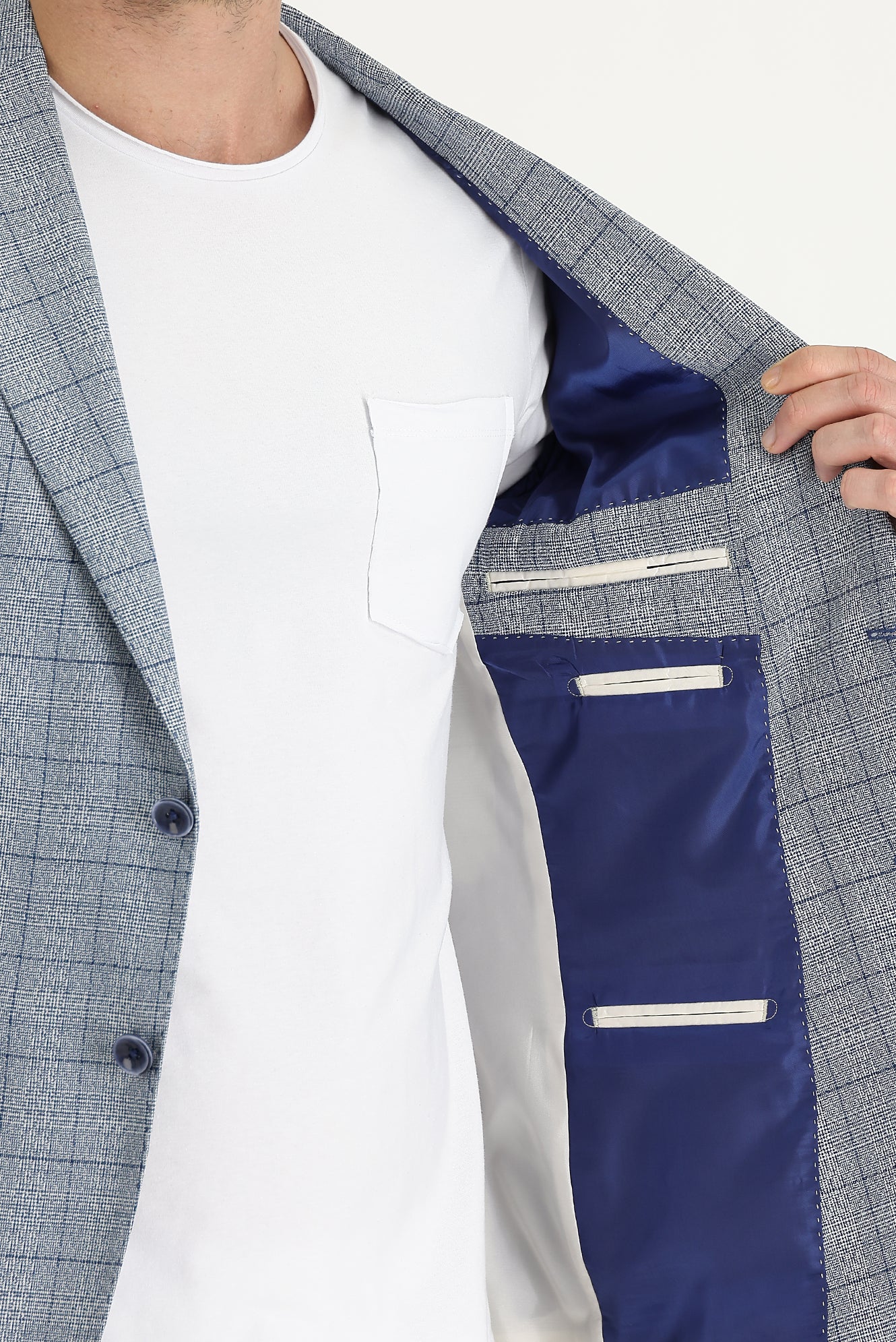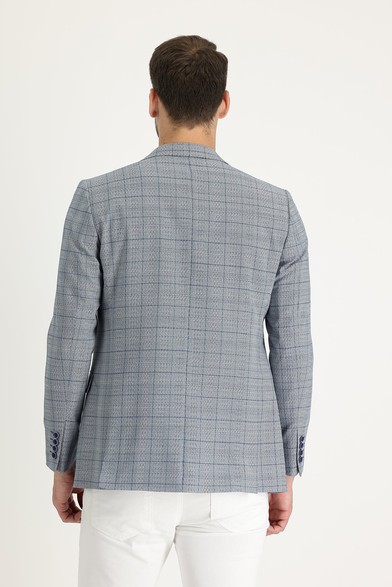 Koyu Mavi 6 Drop Regular Fit Standart Kesim Ekose Ceket
