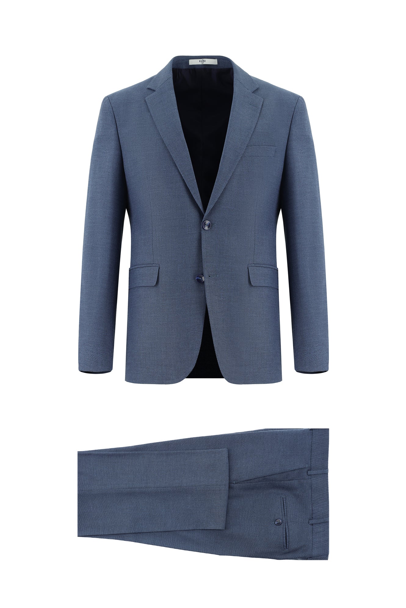 Koyu Mavi 6 Drop Regular Fit Standart Kesim Desenli Takım Elbise