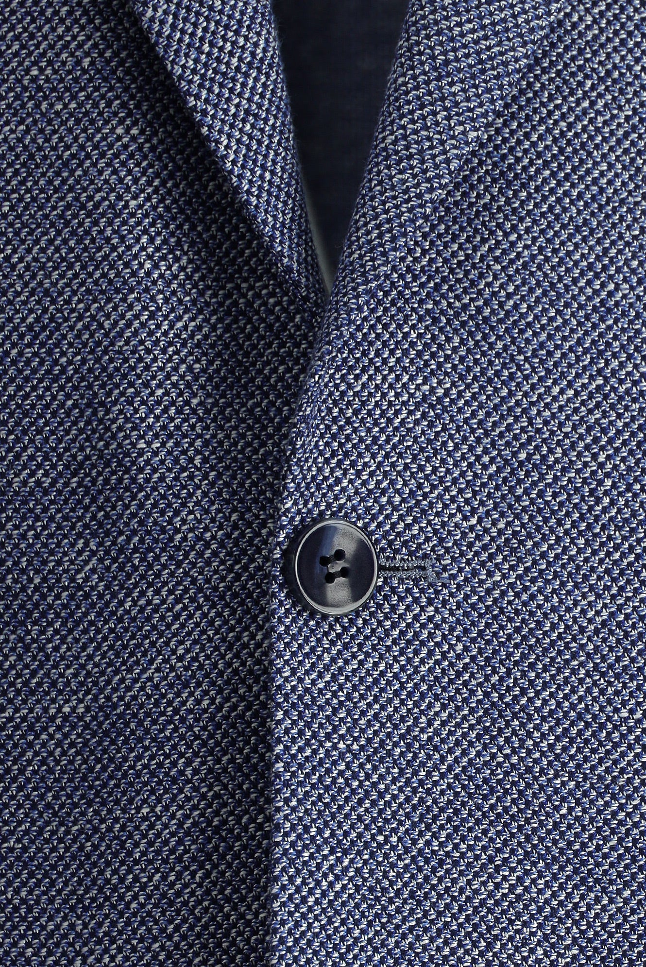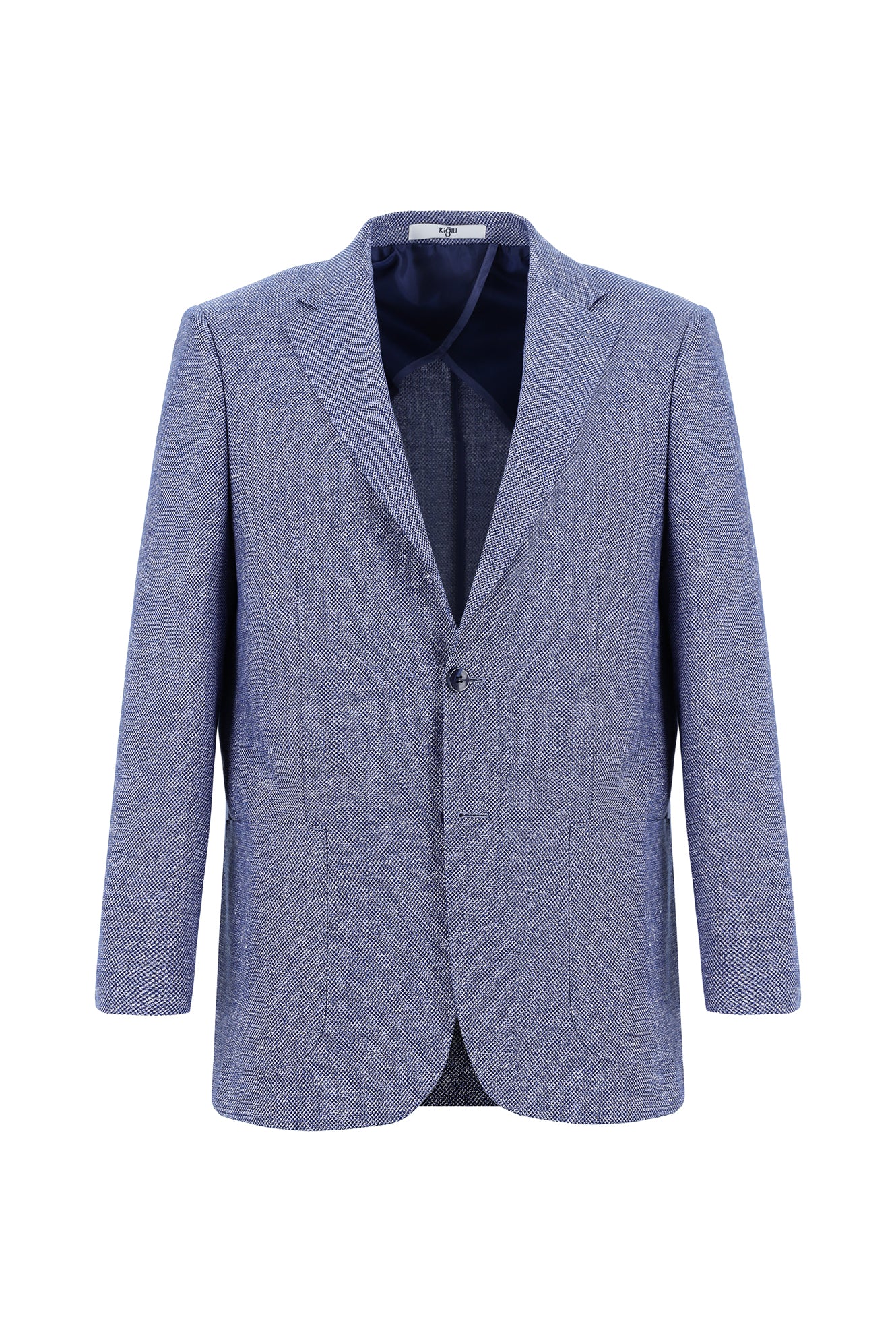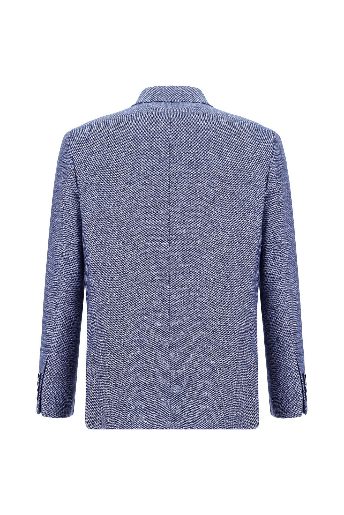 Koyu Mavi Relaxed Fit Rahat Kesim Desenli Keten Karışımlı Ceket