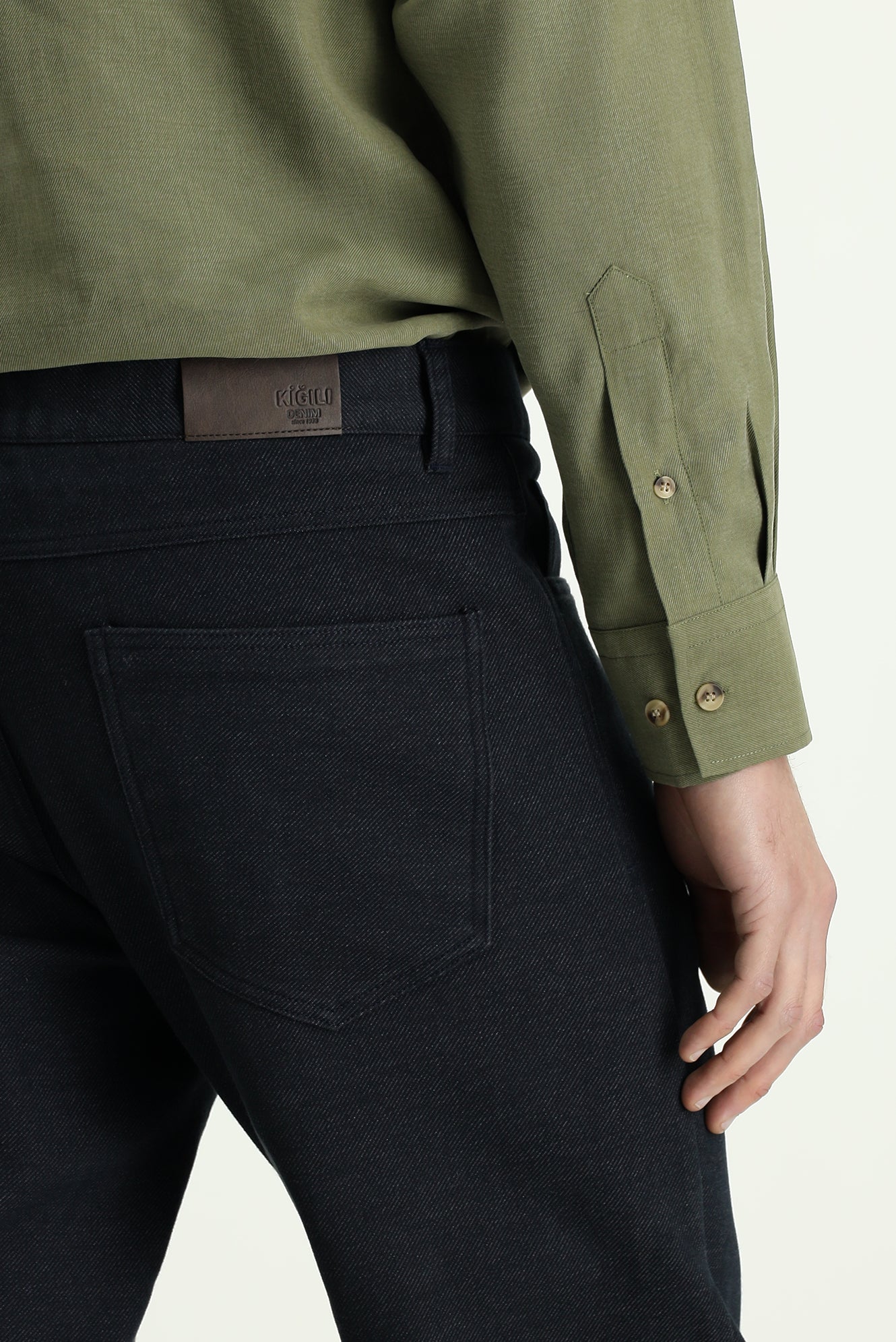 Koyu Mavi Regular Fit Likralı Kanvas / Chino Pantolon