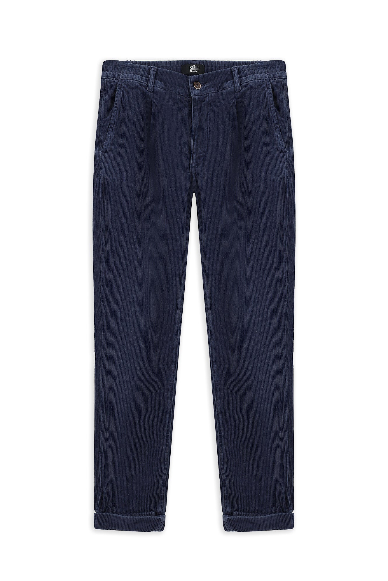 Koyu Mavi Tapered Fit Likralı Kadife Pantolon